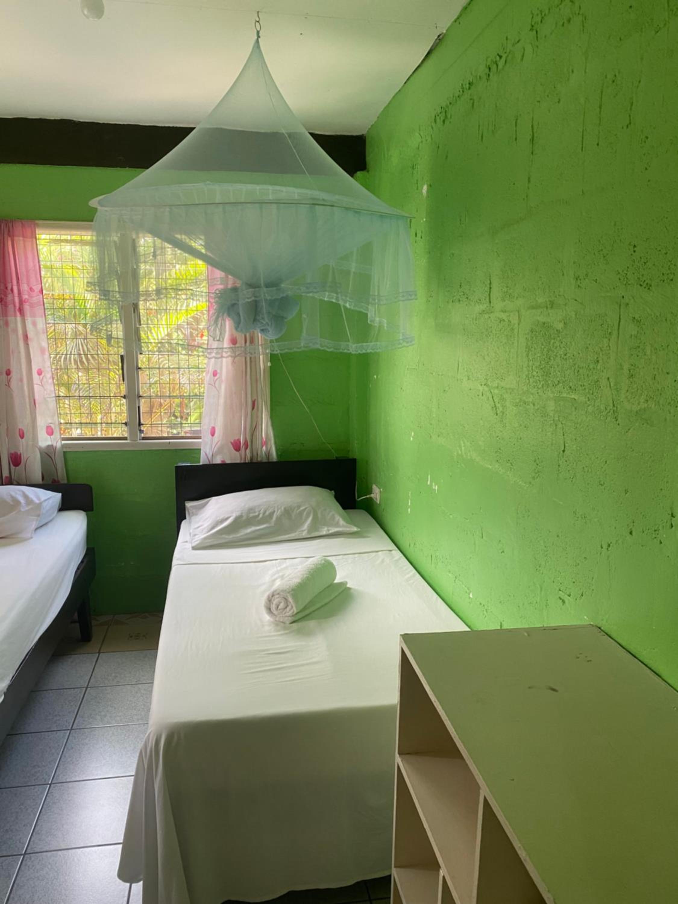 坂の上にあり、街まで徒歩25分で、周りに店もなく、不便。バスが来るのに25分かかる。街中からバスを乗るにも、バス停はわかるが、その中でどこの場所なのかよくわらないし、25分くらい待つ。部屋は、小屋みたいだった。窓の虫除け網戸は、破れていたので、蚊が入ってきて、刺された。ボロかった。スタッフは、現地の人って感じで、親切なんだけど、気が利かない、、。例えば、タオルをくださいと2回もお願いするも、洗剤をください何度かお願いするも、タクシーを何度も依頼するも、チェックアウト9時予定の日の、朝6:30に部屋に訪ねておきにきた。寝てるのに。空港に13時くらいに着いたが、チェックインしたのは、16:30だった。親切でいい人達だと思うが、言われたことをすぐに忘れて、実行しないので、非効率で遅く、サービスが微妙と思ってしまう。市内観光は、半日で1200sdですごく高い。自分でタクシーをつかまえて交渉したが、 5時間930sd入場料込みだった。朝5時、夜遅くまで、近隣住民の人達大多数は、爆音で音楽をかけるので、苦手な人は微妙かも。電子レンジは壊れていた。夜は19時には、門が施錠されて、入れないので、外の暗い中で待ちつづけた。24時間、宿にスタッフはいない。