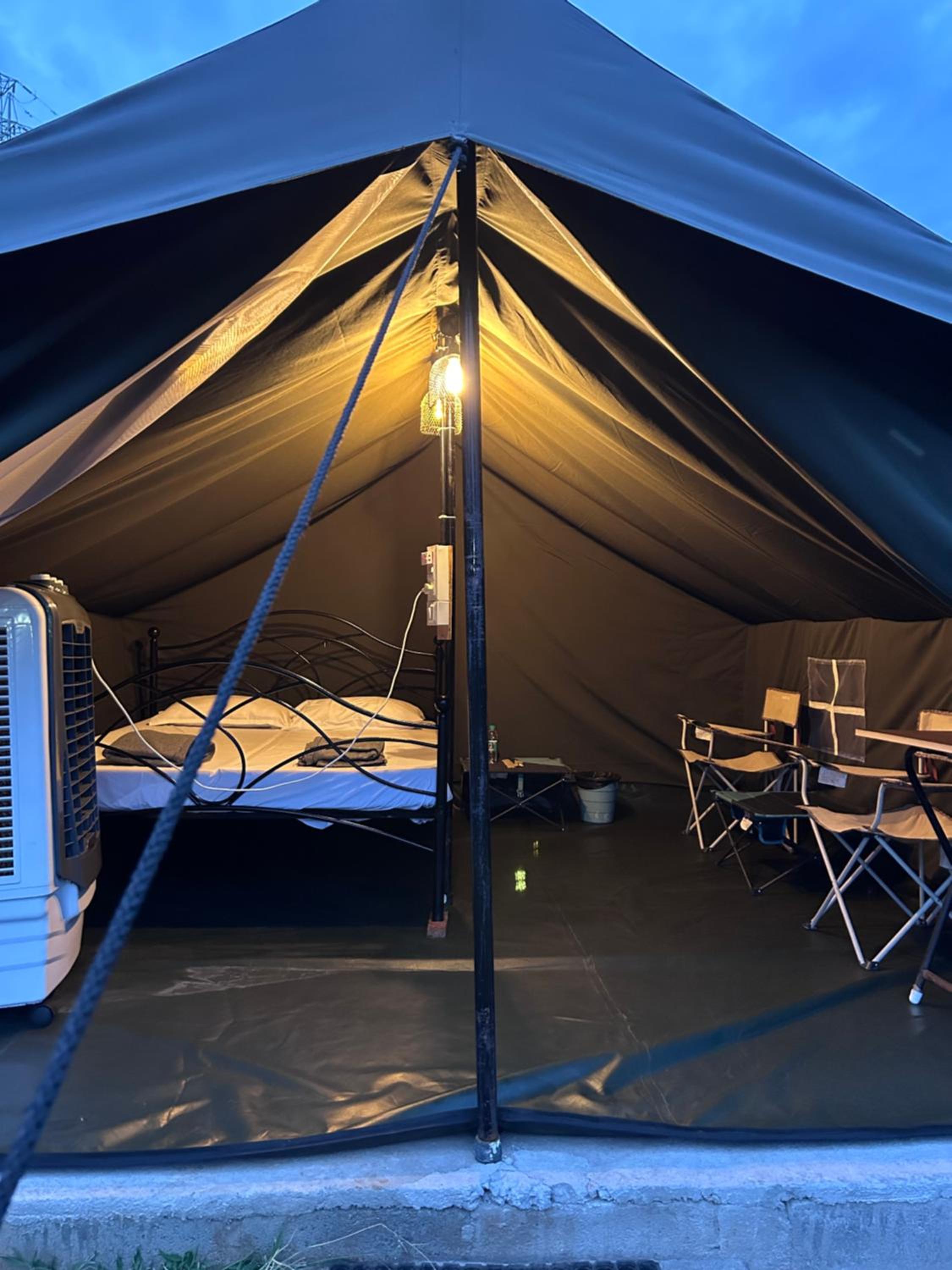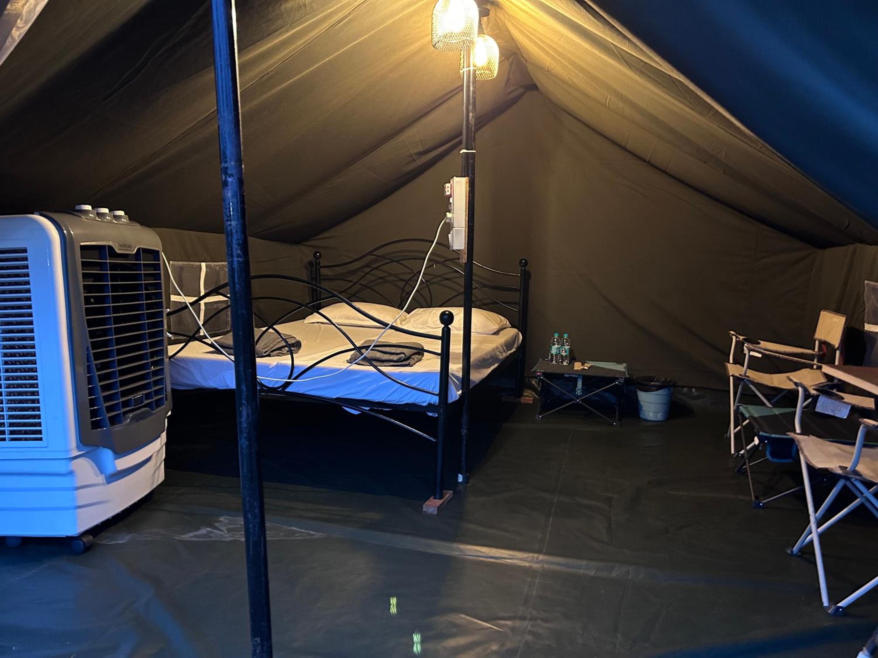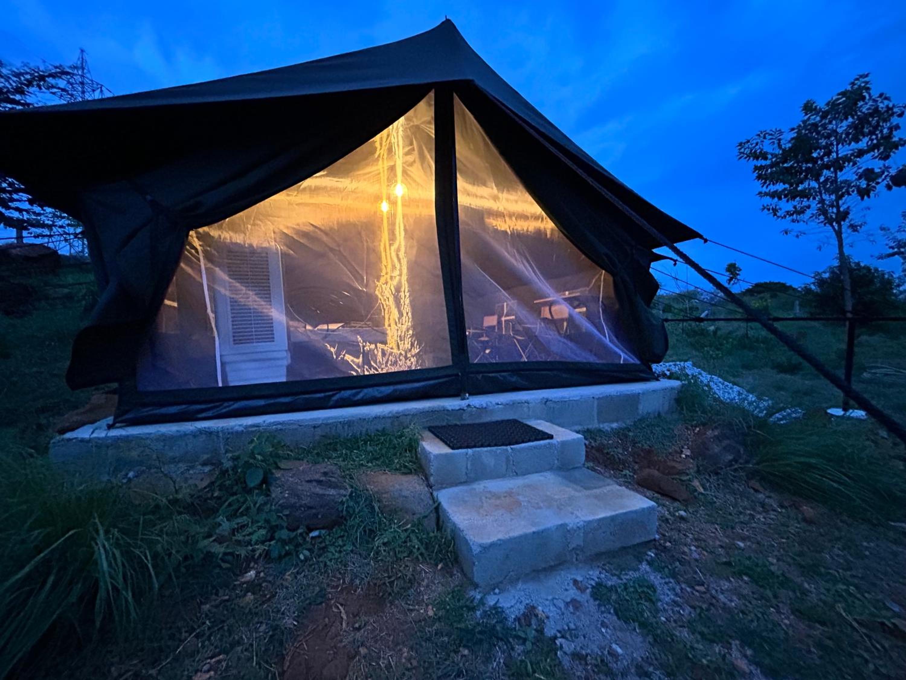 Tent light was hitting the eye.. either it's too lit or pitch dark. It will be good if we have the provision to off 1 light atleast.