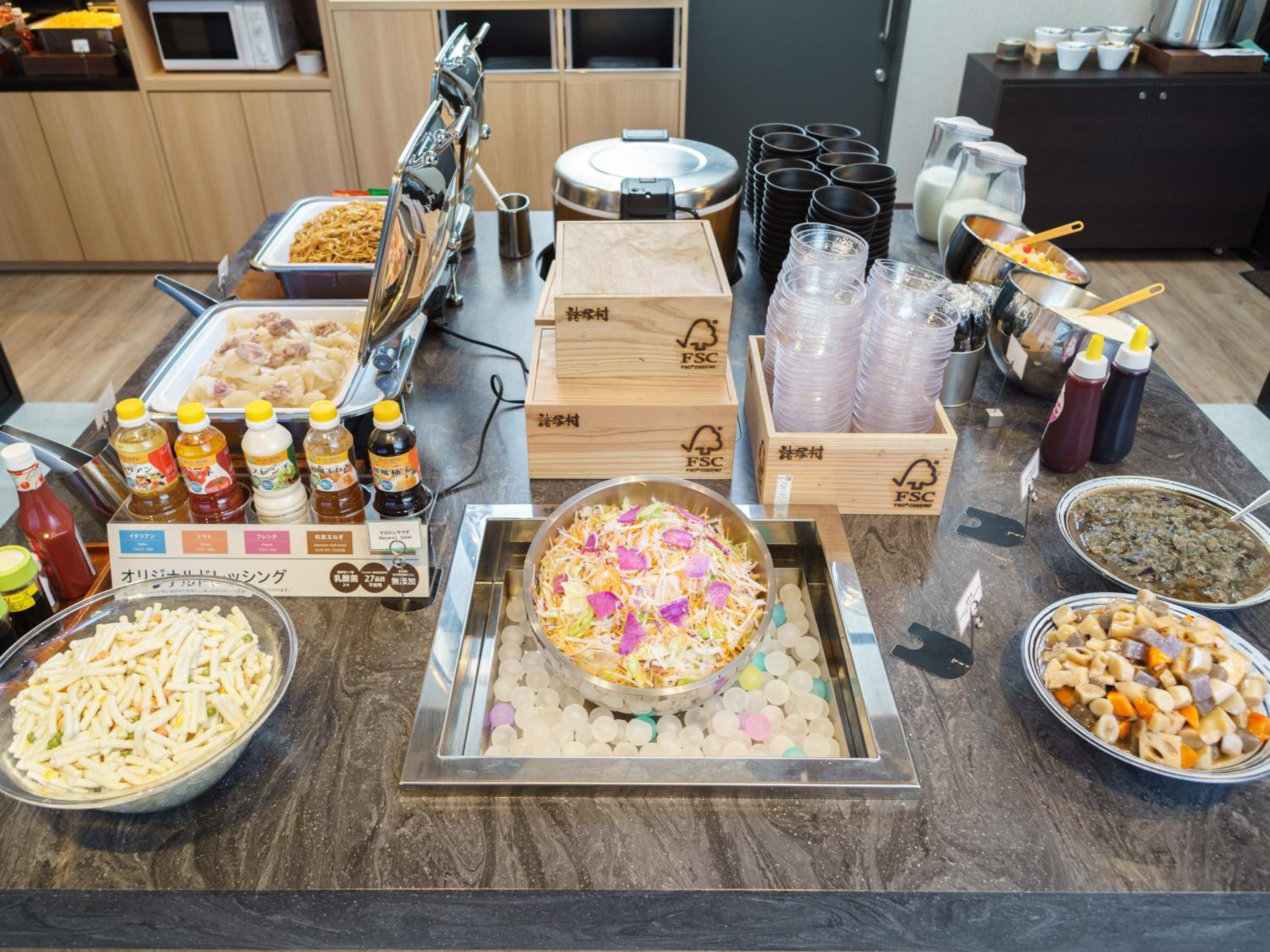 A lovely surprise was the happy hour from 6:00–8:00 pm, with free drinks including alcohol. Breakfast was also great, with a wide variety of both Western and Japanese options. The rooms were a bit small, but overall, our group of six stayed in three rooms and had a very comfortable and enjoyable experience.