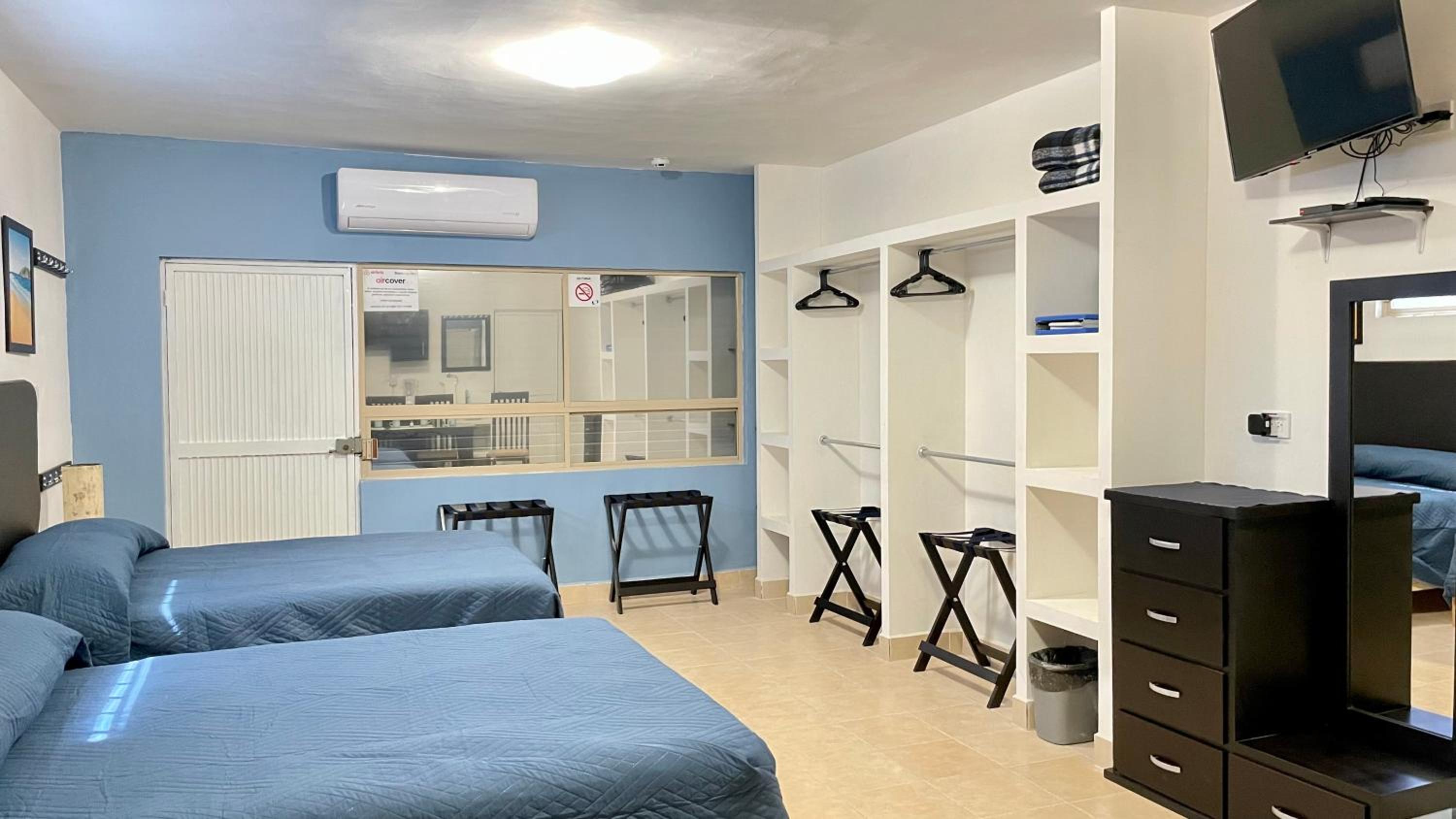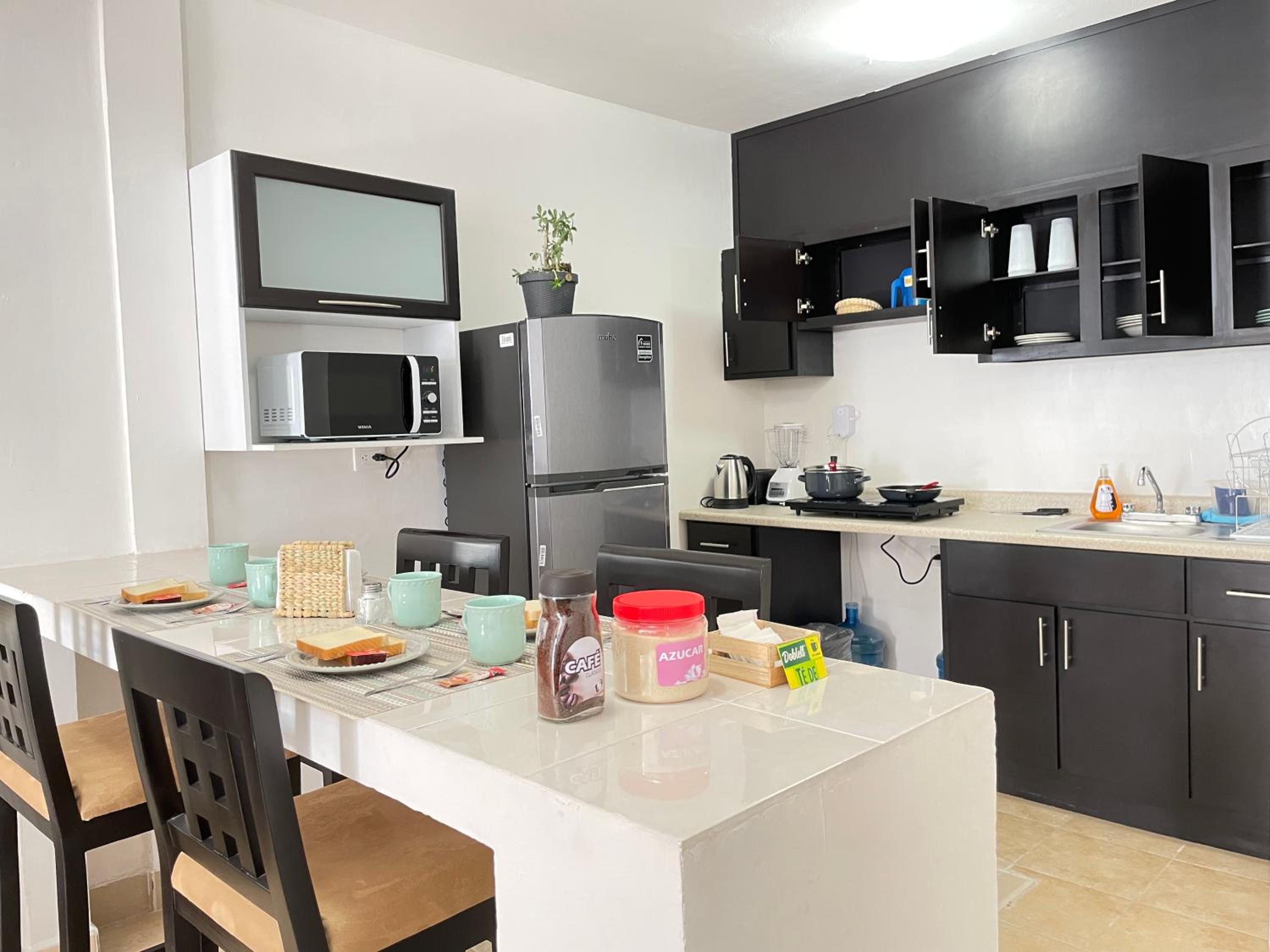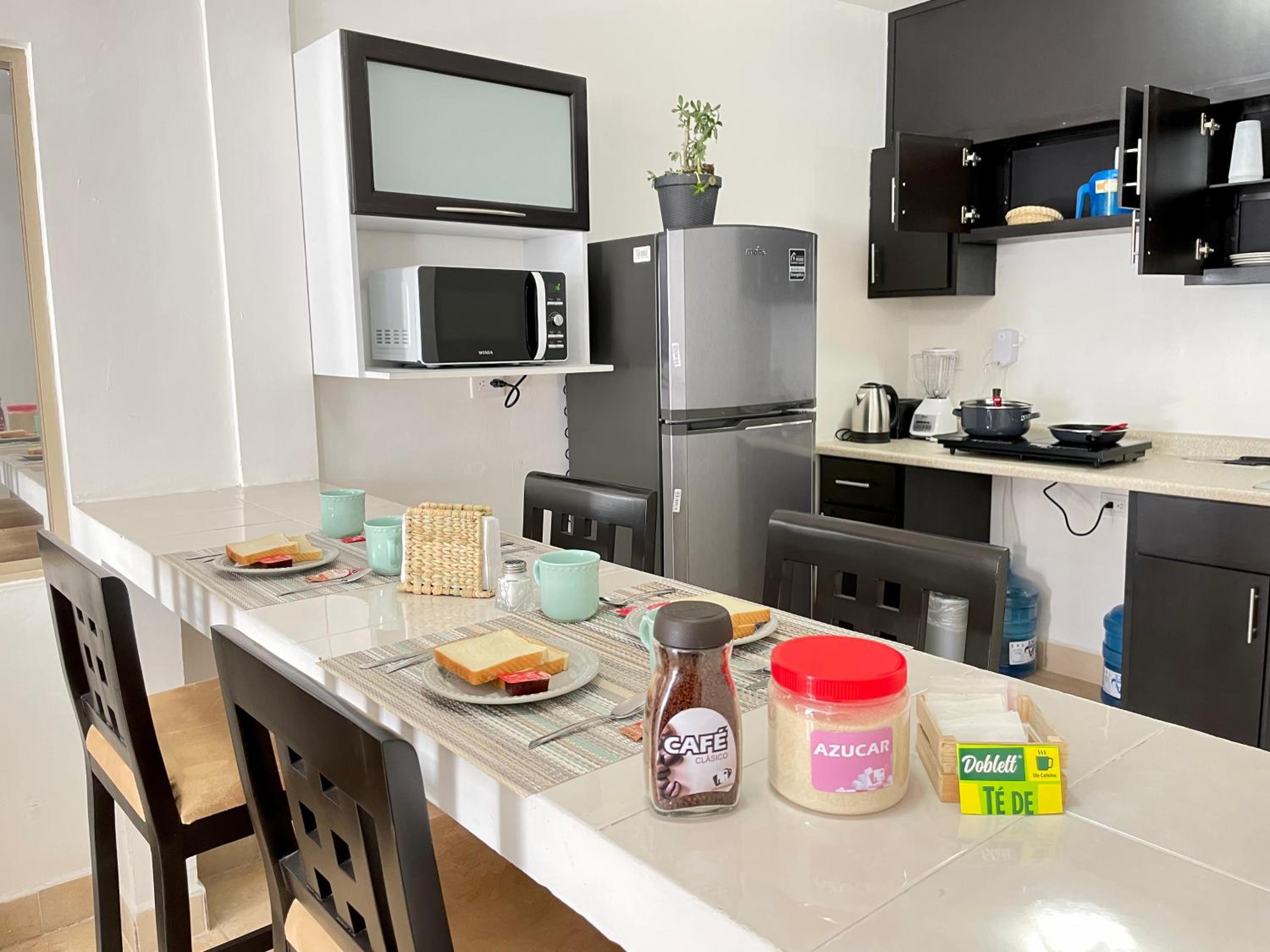 Experience a stay like no other at Departamento Loft Ejecutivo Privado Confortable Minisplit Amenidades. Indulge in air-conditioned comfort, enjoy the convenience of a fully equipped kitchen, and unwind in the garden with beautiful views. With a 24-hour front desk, free WiFi, and family rooms, your comfort is our priority. Explore nearby attractions with sightseeing tours or simply relax on the terrace. Whether you're traveling for business or leisure, our personalized service and attention to detail will ensure a memorable stay. Book now and make your trip to Benito Juarez truly unforgettable.