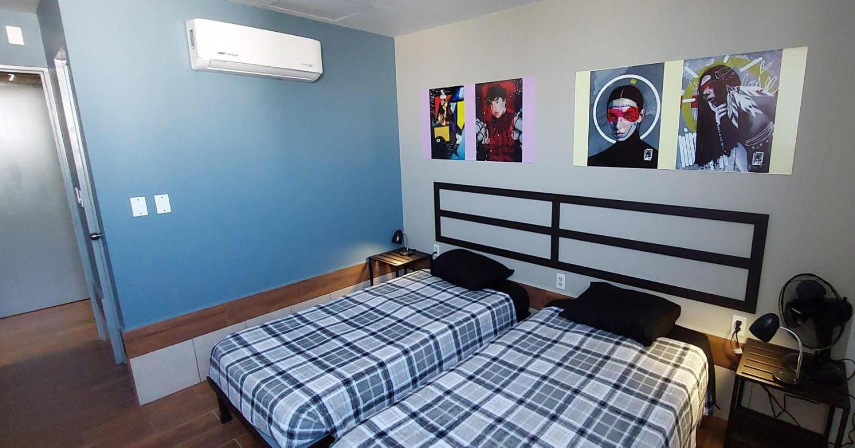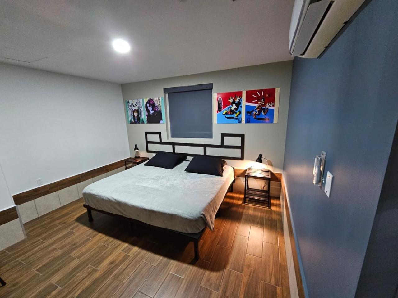 es un cuarto con su baño privado y aire acondicionado. Todo muy limpio, no tiene tv pero no se extraña. todo es muy facil, no tienes que tratar con personas y el servicio de atención es por WhatsApp, excelente ubicación, huele muy limpio. farmacia y tienda de autoservicio a unos pasos.