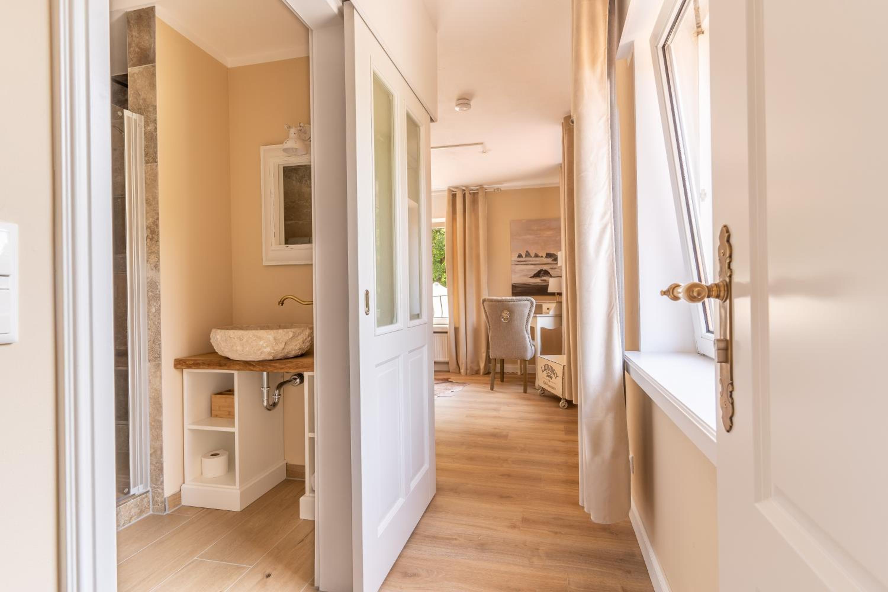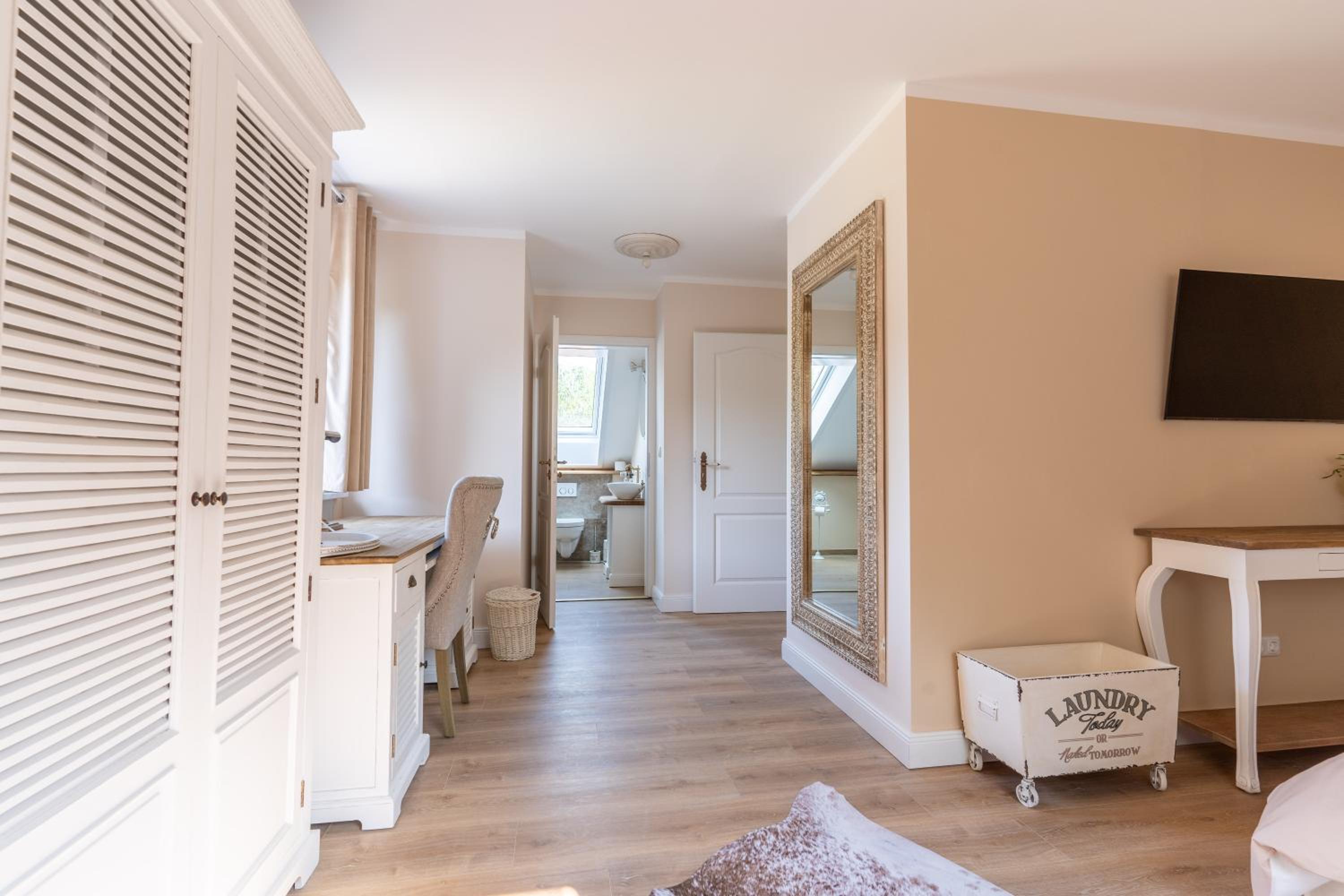 Das Hotel ist eher Beiwerk zu dem sehr gut nachgefragten Restaurant und einer angeschlossenen Event-Location. Die Zimmer sind sehr liebevoll Eingericht, viel Sorgfalt wurde auf das richtige Ambiente gelegt, aber leider lief bei uns in der Dusche das Wasser nicht ab, was dann wenig erfreulich und sehr viel Nässe ins Badezimmer fließen ließ.
