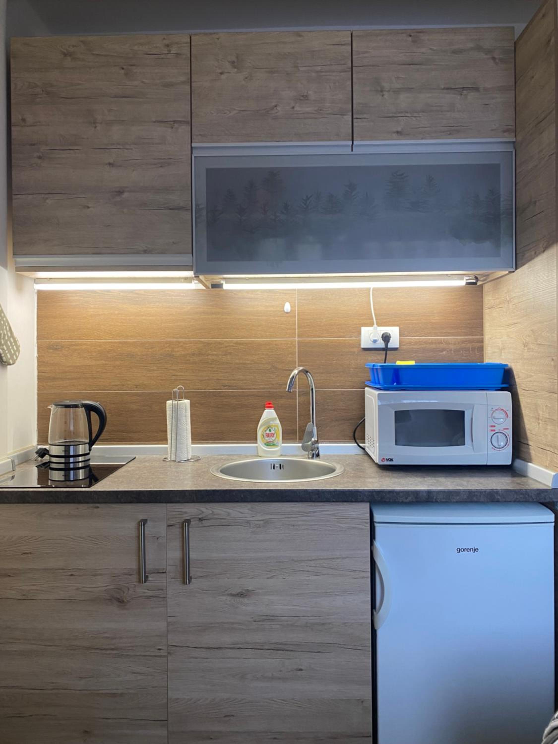 Experience the ultimate comfort at Milmari Resort Kopaonik. Our stylish aparthotel offers modern amenities including a flat-screen TV, fully equipped kitchen, and elegant bathroom with plush bathrobes and slippers.