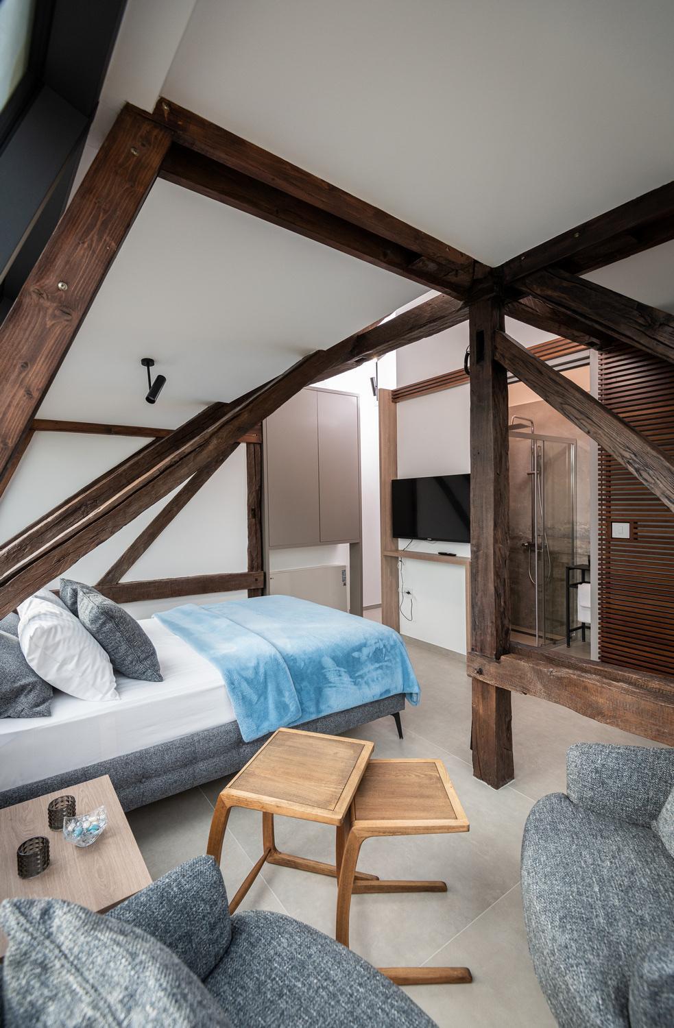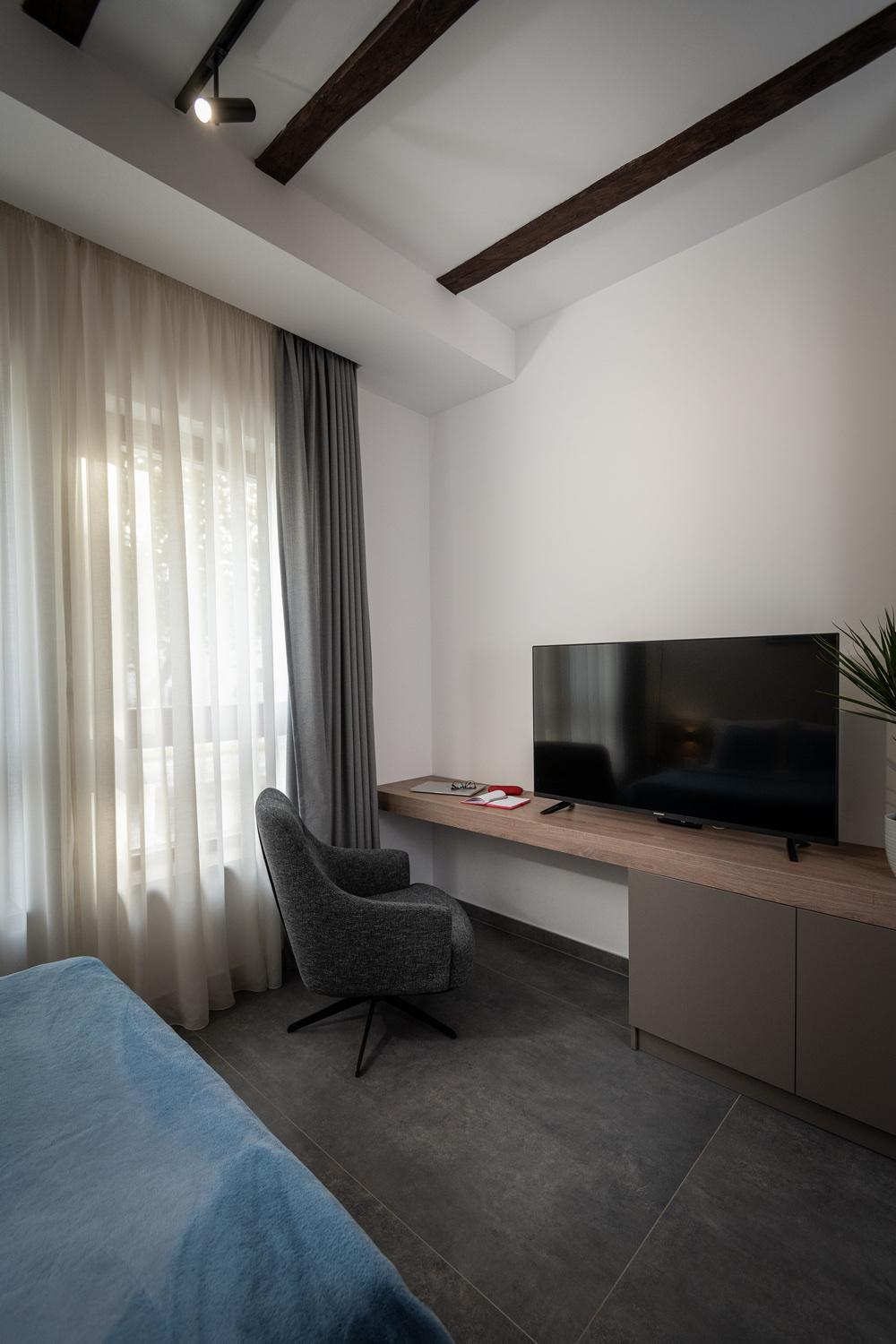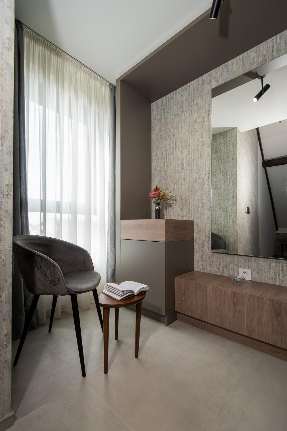 La stanza era molto bella e spaziosa con un interessante mix di elementi tradizionali e architettura minimal.