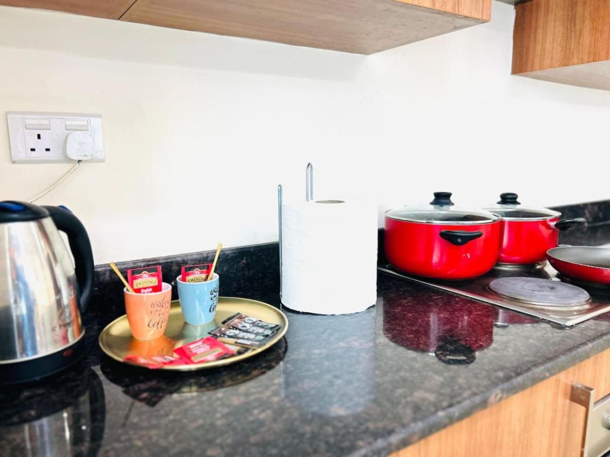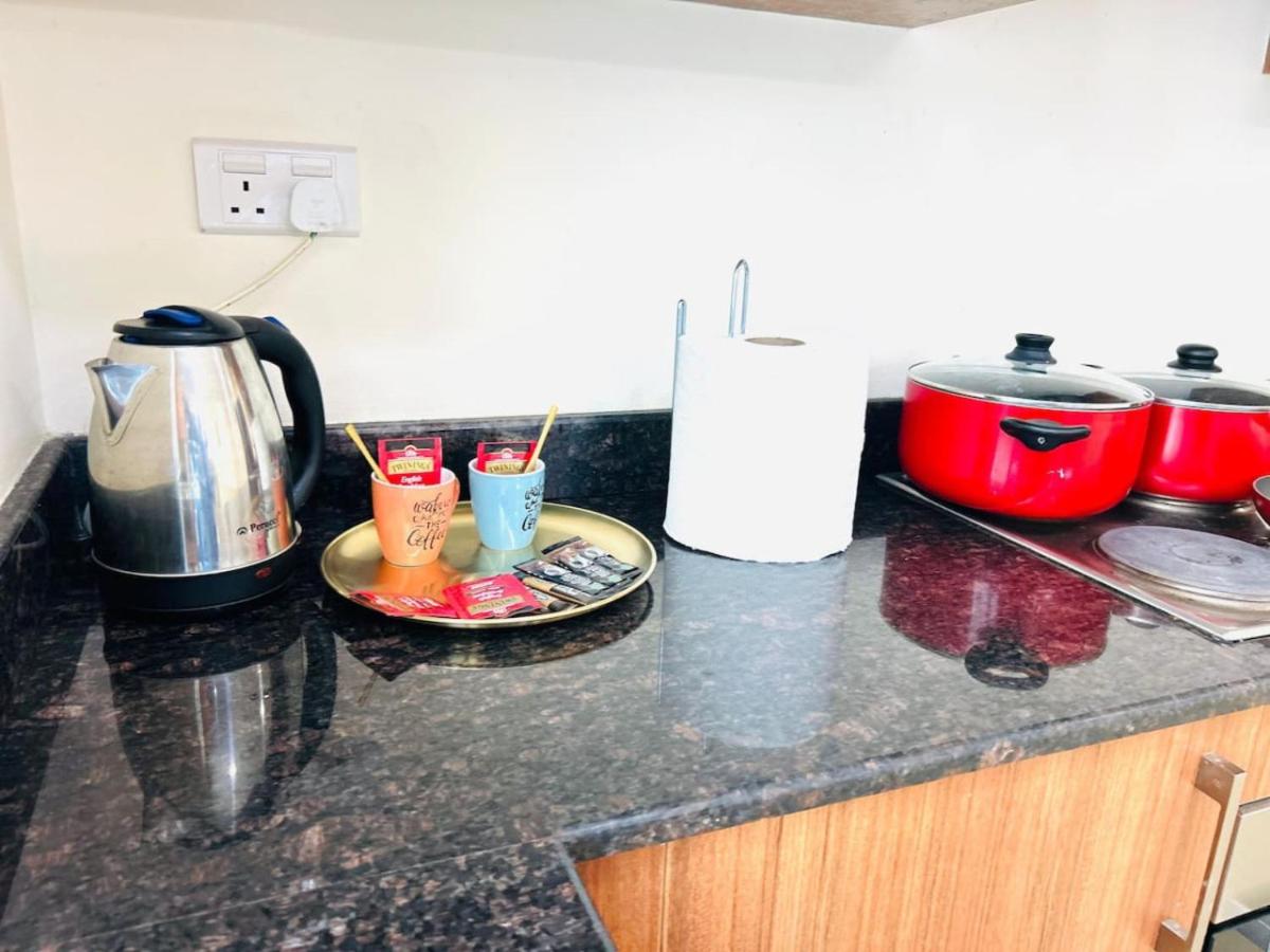 Guest rooms at Charming Corner Getaway are equipped with modern amenities such as air conditioning, fridge, oven, and more for a comfortable stay.