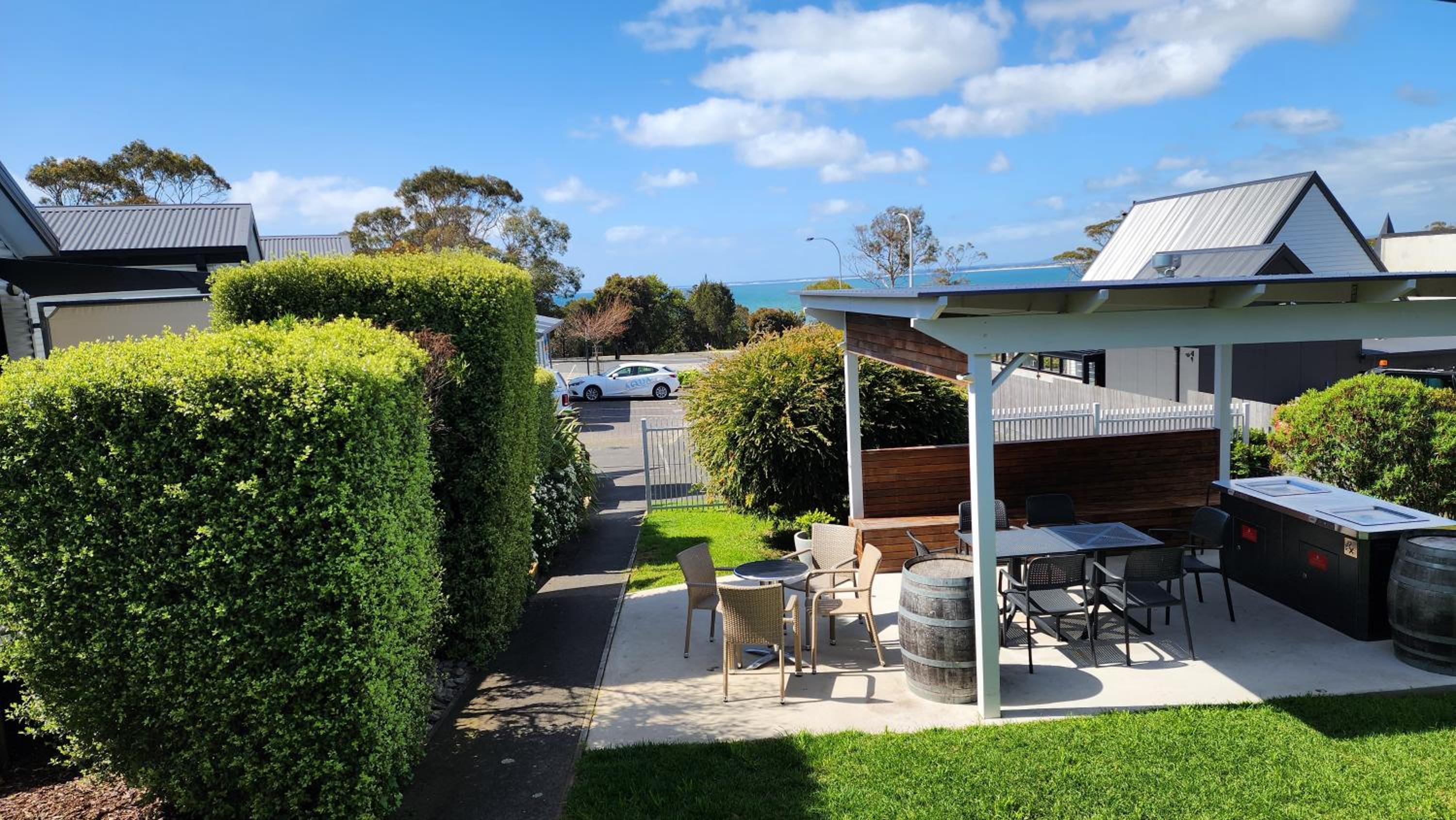 The cottages are very close to cafes and other shops and not far at all from the beach. They are neat and clean and very comfortable. We enjoyed our stay here.