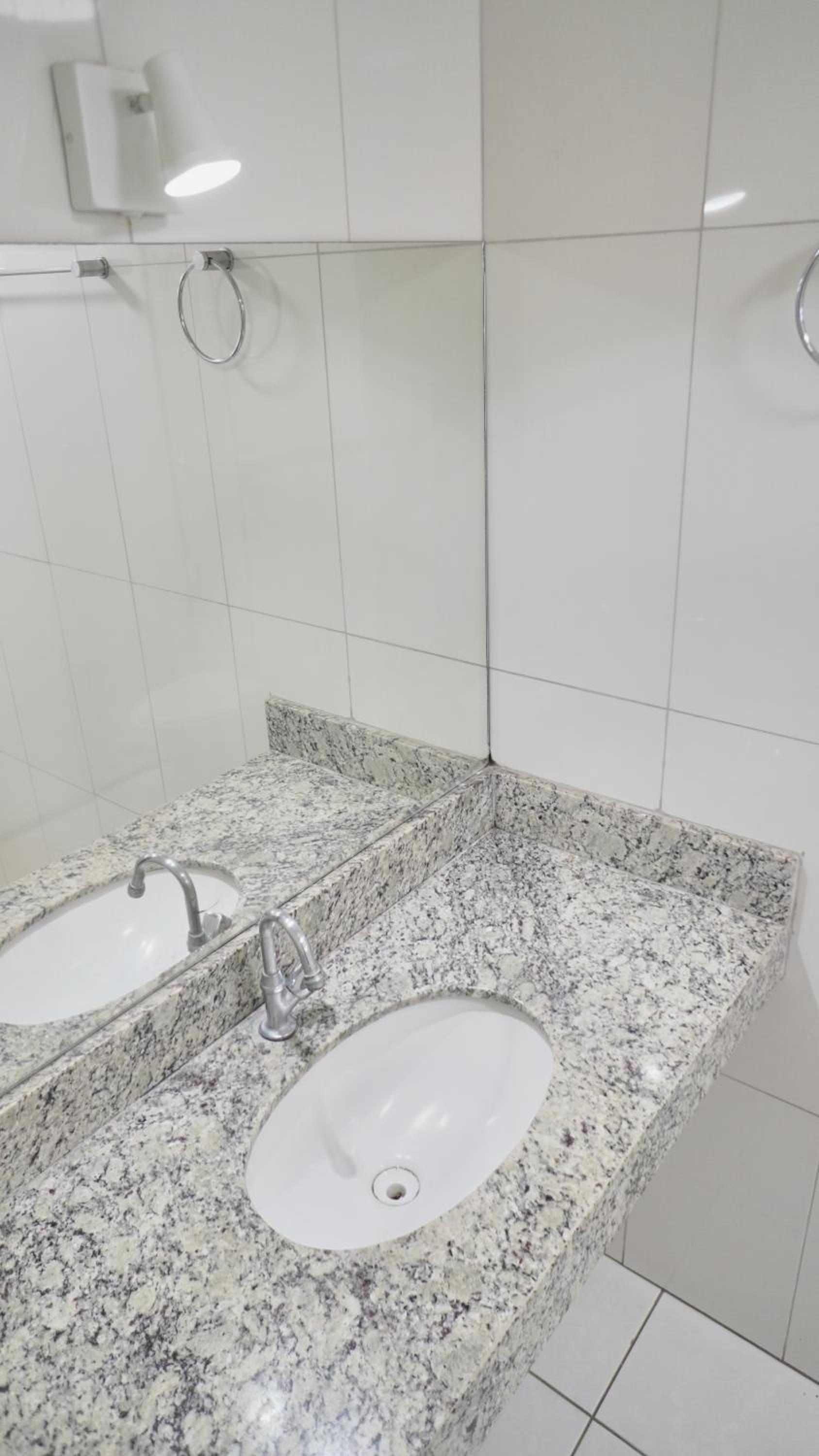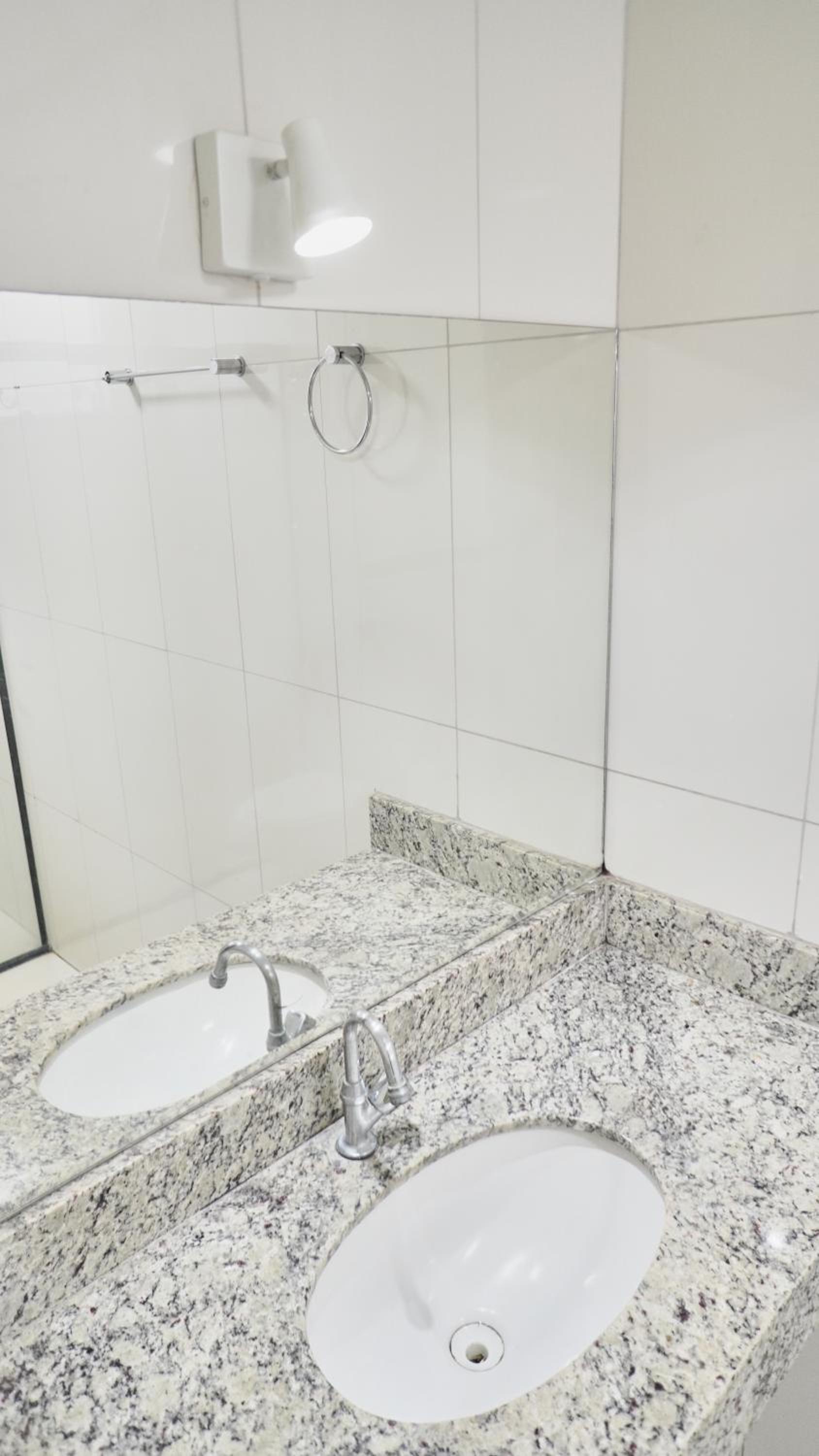 Banheiro: chuveiro a gás, pia com bancada, existe a instalação de uma lâmpada no espelho, mas no quarto que fiquei não estava funcionando, o soquete dentro do cone estava sem a lâmpada.