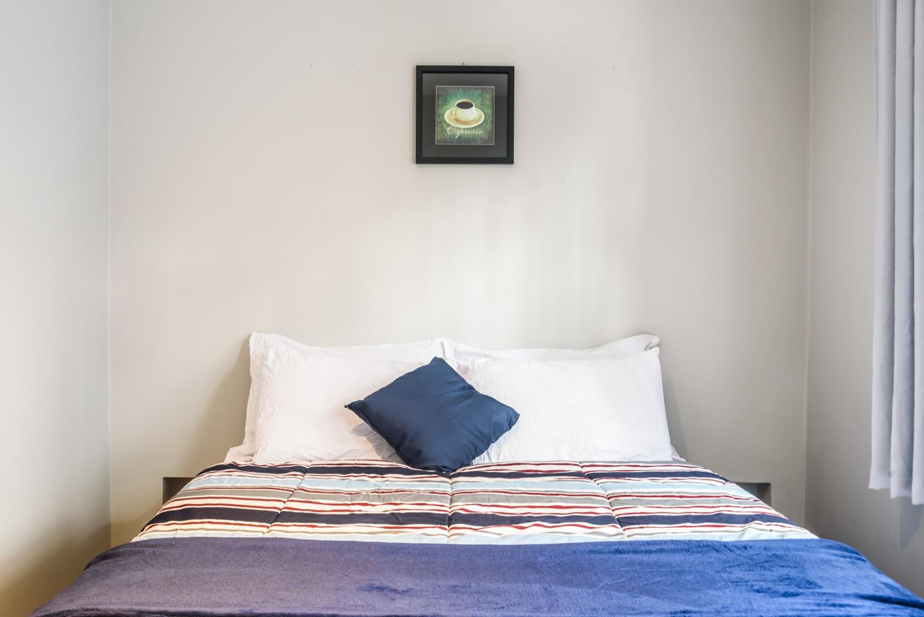 Eu fiquei no quarto 301, que é horrível. Não tem armário para pendurar roupas, jogo de cama provavelmente não foi trocado, cheiro de mofo, paredes pintadas pela metade, cantos sujos. O quarto 302 até vai, mas esse aí é horrível.