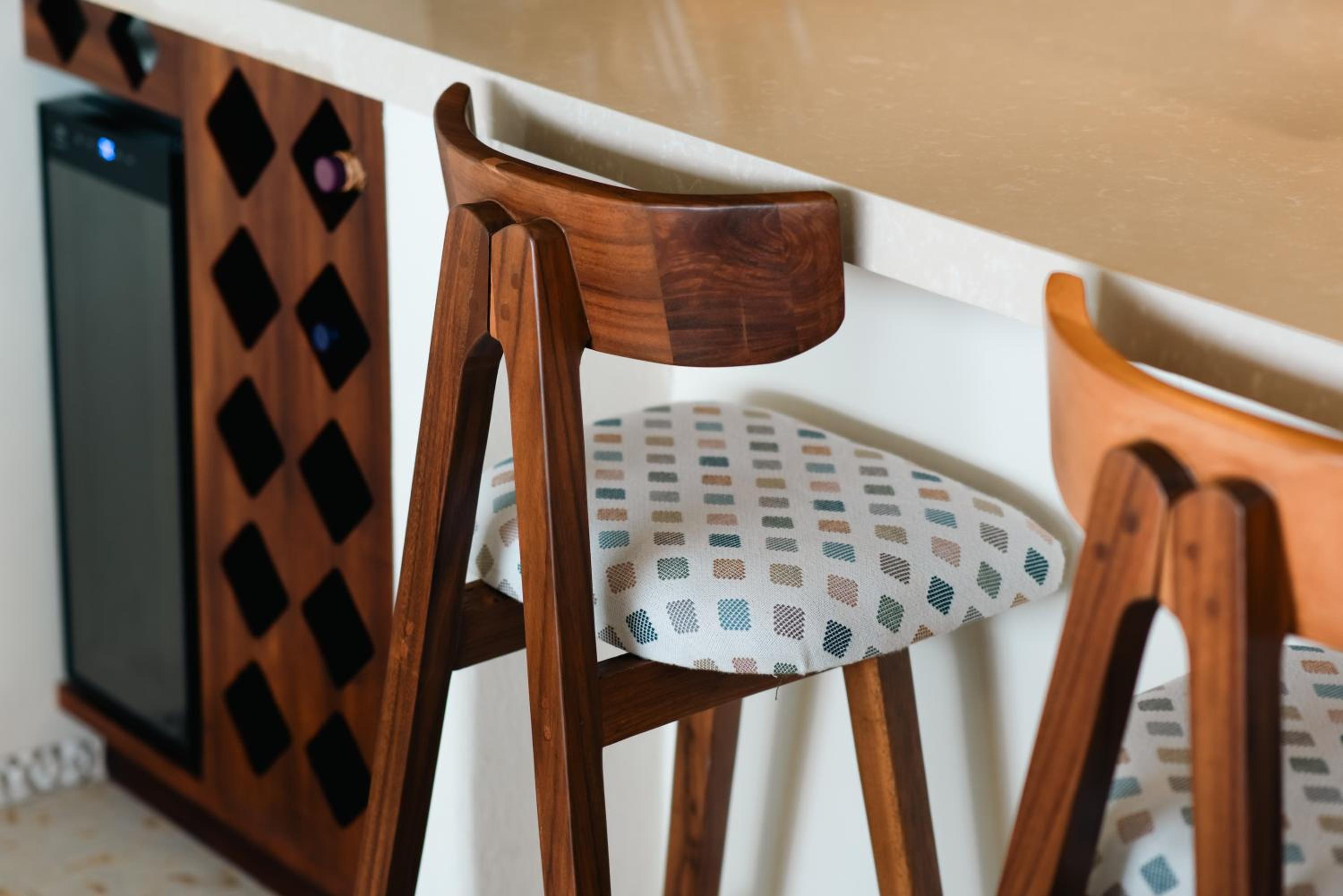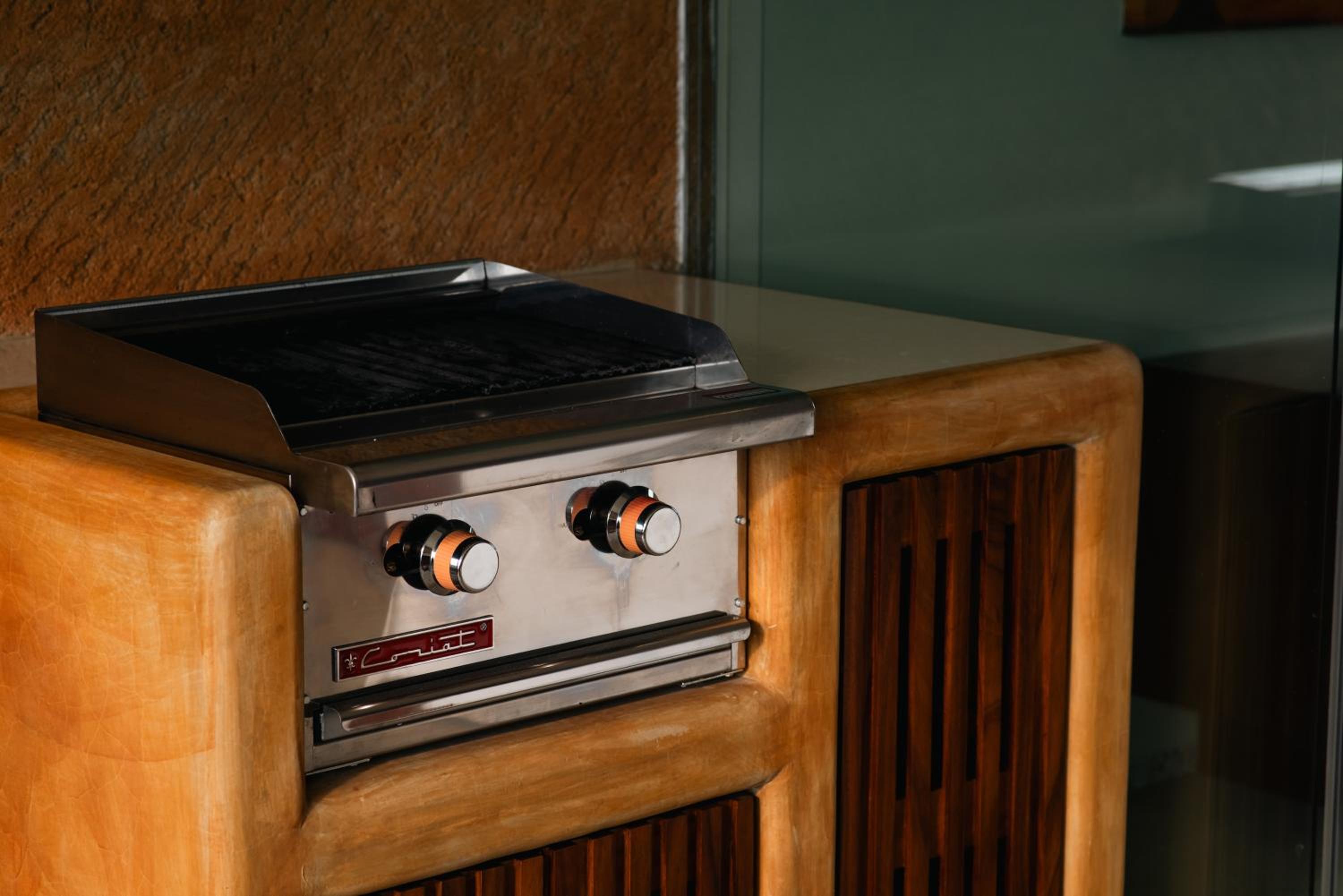 The stools inside for use on the island are not meant for this. They are too high and your legs do not fit under the island to eat any meal, which we would have preferred instead of eating on the couch, and eating outside on the patio is not an option since it is way too hot there. Also hot water runs out too quickly to take a shower. So get ready for a cold shower sometimes.