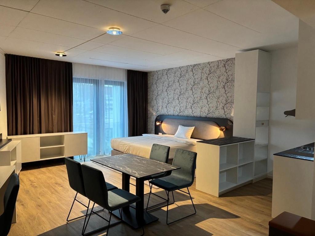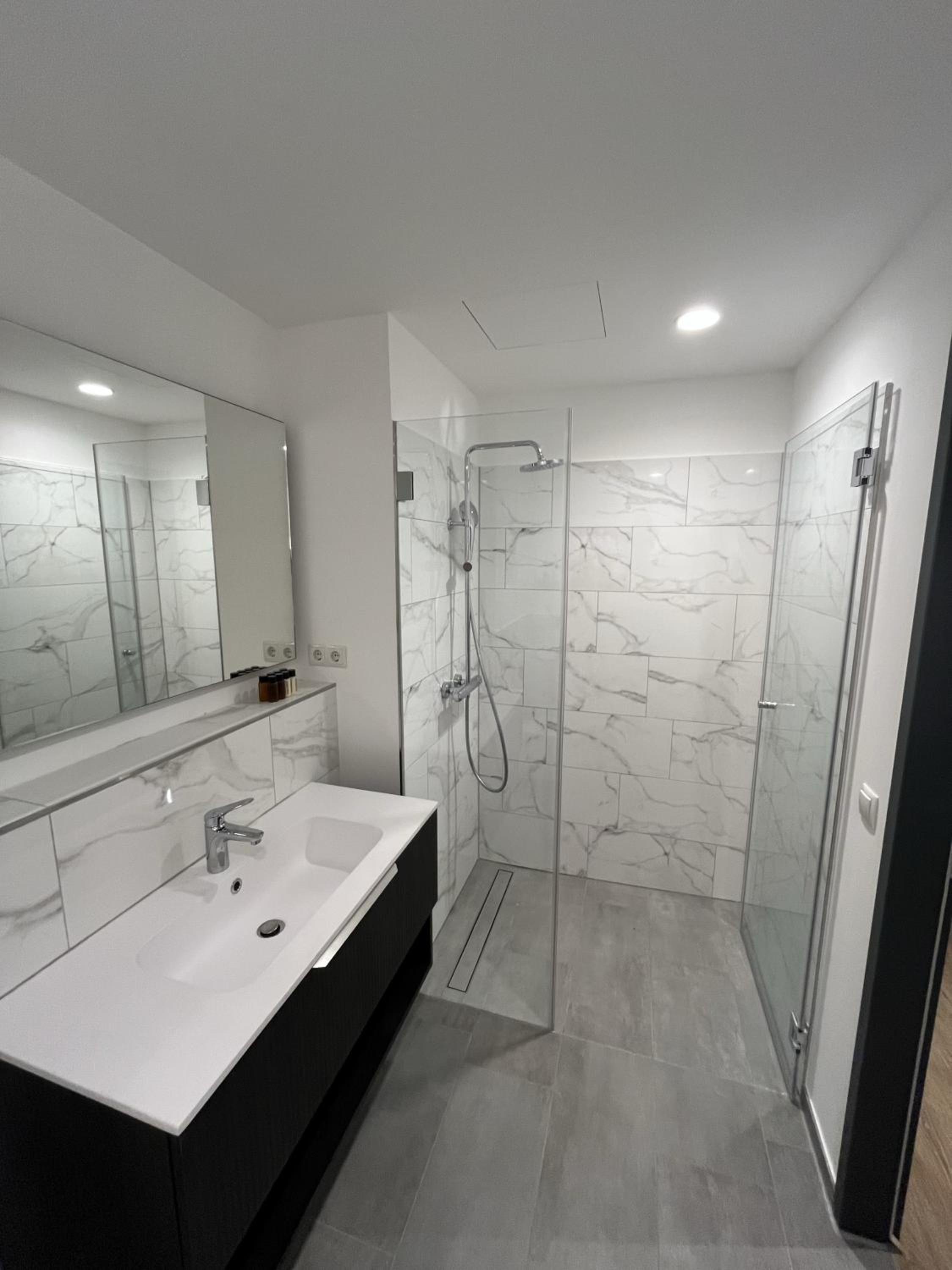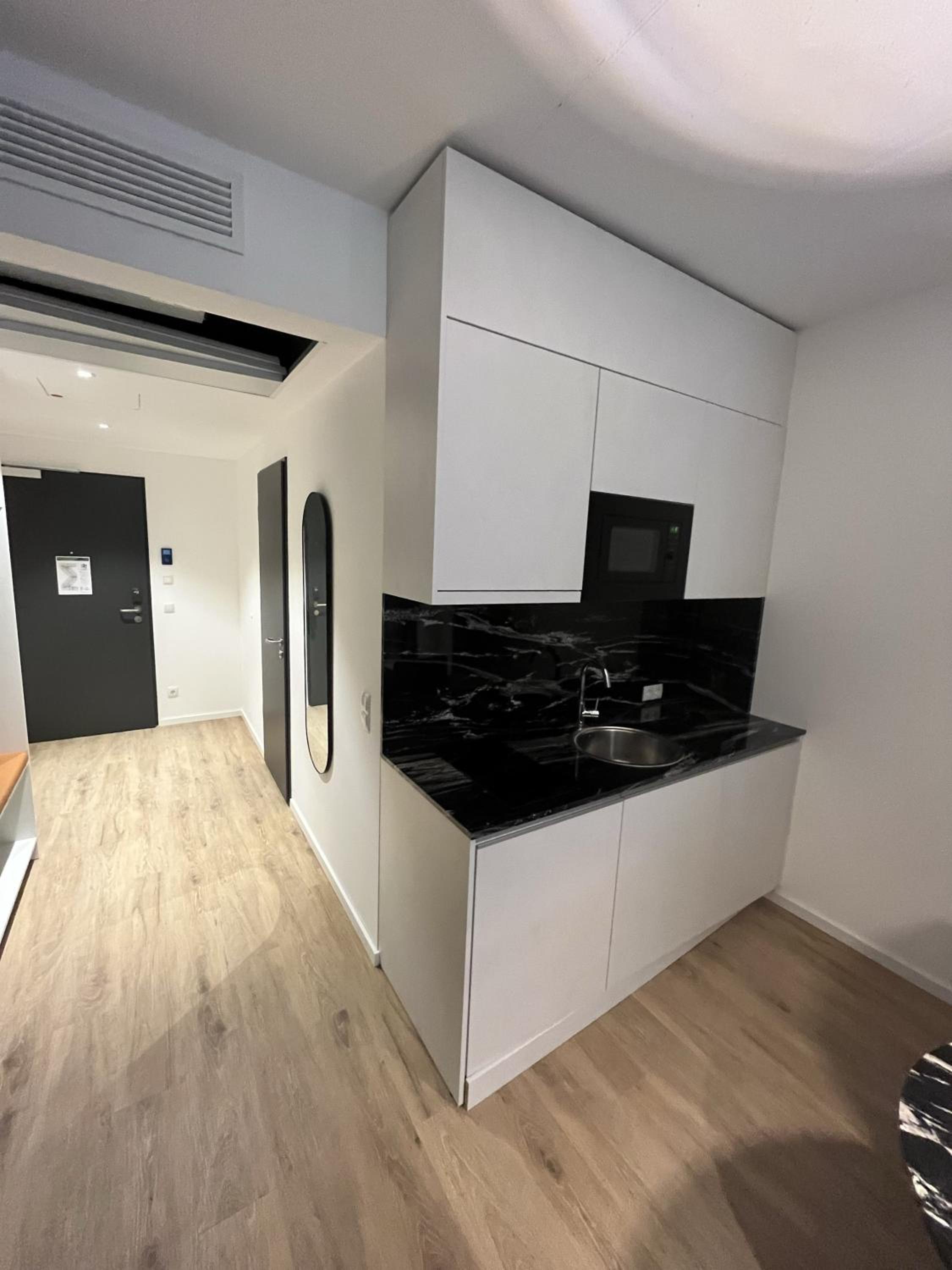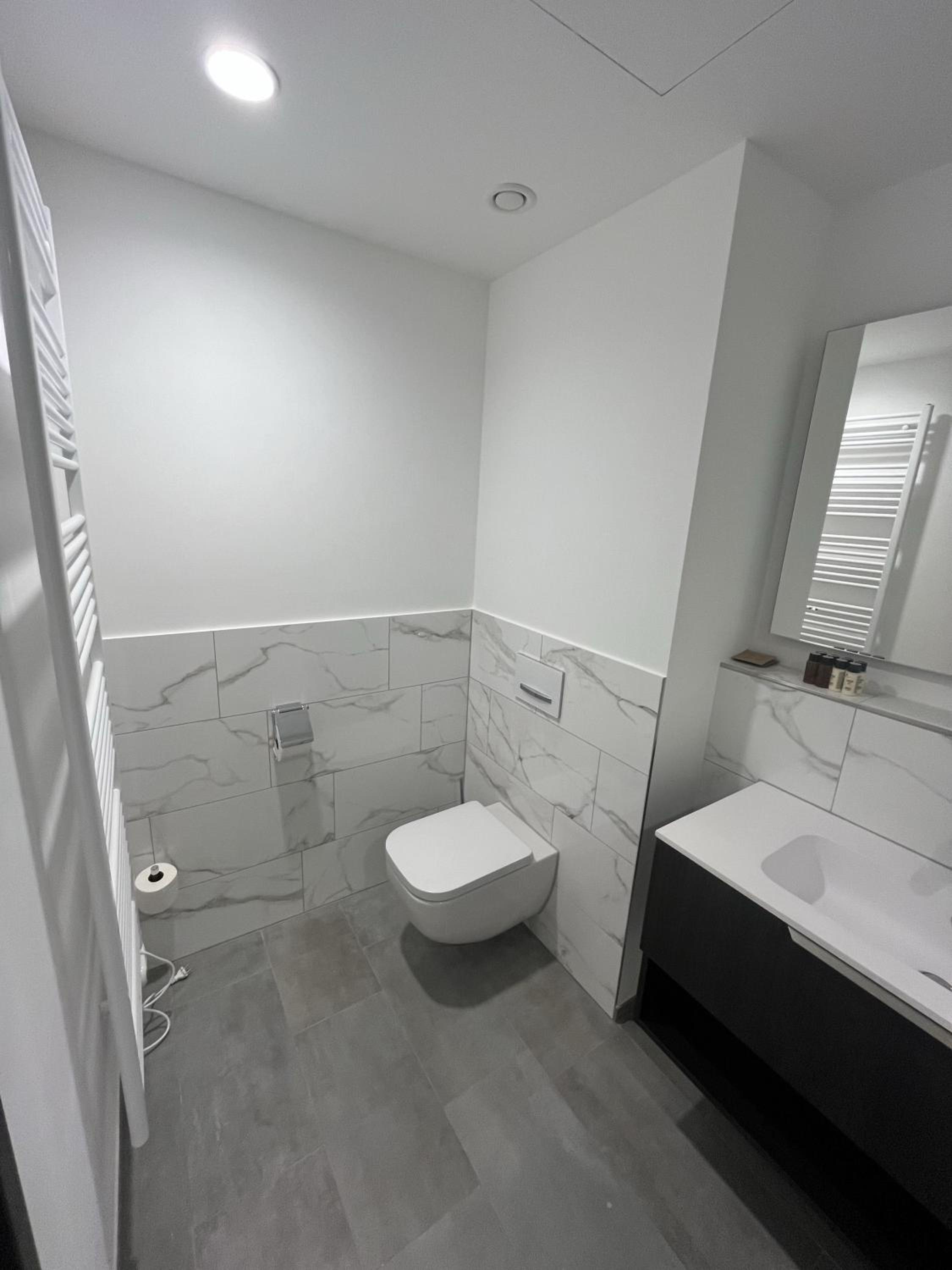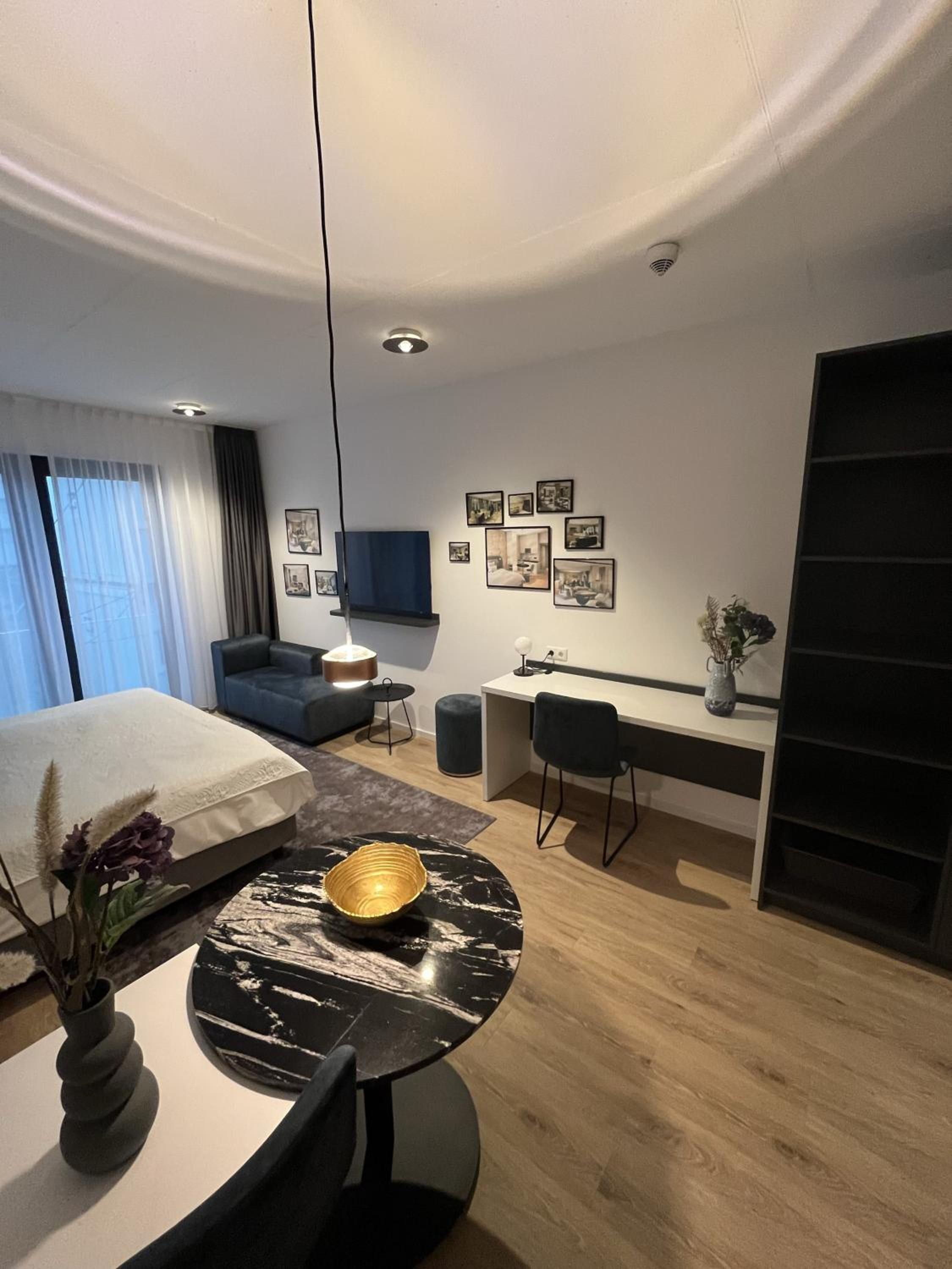 Alles neu und modern, umfangreich ausgestattet- die kleine Küchenzeile war perfekt. Großes Zimmer. Bequeme Betten und Allergiker-Bettwäsche. Unkomplizierter Self-Check-In. Angenehmes Treppenhaus. Gemütliche Lobby.