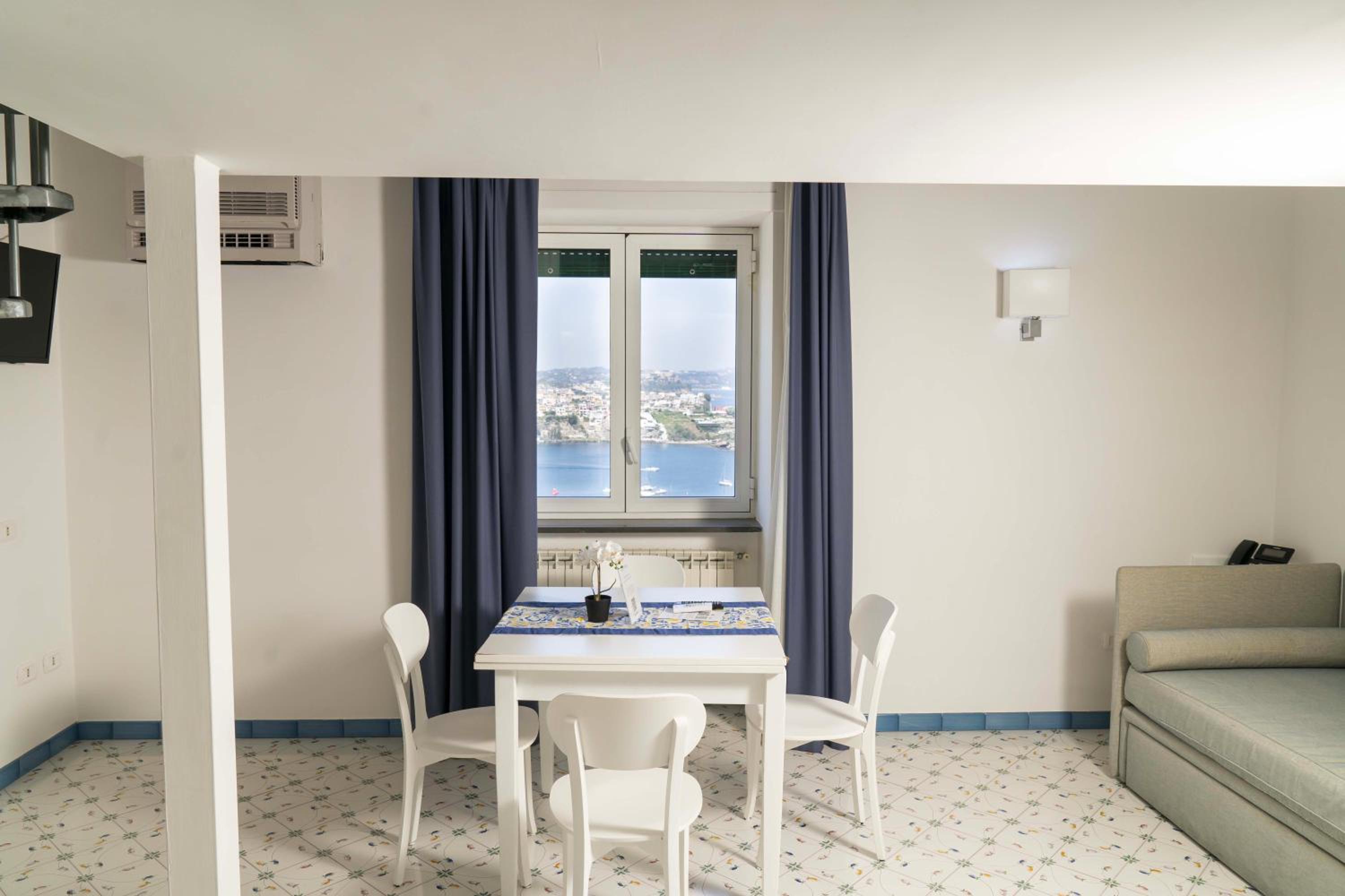 Experience comfort and convenience in our air-conditioned rooms with private bathrooms and fully equipped kitchenettes. Some units even offer stunning sea views from private balconies.