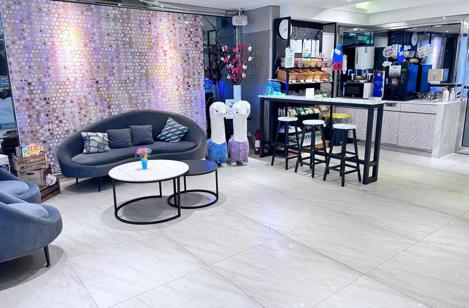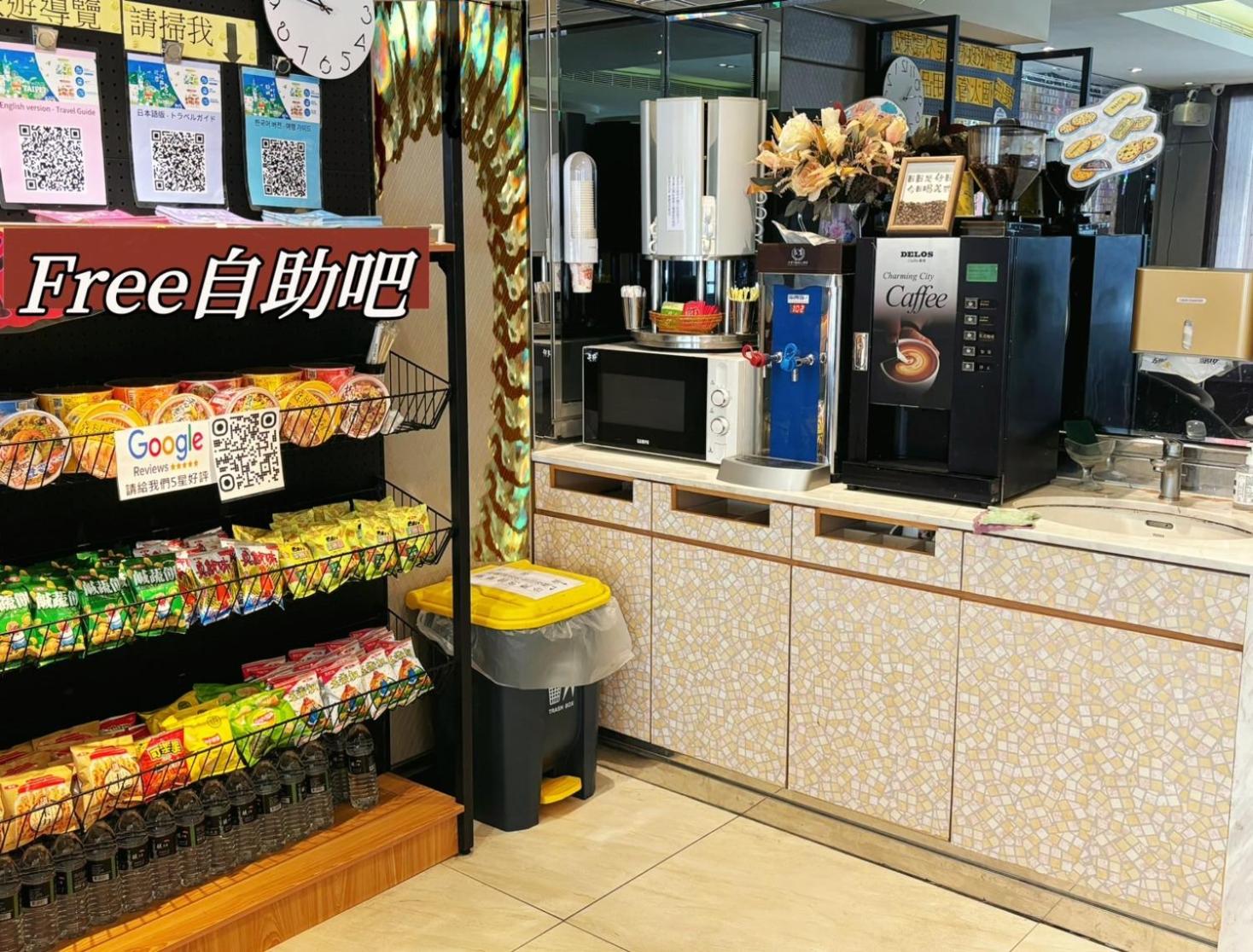地點優越,距離松山機場很近,附近除了有便利商店也有酒吧或餐飲店可供覓食。一樓大廳有免費零食、礦泉水與泡麵可以自由拿取,也有熱水供應。