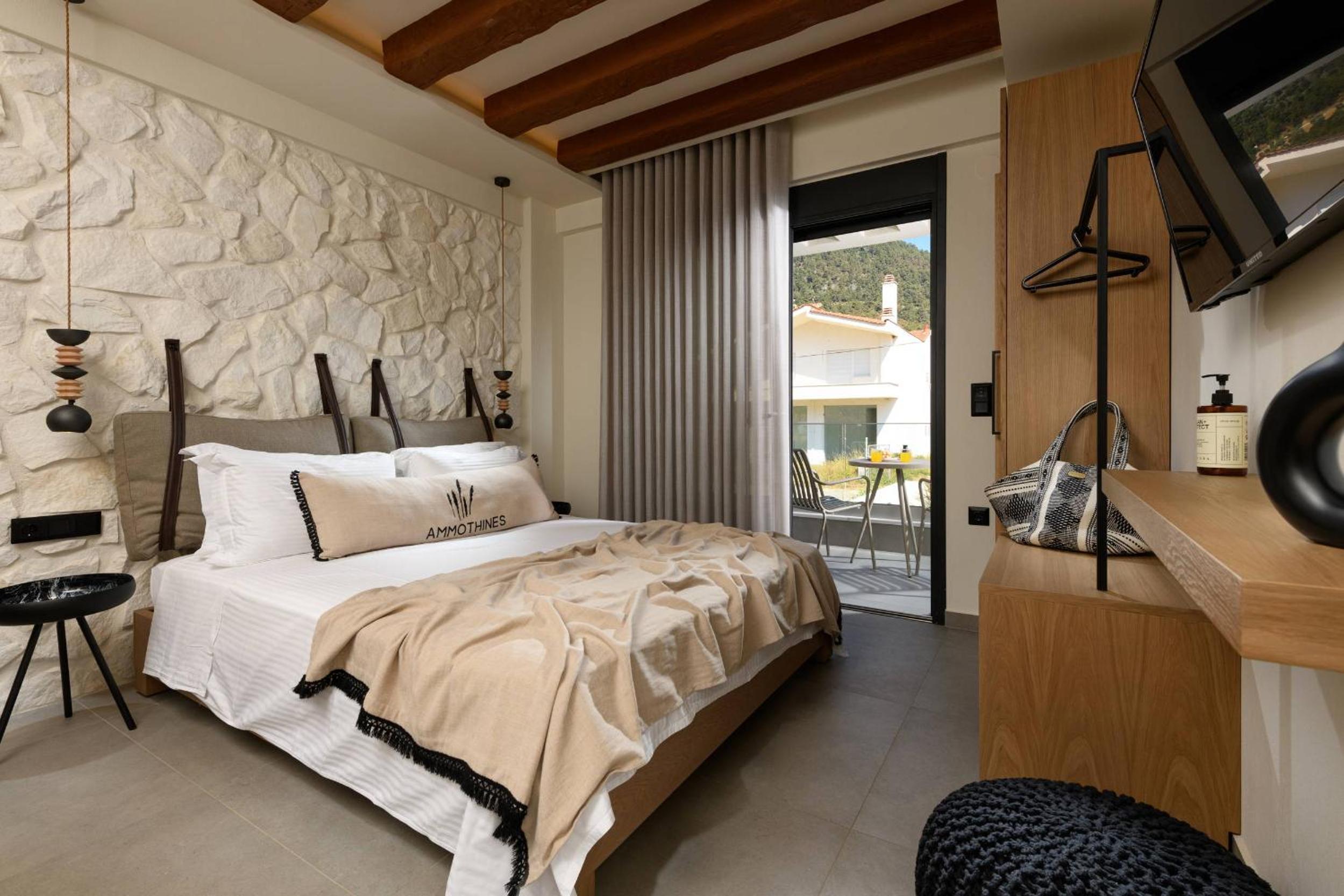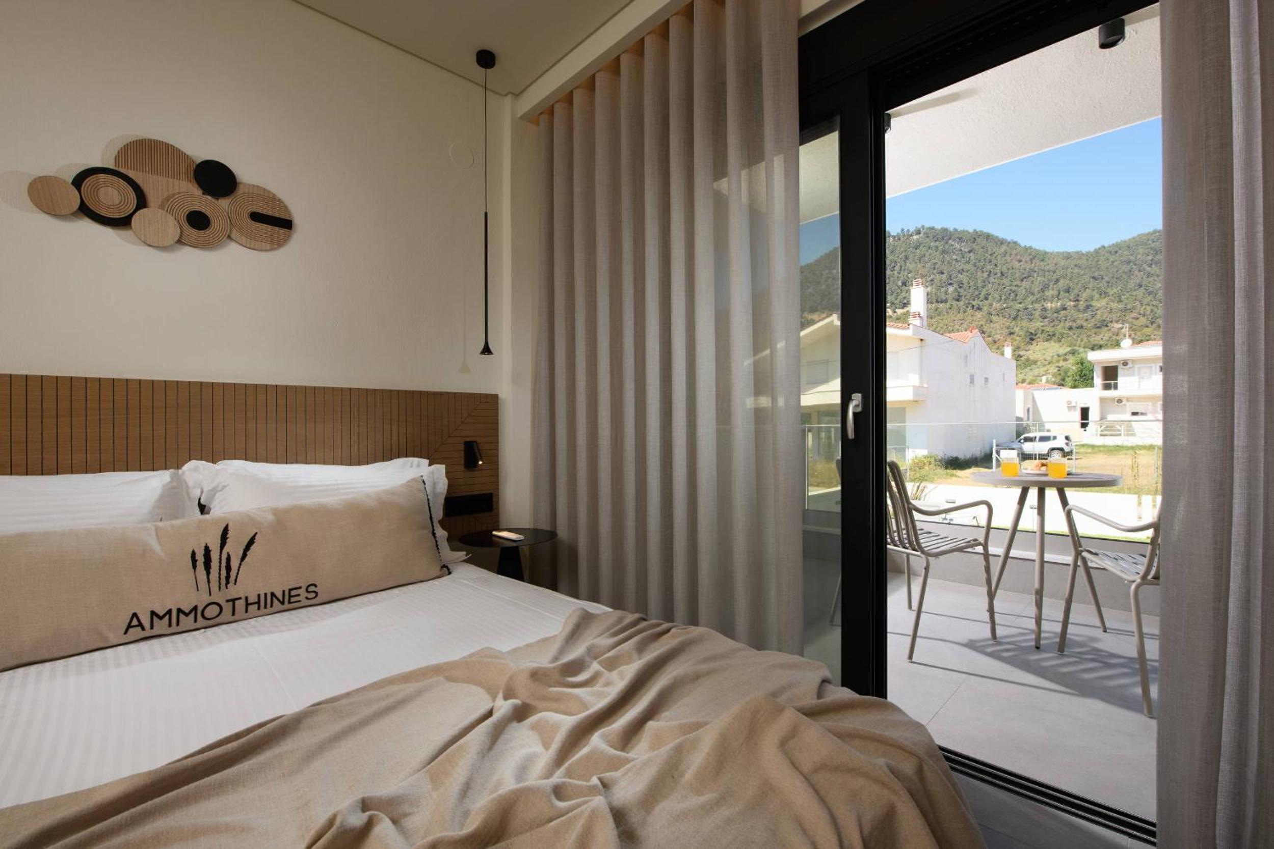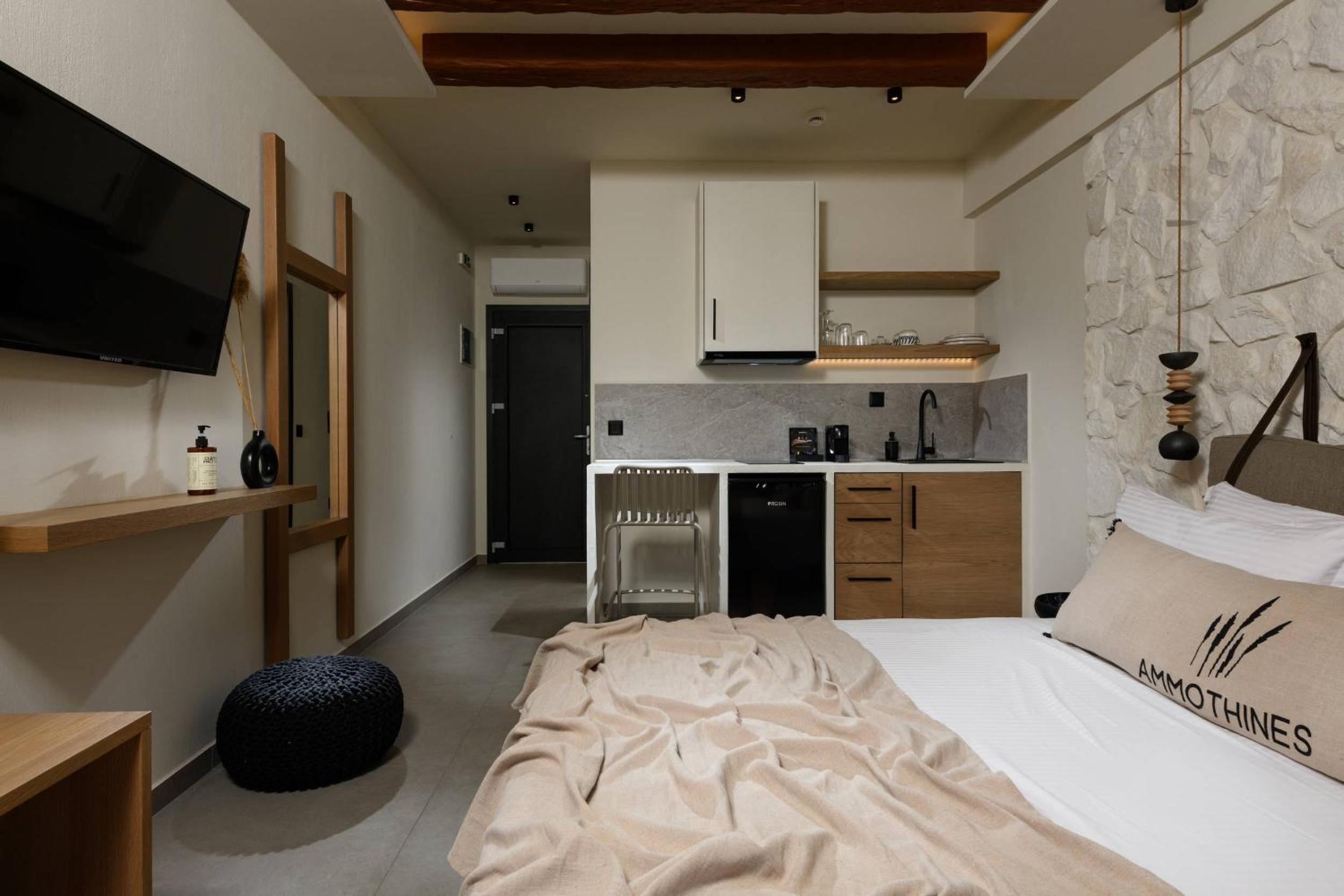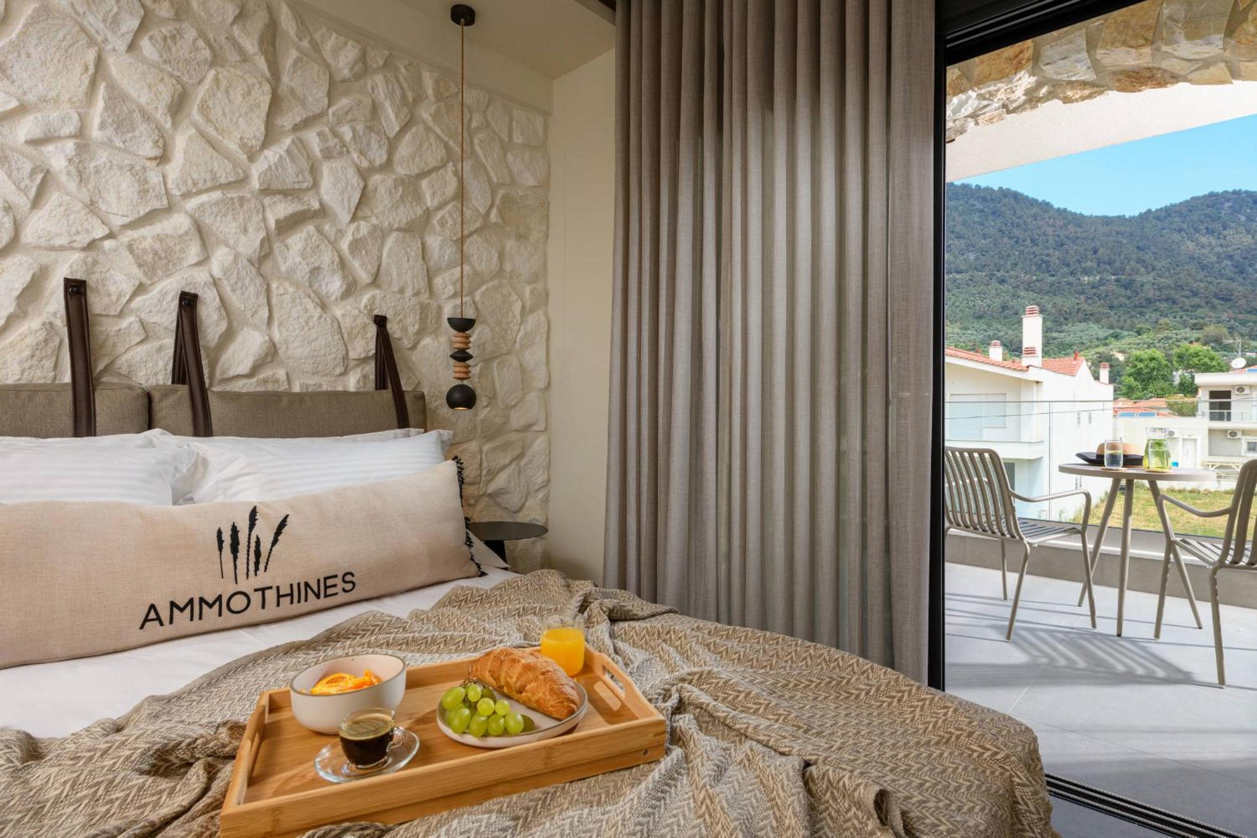 Ammothines Beach Suites offers air-conditioned rooms with a range of modern amenities including a coffee machine, flat-screen TV, and a private balcony. Guests can enjoy breathtaking mountain views and relax in comfort with room service and free WiFi available throughout the property.
