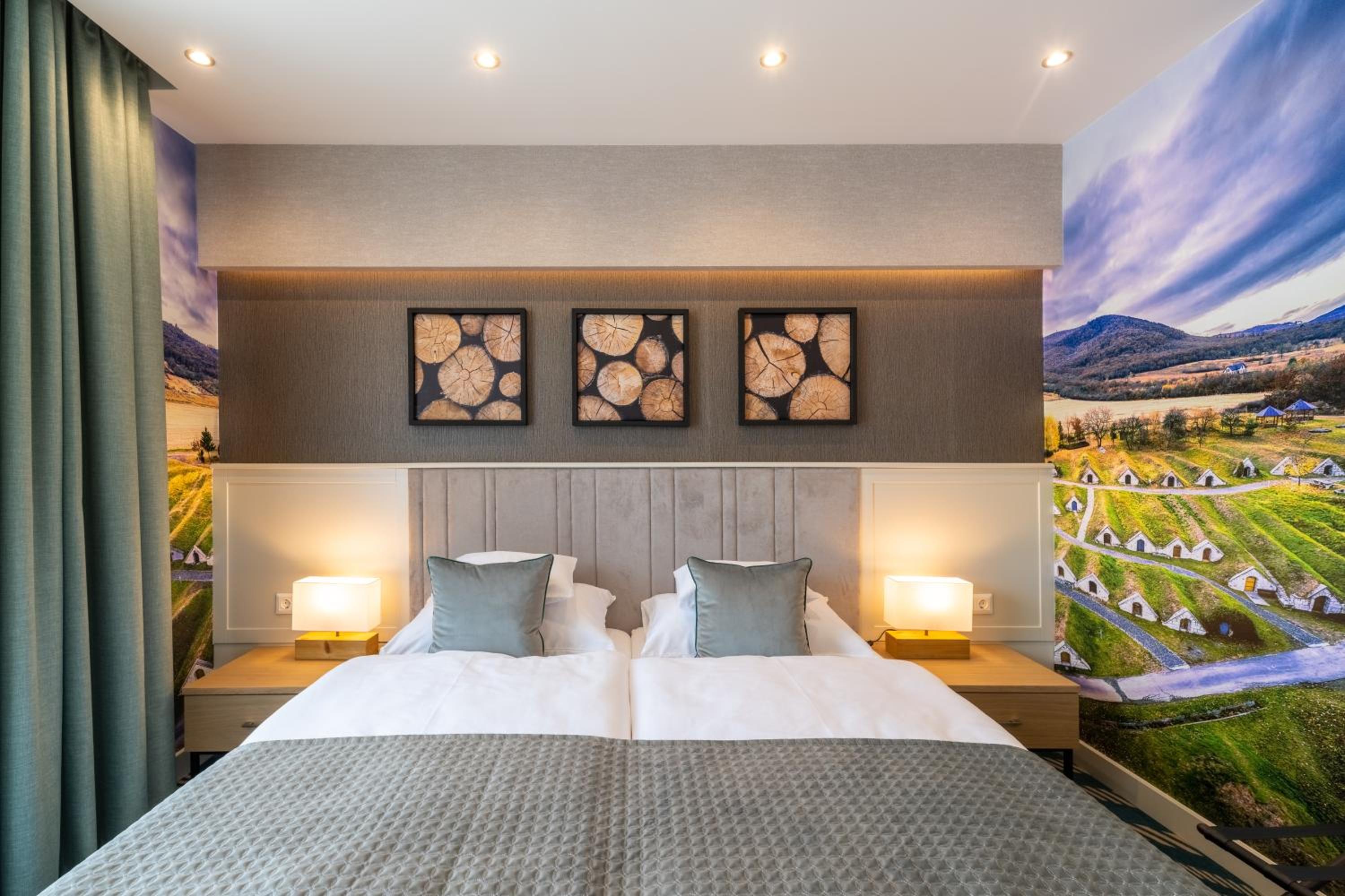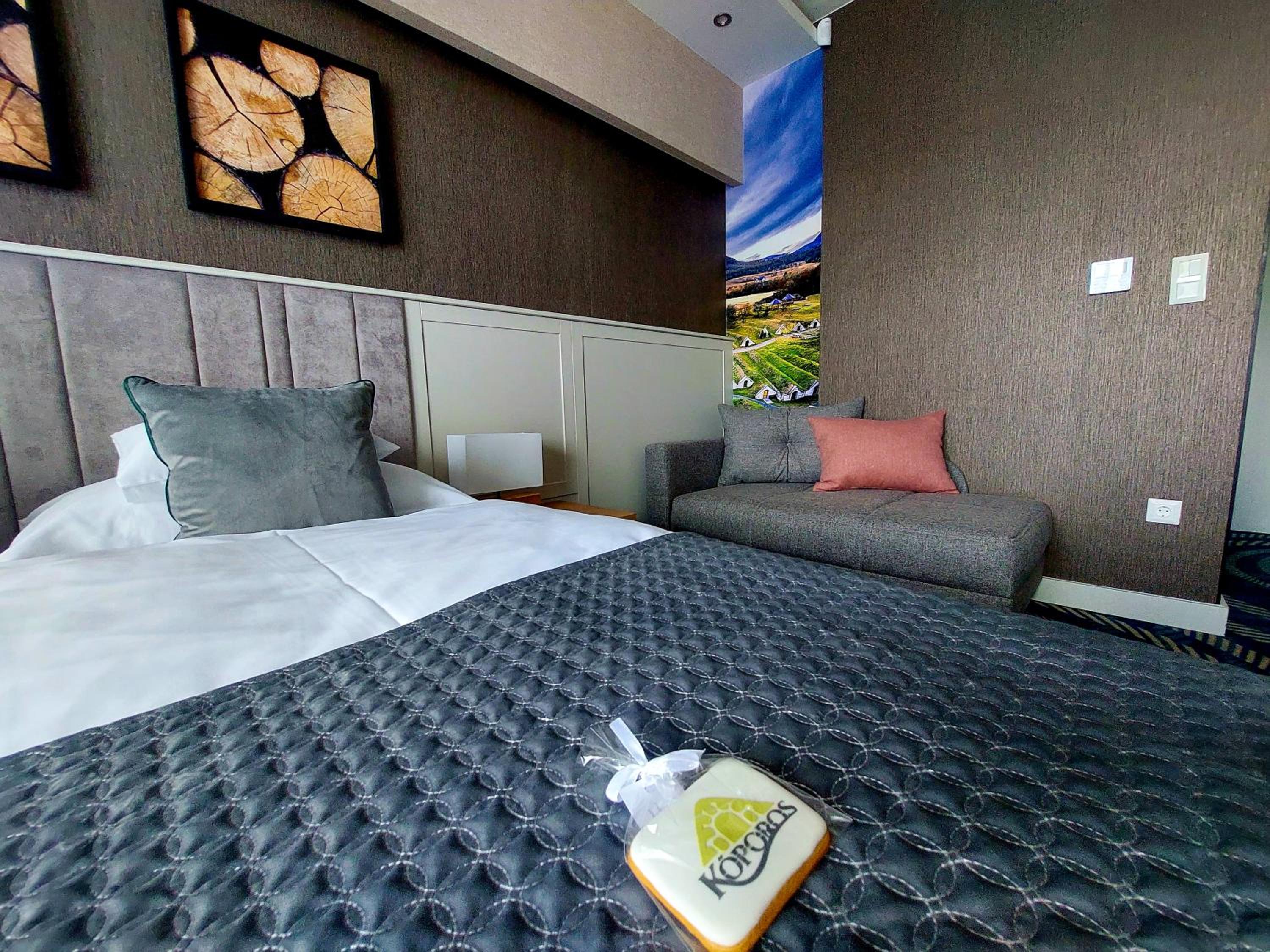 Experience a stay like no other at Hotel Kőporos Hercegkút, where luxury meets nature with stunning mountain views. Indulge in the comfort of air-conditioned rooms equipped with modern amenities and enjoy access to a sauna and hot tub for ultimate relaxation.