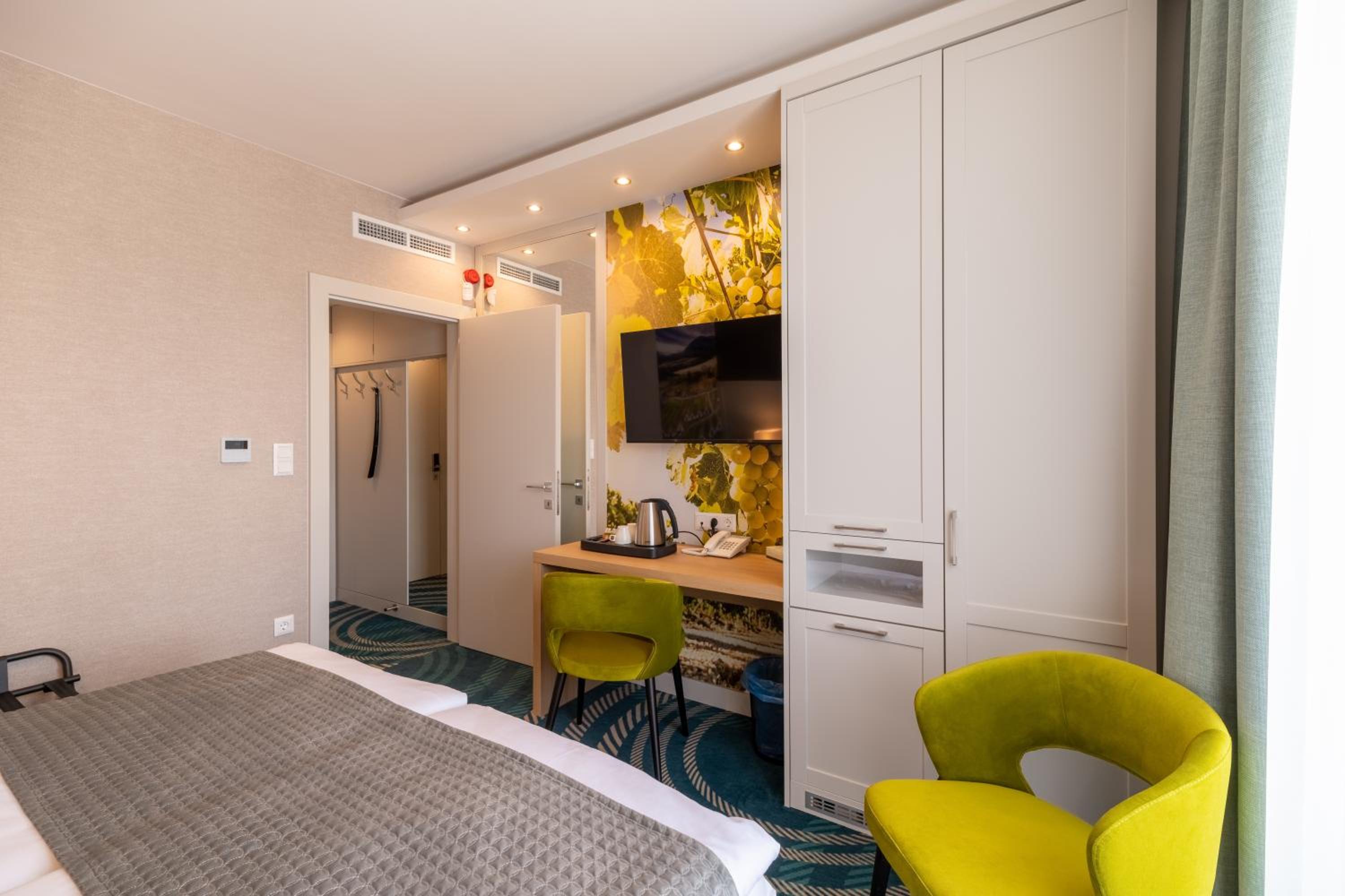 The hotel was excellent. It was clean and an overall great value for money. The location is just barely out of town but the quiet and peace are well worth it, also it's very close to the wine cellar rows. I highly recommend staying here!