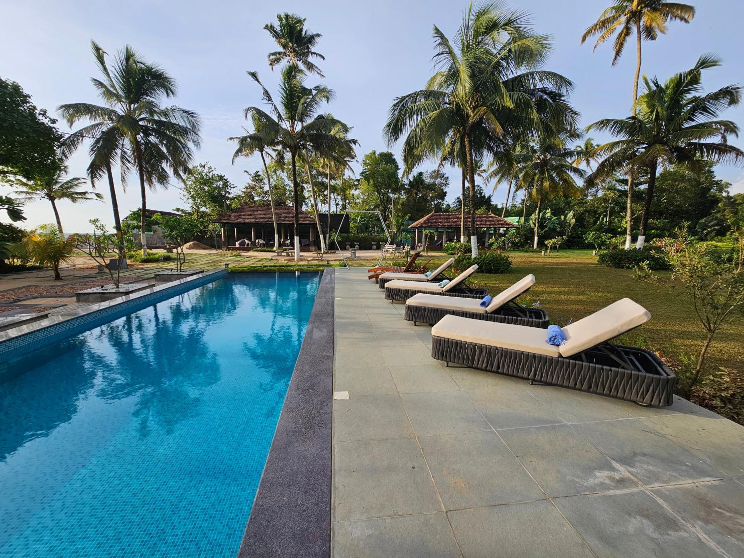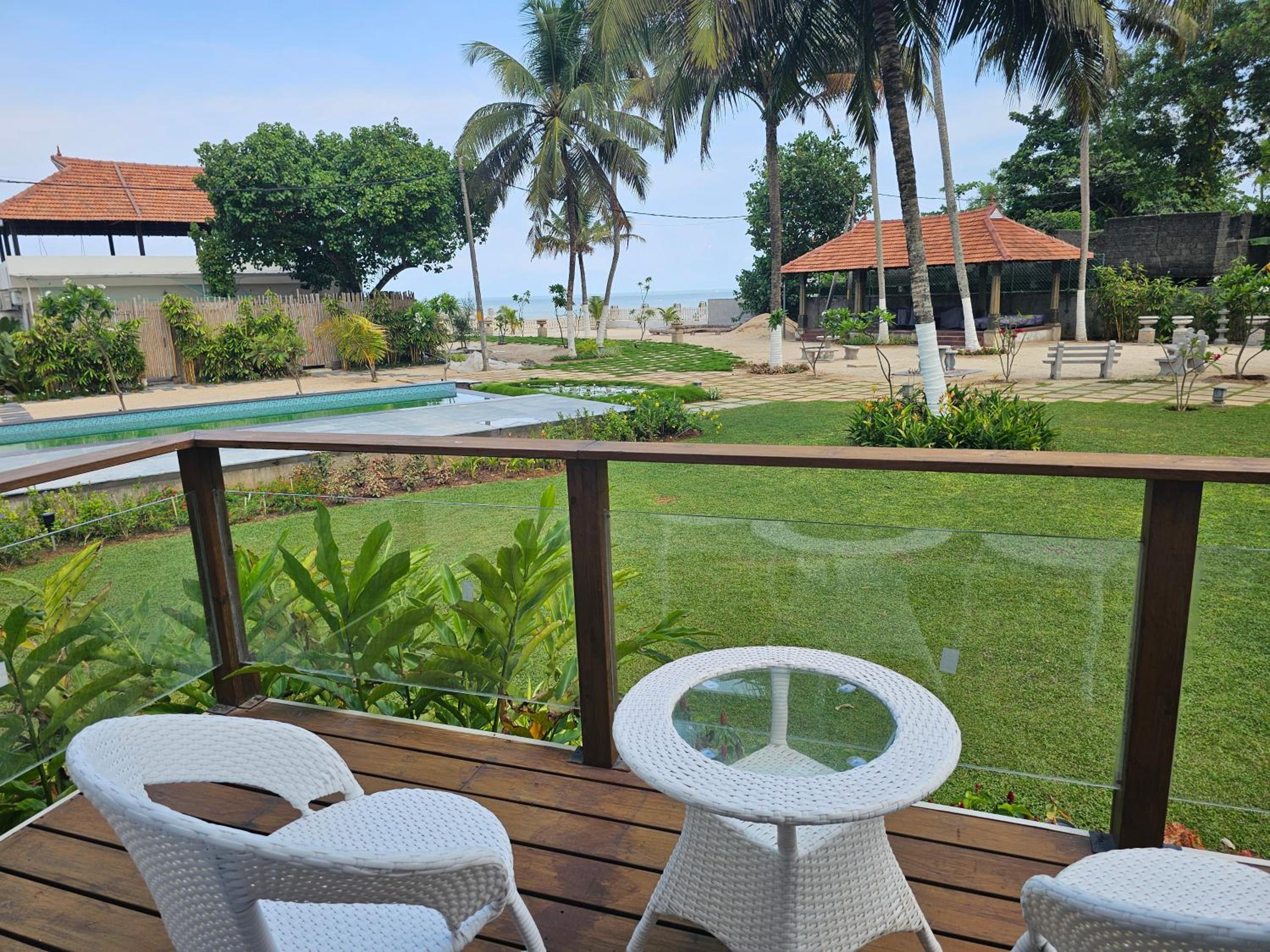 Gorgeous, immaculately laid out gardens worth 10+! Appropriate number of cabins arranged well. Staff should be proud. Very peaceful, somewhat isolated location with a clean private beach. Just what we wanted, restful after touring India. Staff were all lovely and friendly also deserving of 10+!