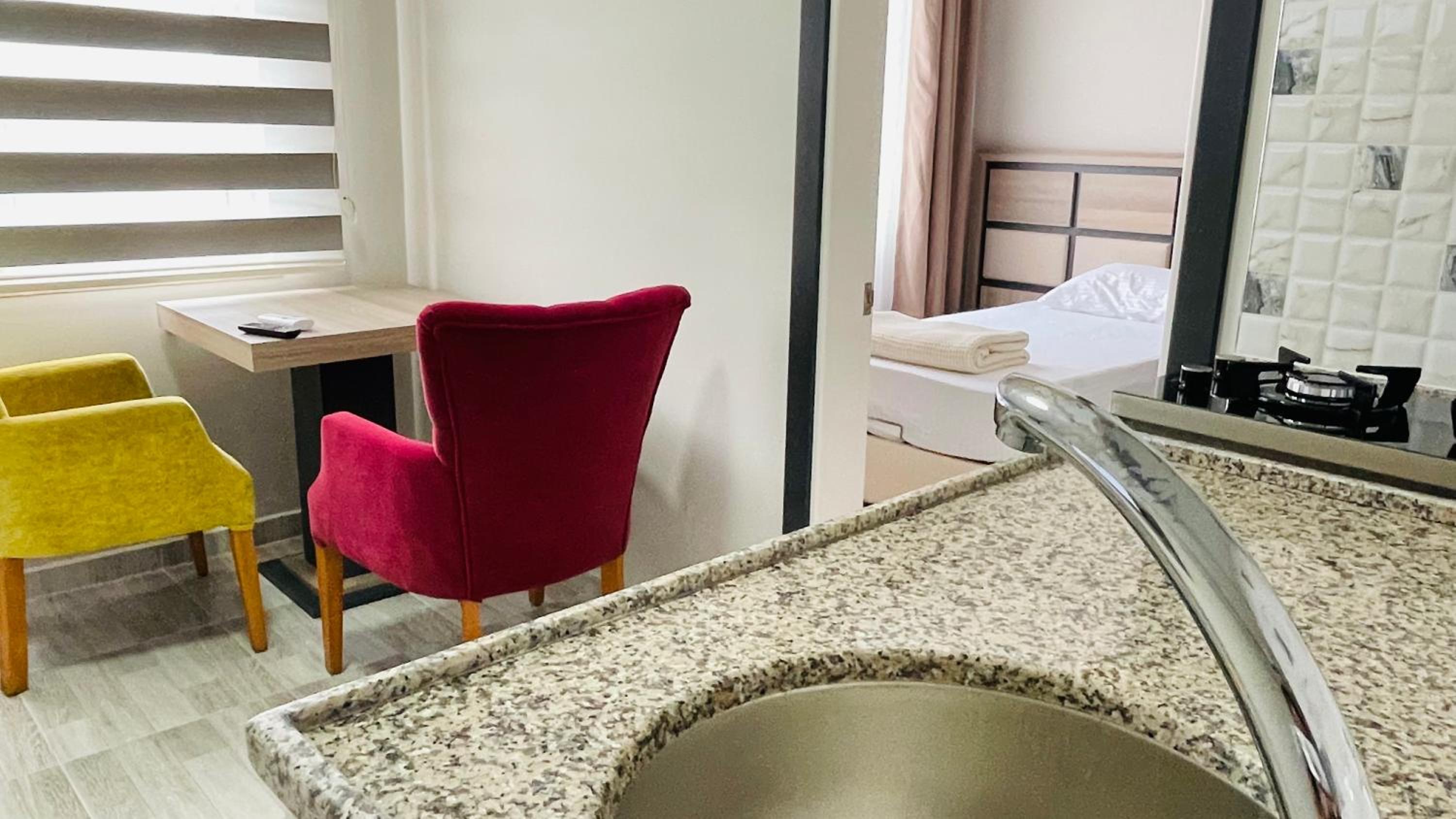 The reception guy s not there all the time he will sit little time then left and there s no water in building I went down ask him there s no water cming he told me all trabzon no water How s possible and how u live without water and it s cming night time 8 clock and even my check out time am waiting for him atleast 4 hour he not there bc he lock the reception door and I don t know where he went anyhow I left key there near reception door inside bc I can t wait longer I have my flight evening and room was clean and nice but there s no water 😊