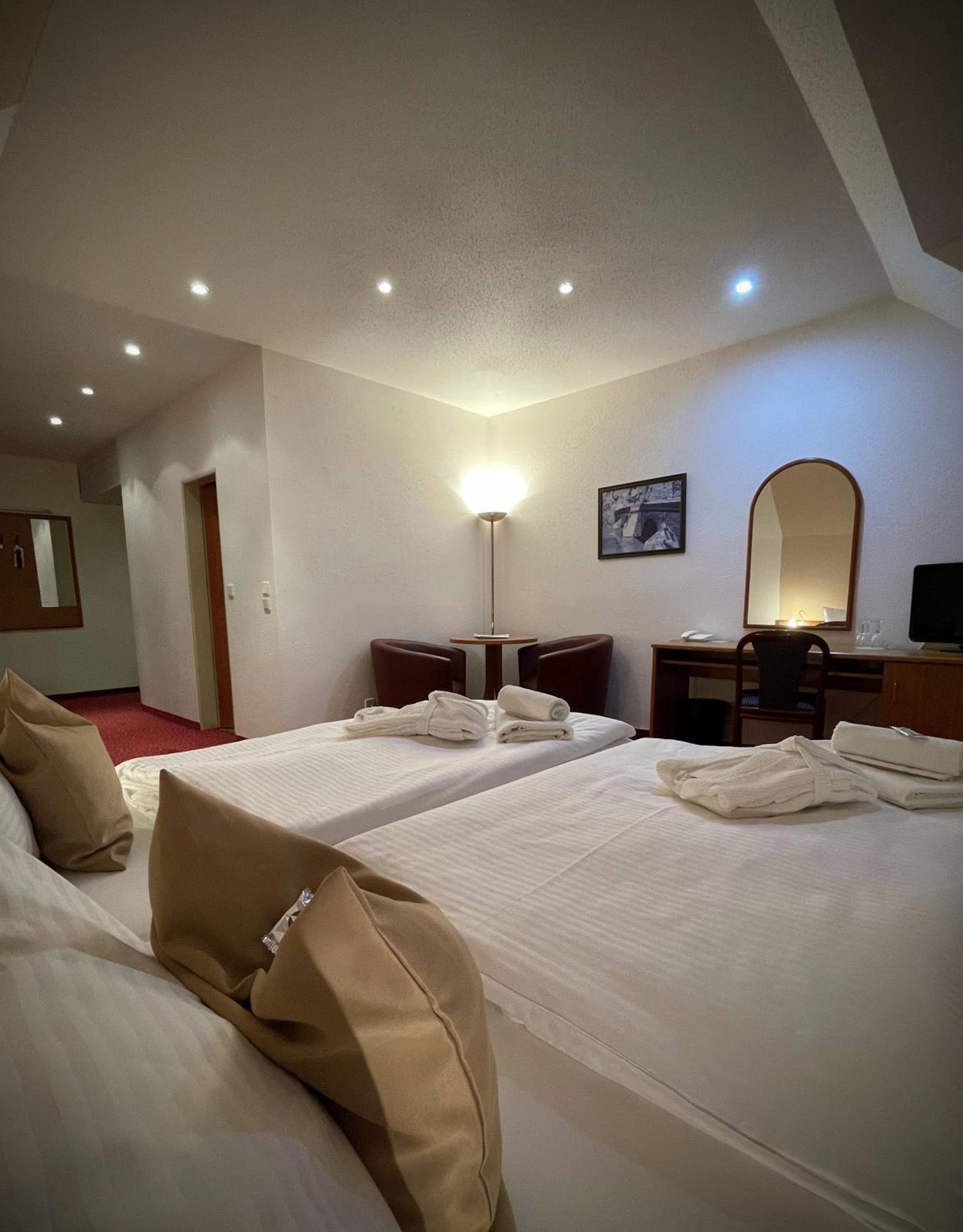 Toll fanden wir das große Zimmer den südseitigen Balkon den modernen und gut gestalteten Wellnessbereich Schwimmbad Fitnessbereich und die günstige Lage zwischen Cheb und Franzensbad