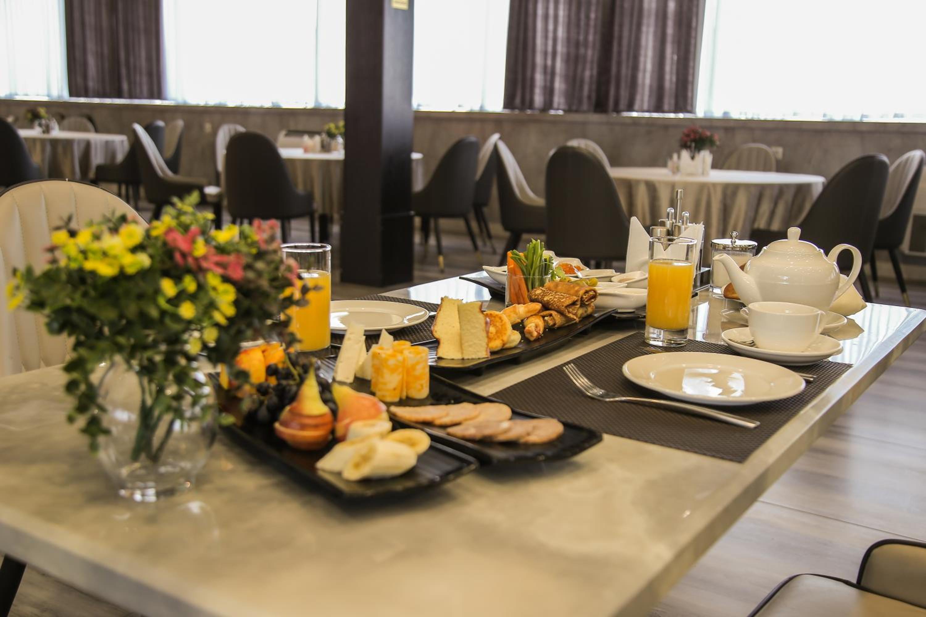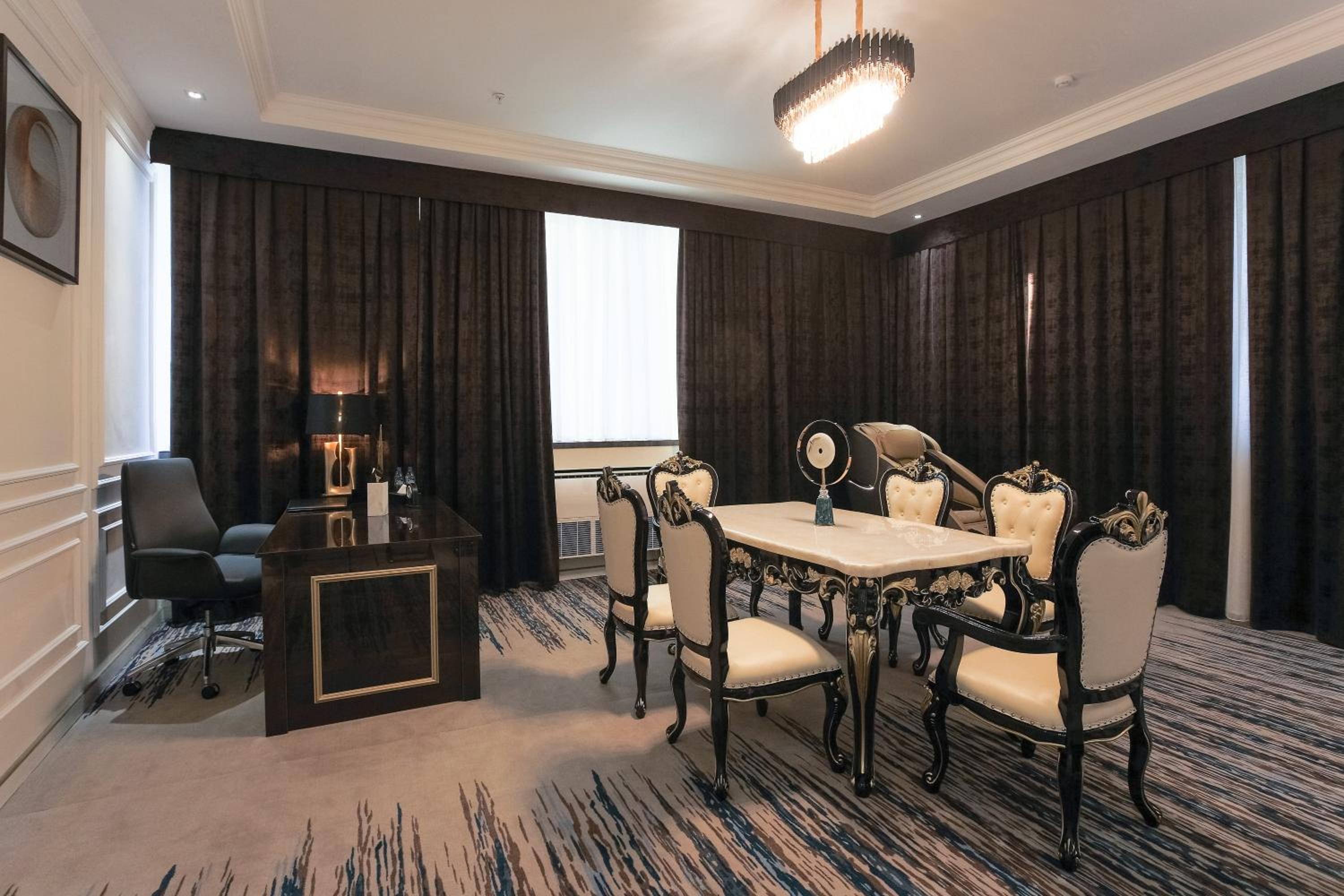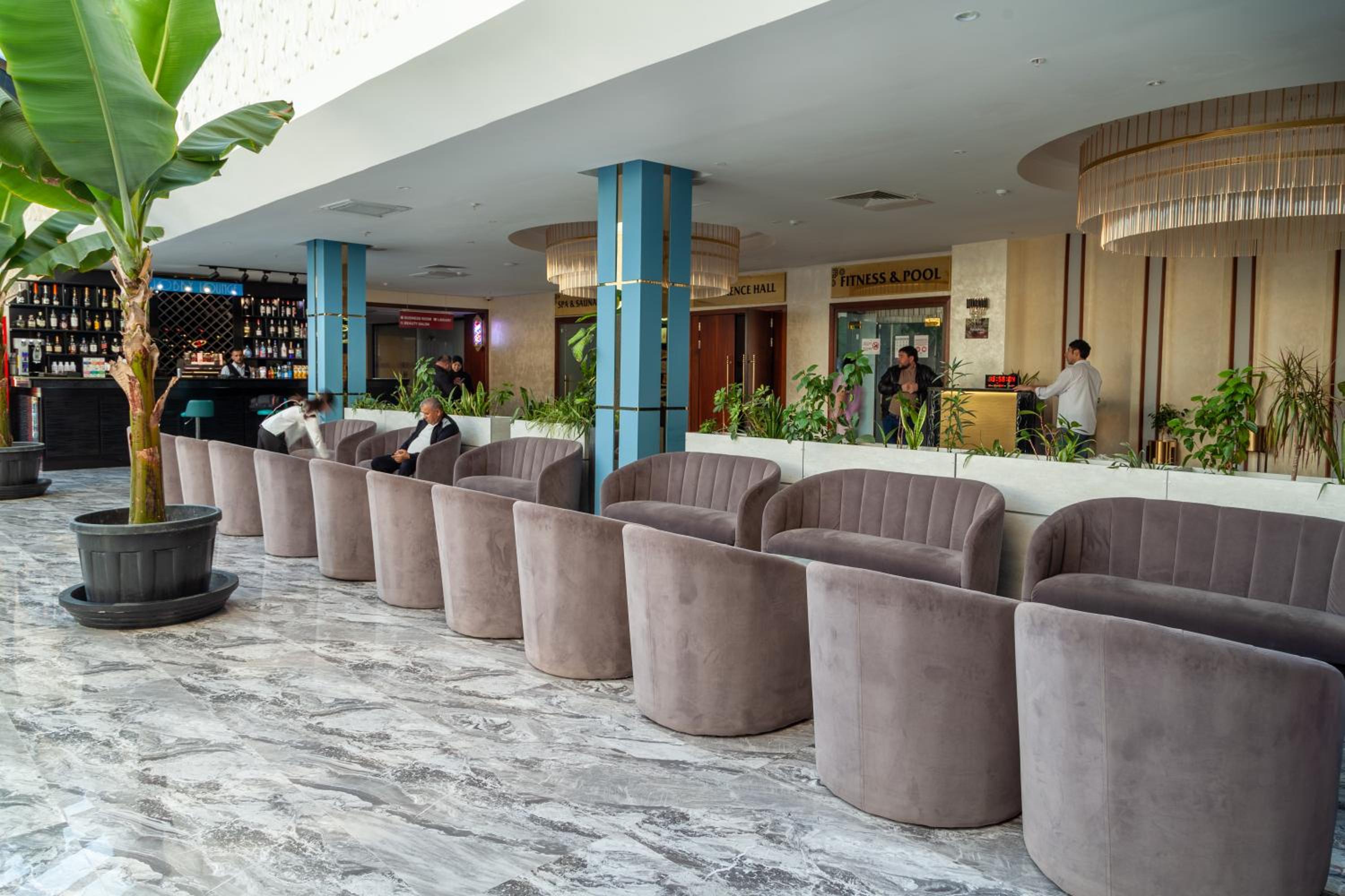 В номере ужасно темно, все освещение это 2 спота, шторы просвечивают и утром светло как днем с открытыми шторами. При бронировании мне нужно было добавить день и при обращении в отель они мне ответили сами там как-то разберитесь что вам там нужно. Завтрак вроде ничего но тоже как в бедной семье вместо нормальных 2-3х кофемашин стоят 6домашких, половина из которых не работает, все 5 грязные и плохо обслужены внутри и так как все это на потоке плохо работает рядом стоит парень в мыле и без конца перезаправляет их и вытряхивает отработаный кофе чтобы это все как то рабоотало. Чувак который жарит яичницу дри дня исчезал когда мы приходили. Видно что в отеле экономят на всем. А цена за 3 ночи за сдвоенный номер у нас вышла в 1300 долларов и это ужас . Самарканд силк роад и самарканд мевенпик при качестве все выше на много стоил в почти 2 раза дешевле. Больше туда ни ногой.