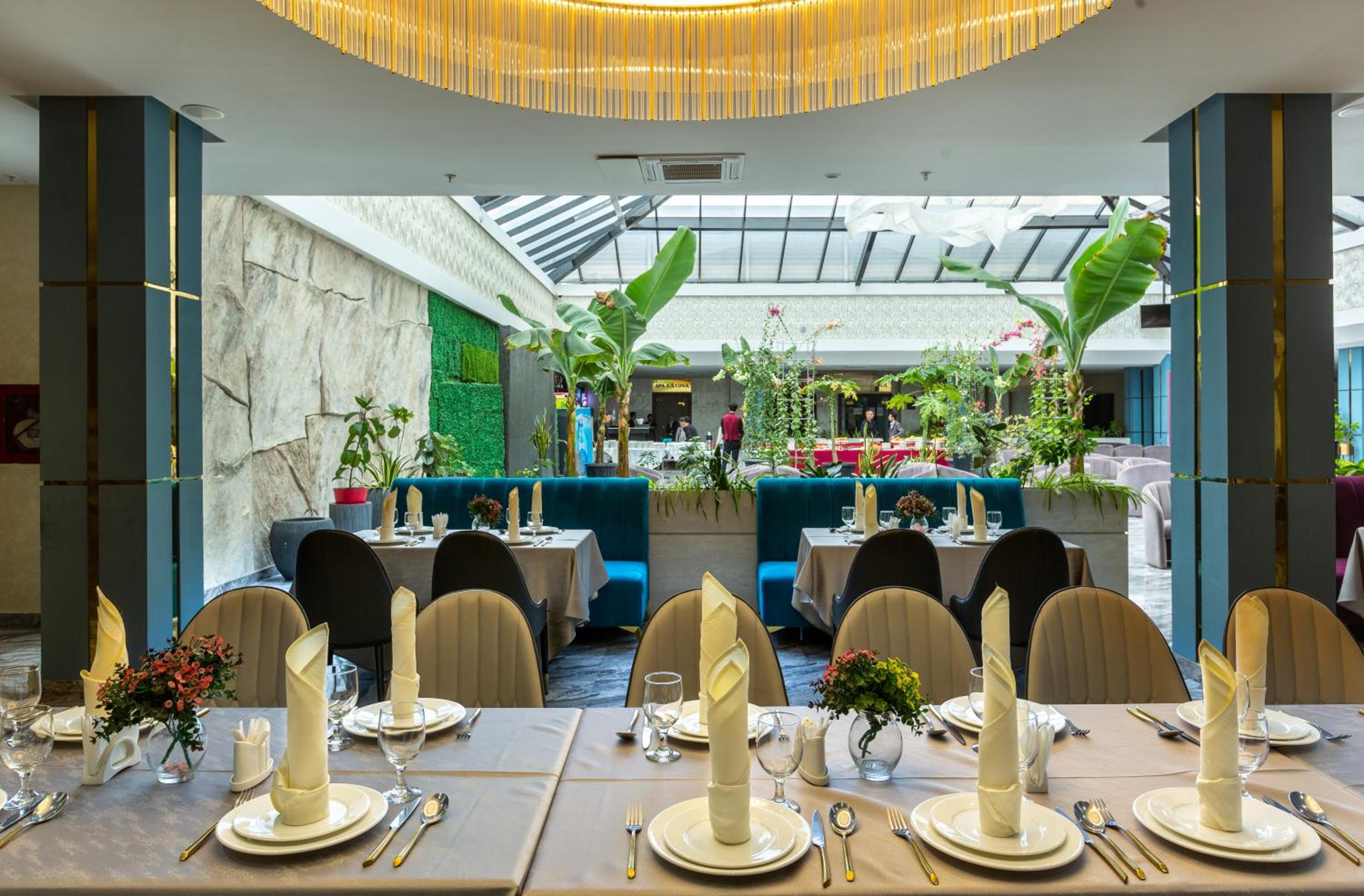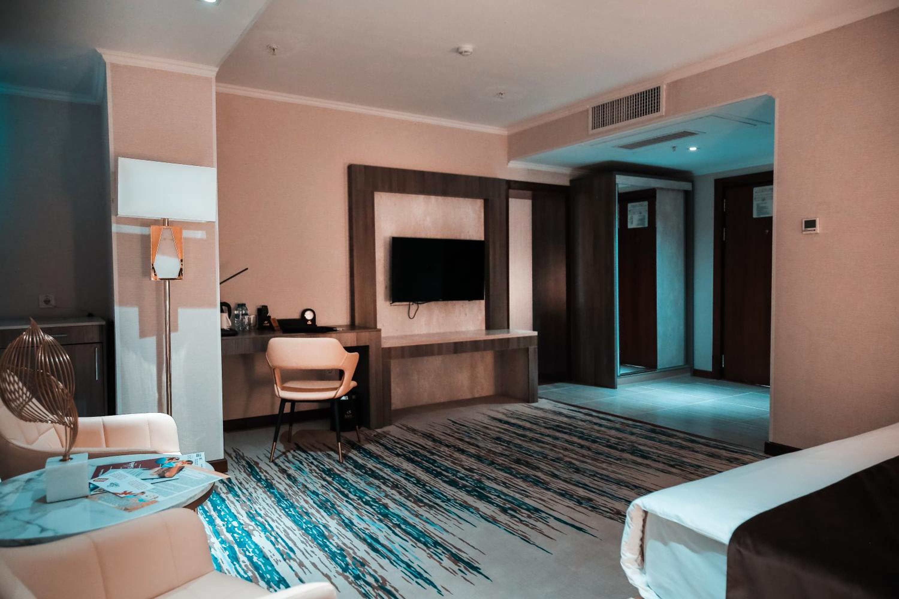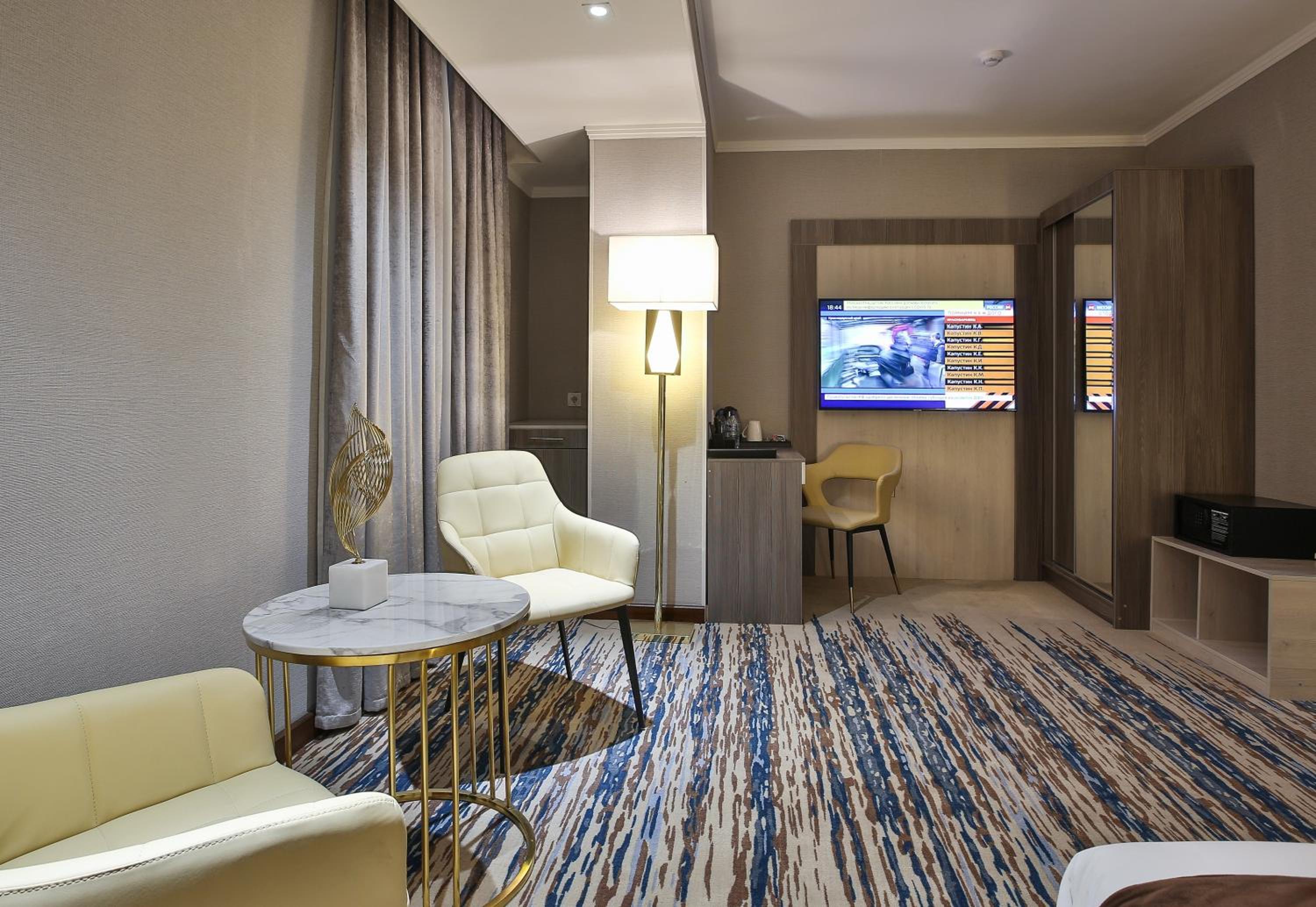 В номере ужасно темно, все освещение это 2 спота, шторы просвечивают и утром светло как днем с открытыми шторами. При бронировании мне нужно было добавить день и при обращении в отель они мне ответили сами там как-то разберитесь что вам там нужно. Завтрак вроде ничего но тоже как в бедной семье вместо нормальных 2-3х кофемашин стоят 6домашких, половина из которых не работает, все 5 грязные и плохо обслужены внутри и так как все это на потоке плохо работает рядом стоит парень в мыле и без конца перезаправляет их и вытряхивает отработаный кофе чтобы это все как то рабоотало. Чувак который жарит яичницу дри дня исчезал когда мы приходили. Видно что в отеле экономят на всем. А цена за 3 ночи за сдвоенный номер у нас вышла в 1300 долларов и это ужас . Самарканд силк роад и самарканд мевенпик при качестве все выше на много стоил в почти 2 раза дешевле. Больше туда ни ногой.