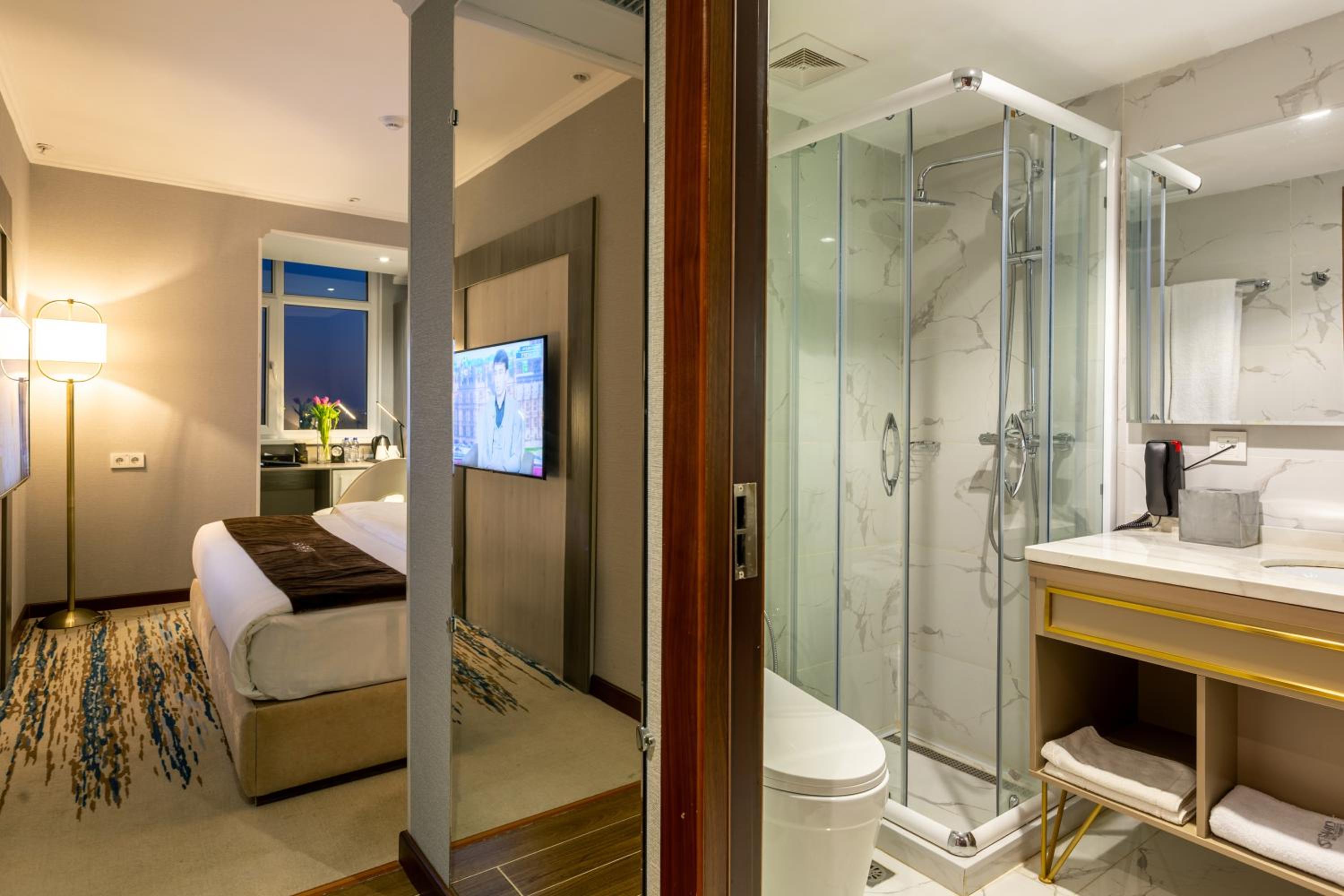 The size of the rooms and bathrooms were huge. The rooms are well maintained and comfortable. The staff were extremely friendly. Especially the manager Ms.Nazokat, she was very helpful and professional. Only suggestion is to arrange more lights in the room.