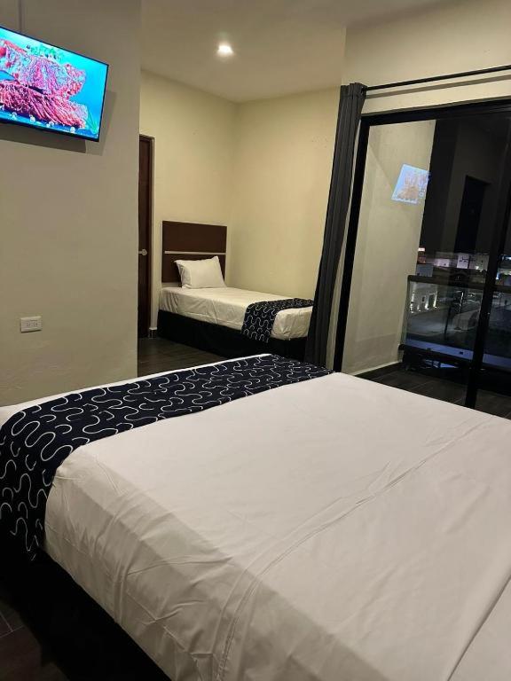 Instalaciones en mal estado baño con olor a drenaje y toda la habitacion se apesta🤮 bichos en la habitacion toallas percudidas no las use tuve que ir a comprar unas jamas volveria no lo recomiendo!
