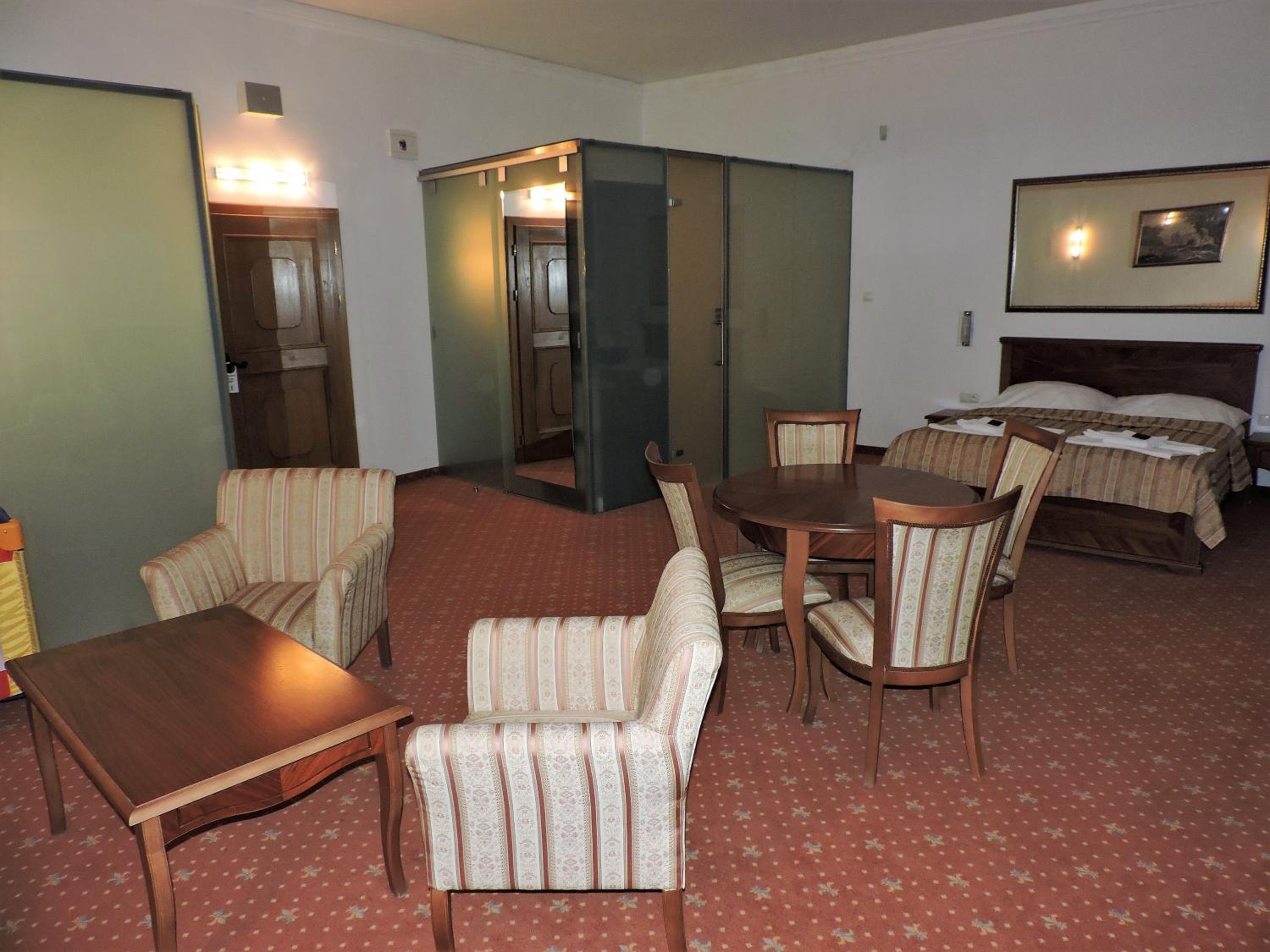 Indulge in a delicious breakfast served daily in the hotel's restaurant. Enjoy dining indoors or on the sun terrace overlooking the beautiful gardens. Explore an exposition of antiques in the castle's classicist wing, or venture to the nearby Bison park for cycling and hunting adventures.