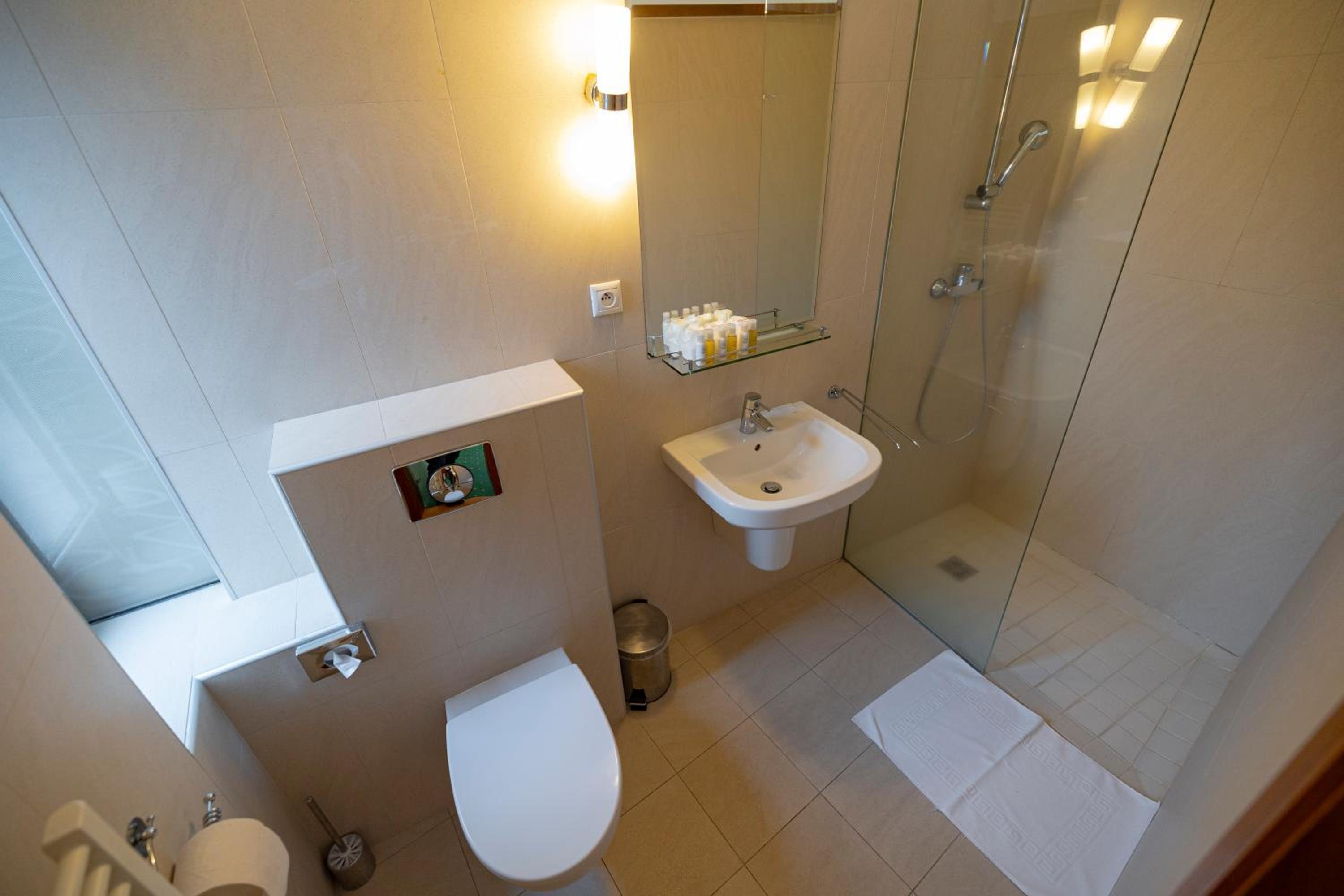 Tiež umiestnenie toalety a kúpeľne priamo v izbe oddelené iba sklom bolo trochu neštandardné možno sa tak nehodí k štýlu izby