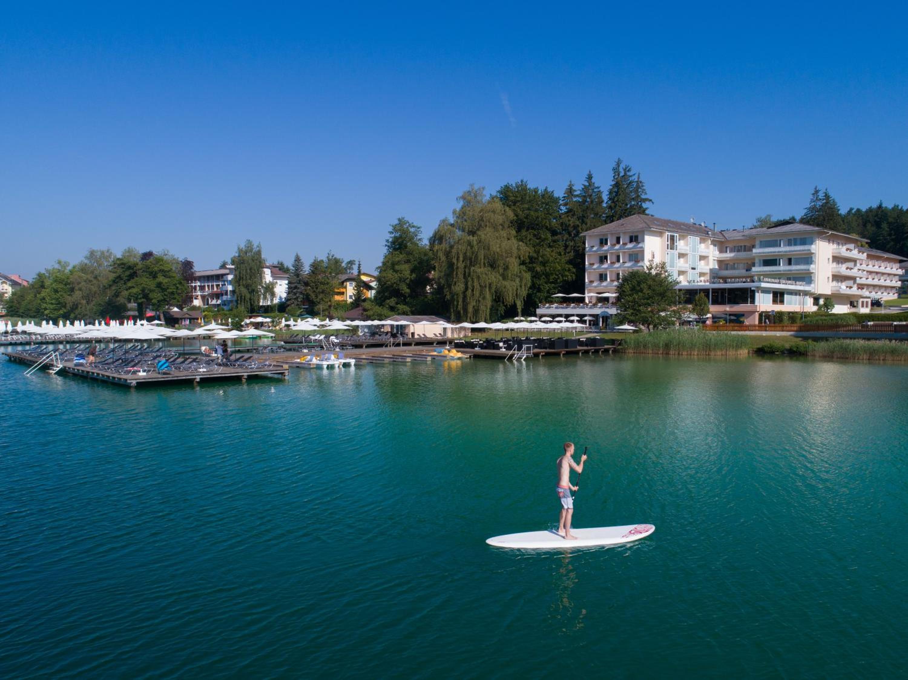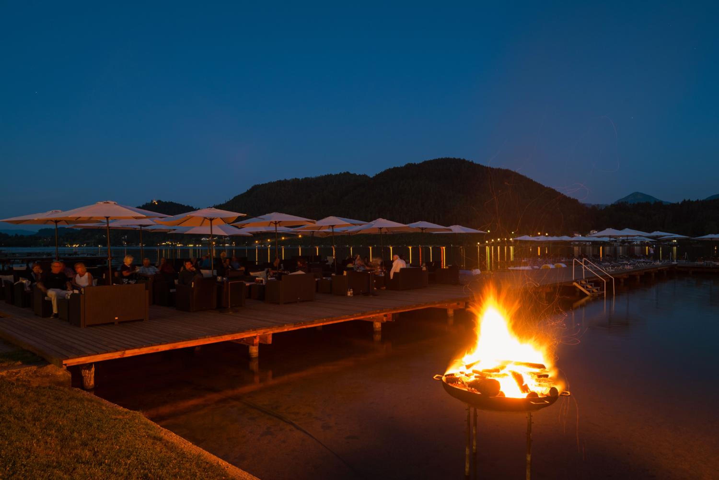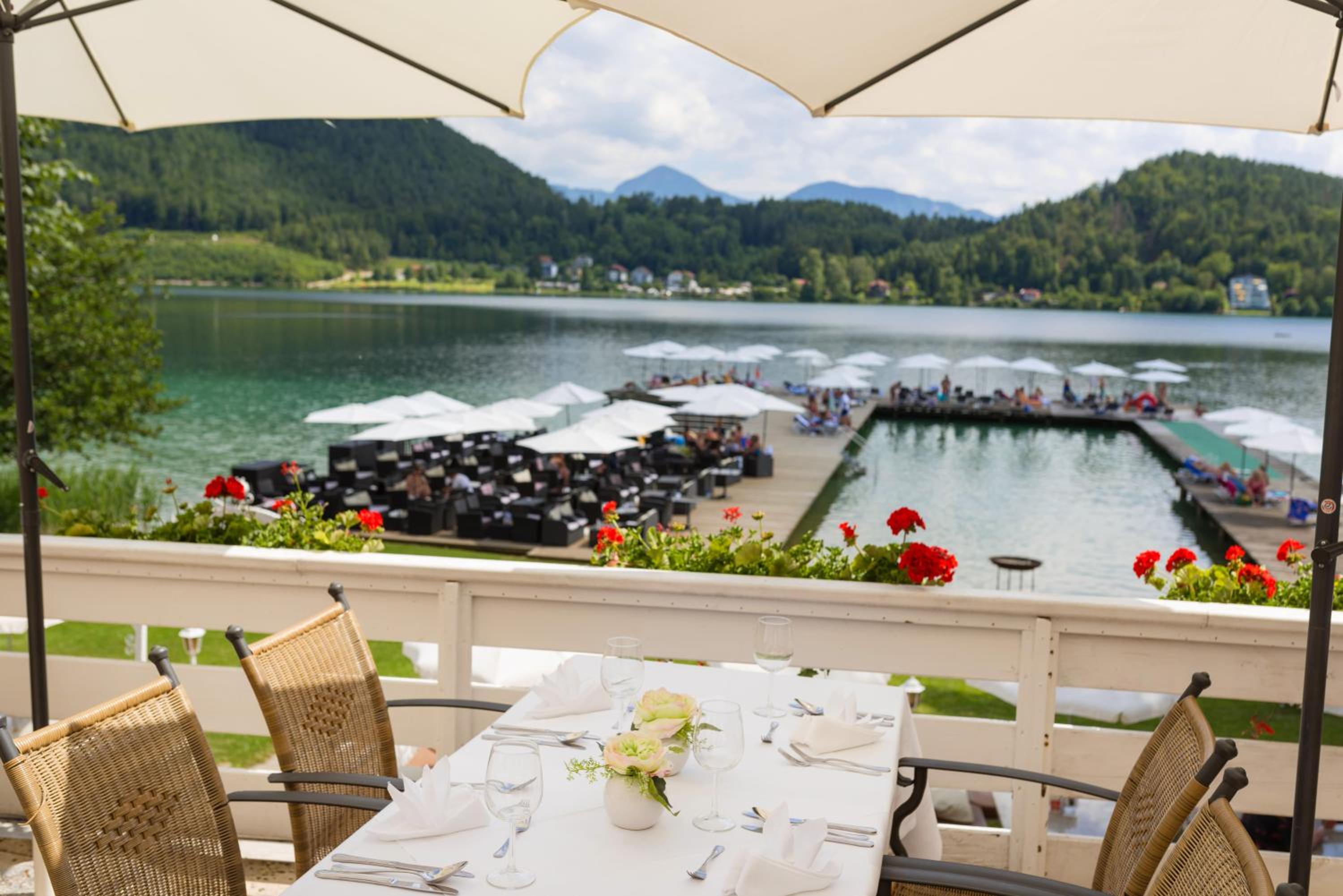 Traumhafte Lage direkt am See, jeden Abend tolle Livemusik, gemütliche Sitzmöglichkeit am Steg mit Bedienung, sehr freundliches Personal, Hundefreunliches Hotel