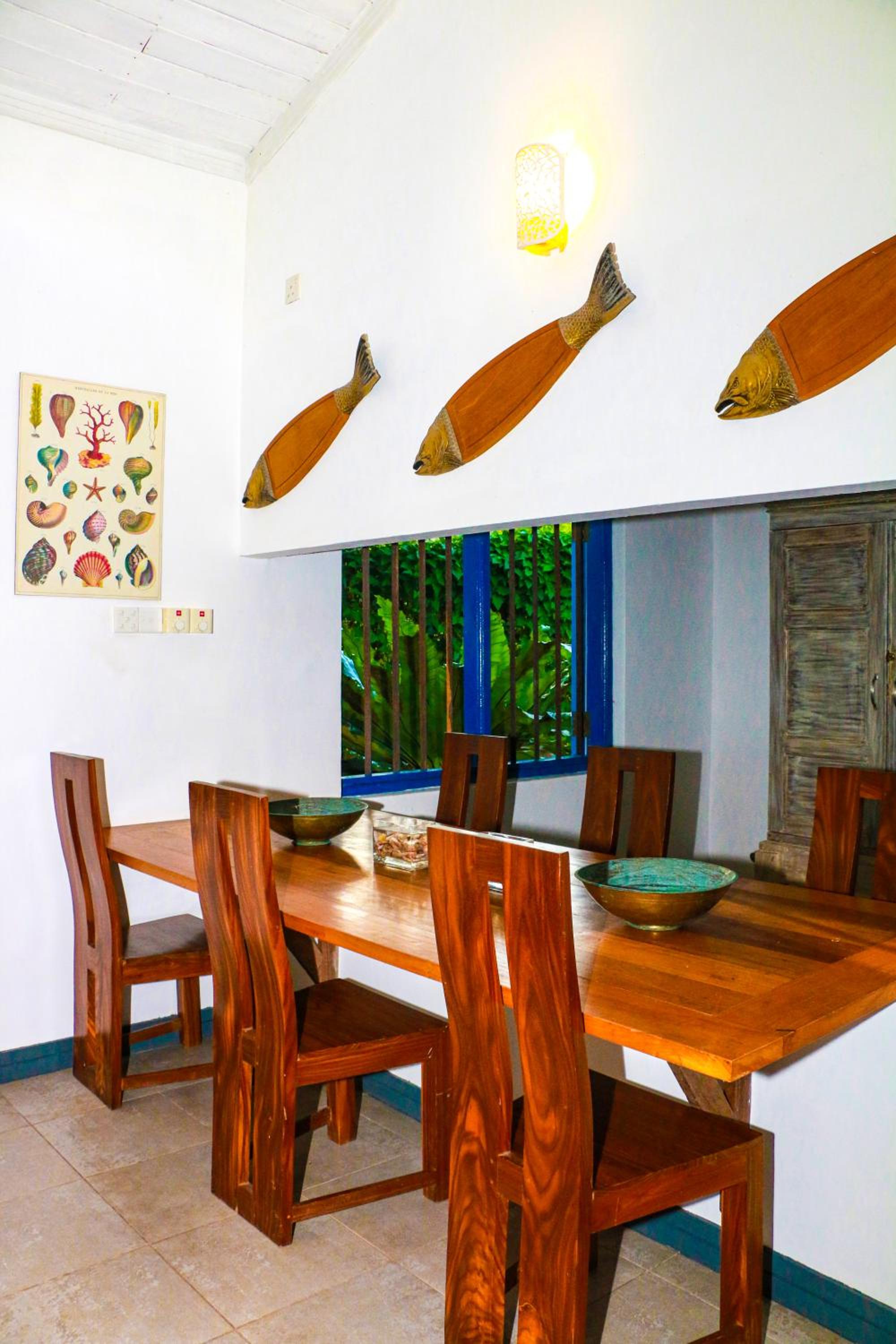 The fantastic location on Mawella beach. My room opened on the pool and you could hear the waves. The staff were all so kind friendly and accommodating. The food we had was beautiful the fish dinner and both breakfasts. We really appreciated the Sri Lankan breakfast. Thanks to Ashan for the fantastic cocktails. They made our day of relaxation so much better. Rooms were very clean and the A/C was great. Beautiful beach to walk on with a few more options for food and drinks.