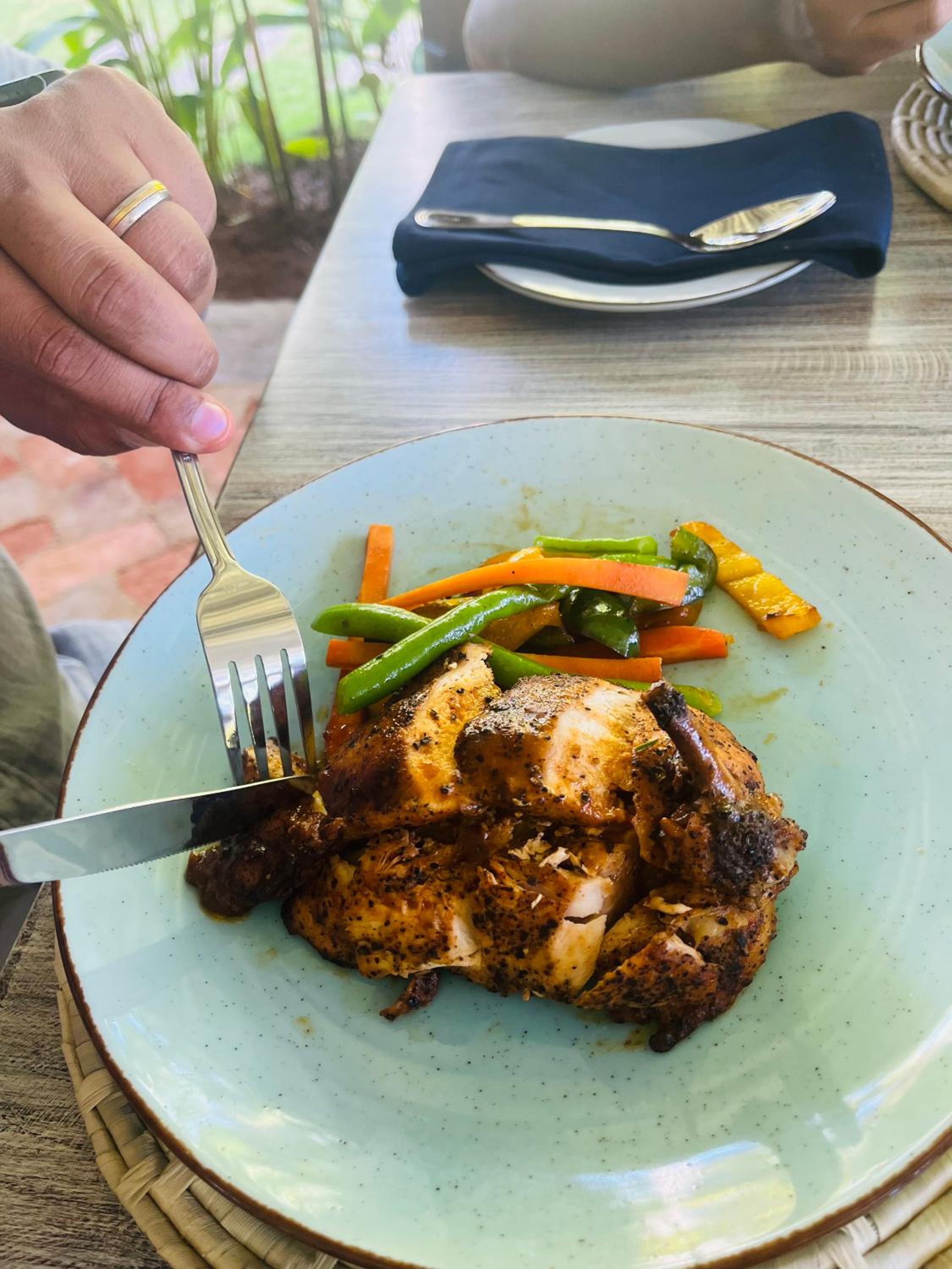 Er is her en der wat achterstallig onderhoud (geen hele grote zaken, maar bijvoorbeeld het koelkastje op onze kamer deed het niet, er was een kledingkast, maar slechts 1 hangertje, bij het opendoen van de gordijnen om van het uitzicht te genieten viel de gordijnrailing eraf (wat overigens gemaakt werd), de eigenaar is ermee bezig en zegt open te staan voor feedback als je tips hebt. De menukaart was toen wij er waren heel beperkt en nogal prijzig, waardoor we op 1 Sri Lankaanse curry voor lunch toen we aankwamen na, verder niets meer gegeten hebben daar (het bleek 3 x zo duur dan alle andere verse curries die we tijdens onze reis gegeten hadden, dat viel ons wat tegen). Toen wij er waren werden er geen frisdranken verkocht in het restaurant, wat onze pubers jammer vonden. Wel vers gemaakte icetea. Wellicht verandert de menukaart nog, de eigenaar was nog volop bezig aanpassingen te maken bij de accommodatie.