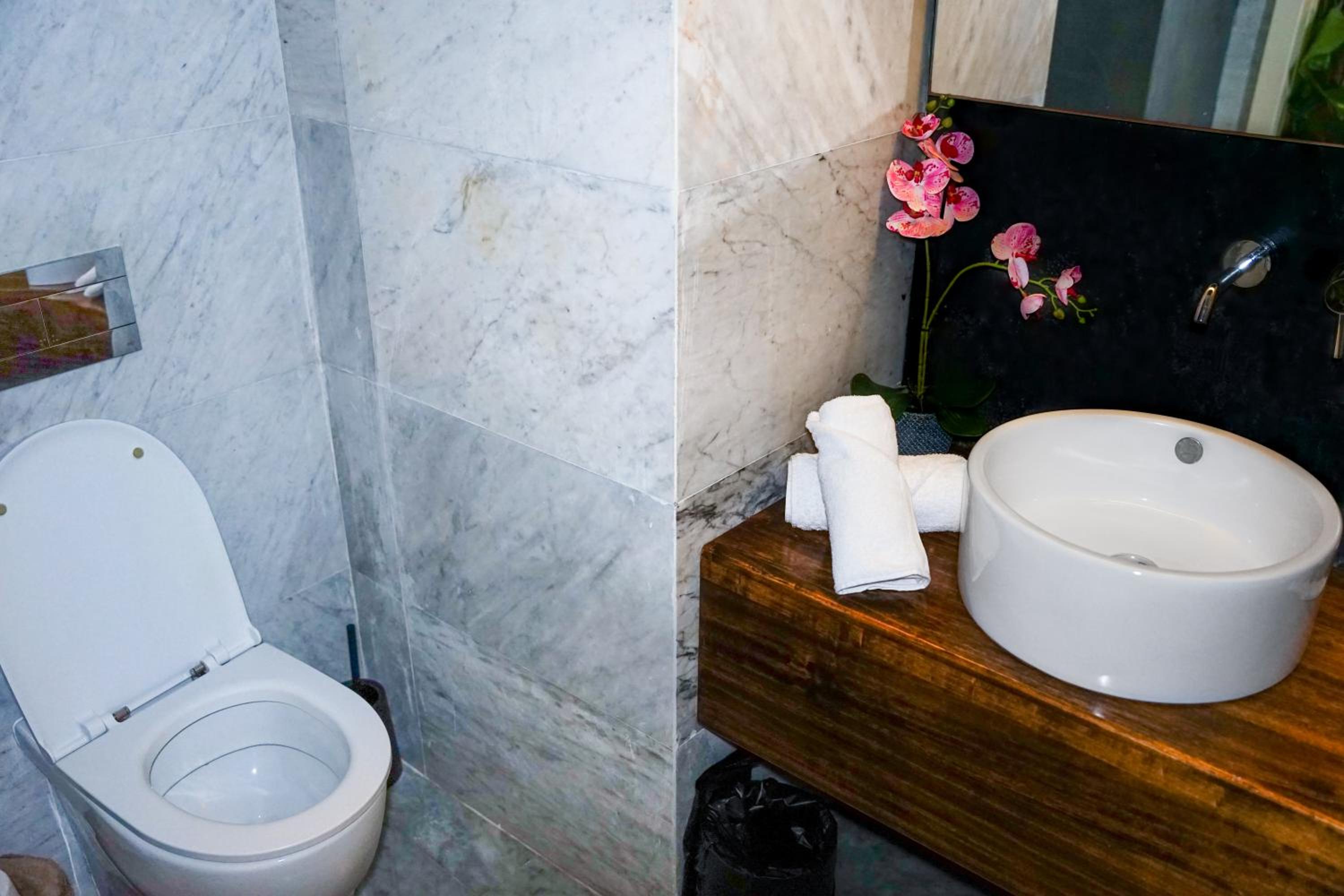 The bathroom floor was full of watter, I text, To let them know. But not reply, I went to reception to get towels to put in the floor. JUST A GOST PLACE