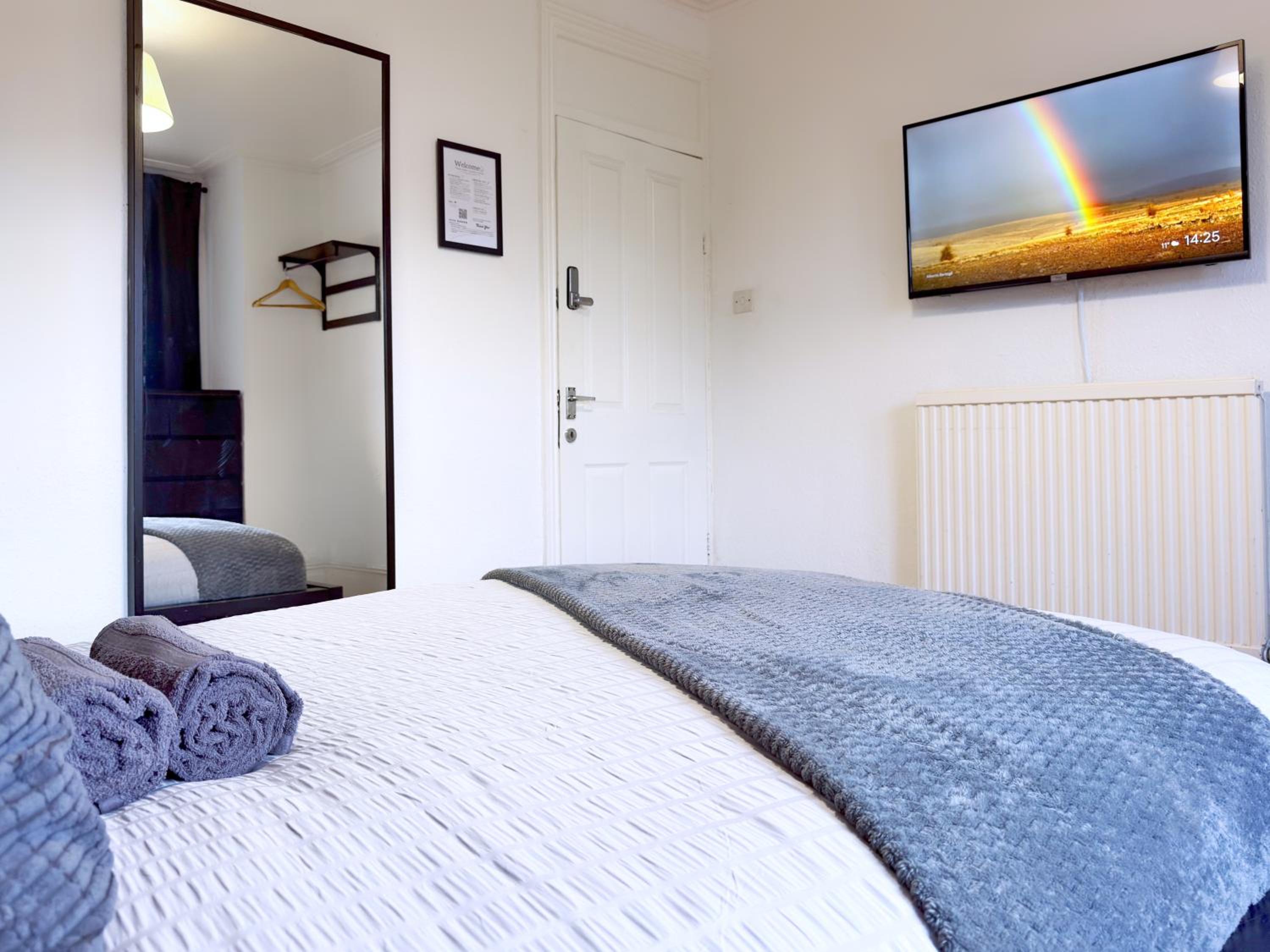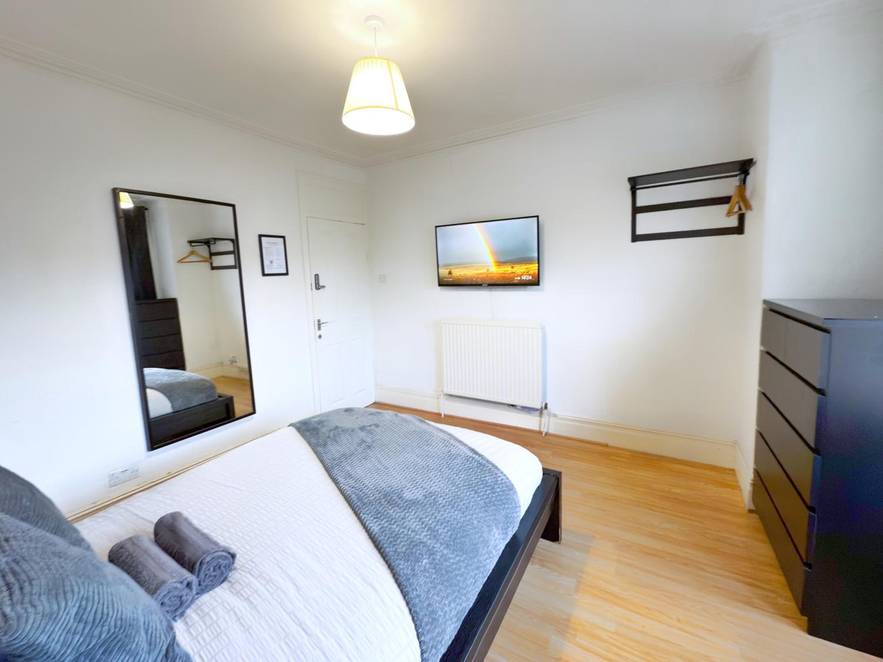 Lovely warm room with a very big and comfortable bed. A huge TV, lots of draw space for your clothes. It was clean, safe and quiet. There were 2 other rooms on the same floor and even when both were occupied, it was still very quiet. A clean shared bathroom with a large shower. A very tidy, modern and well equipped shared kitchen. There was a problem with the internet throughout the whole building on one of the days and the host was very friendly and quick to respond to the matter. Not far from 2 very large supermarkets. And the imperial war museum was within walking distance.