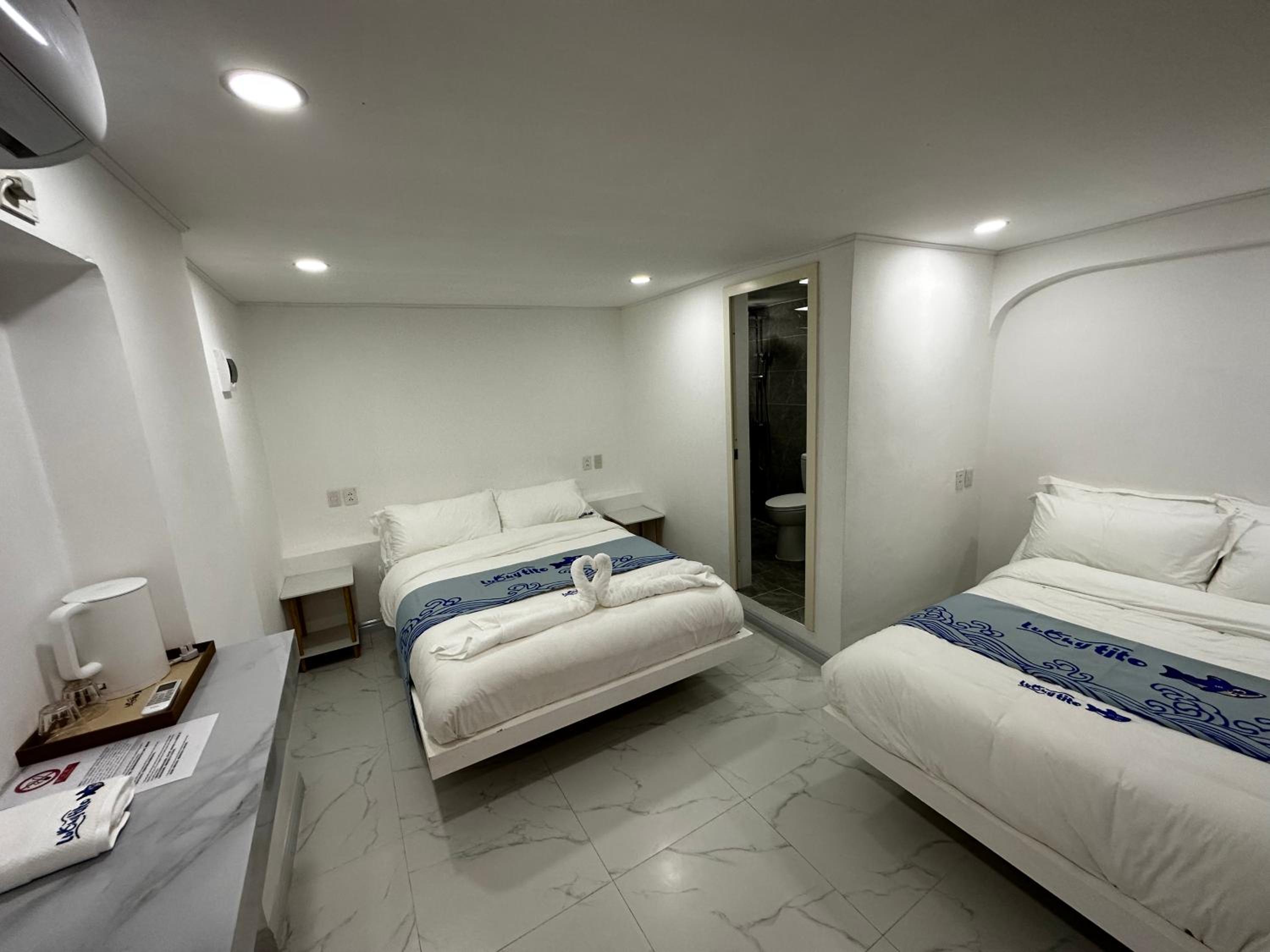 The room was spacious enough for two people. Beds, linens, and pillows were clean and very comfortable. The bathroom was neat and came with shampoo, conditioner, shower gel, and fresh towels.