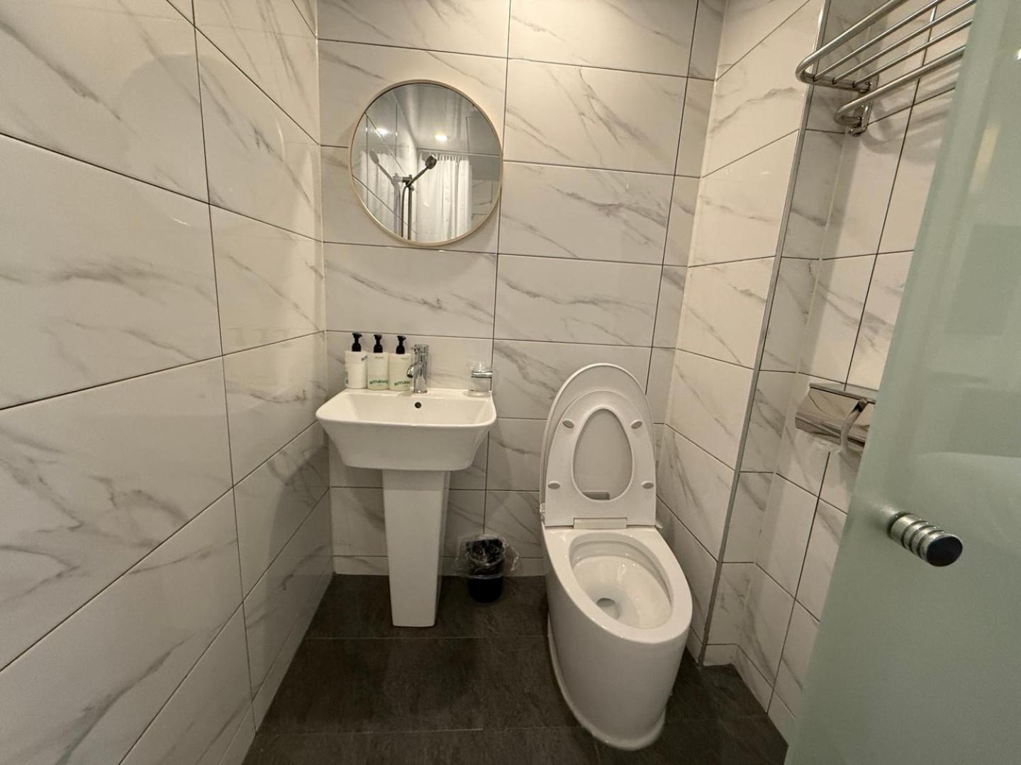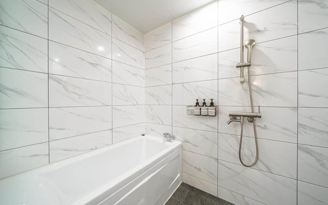 新村駅から近く、オリーブヤングやダイソーも近くにあり便利。あと湯船がある。