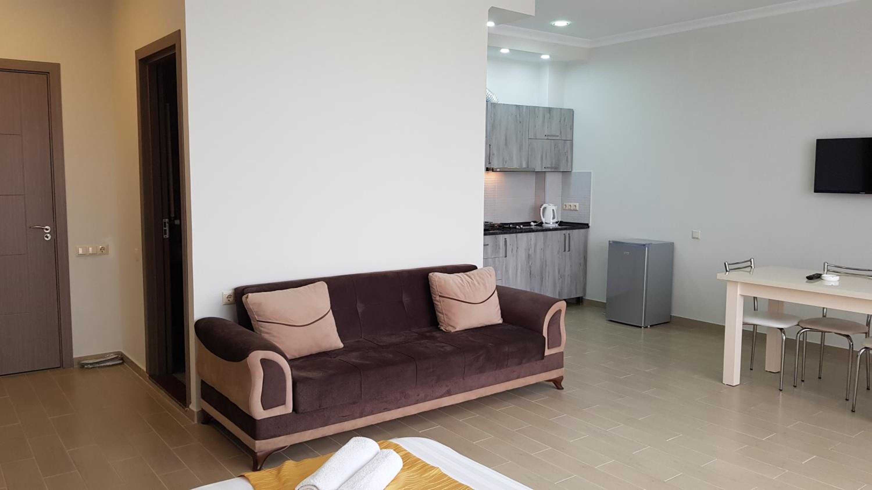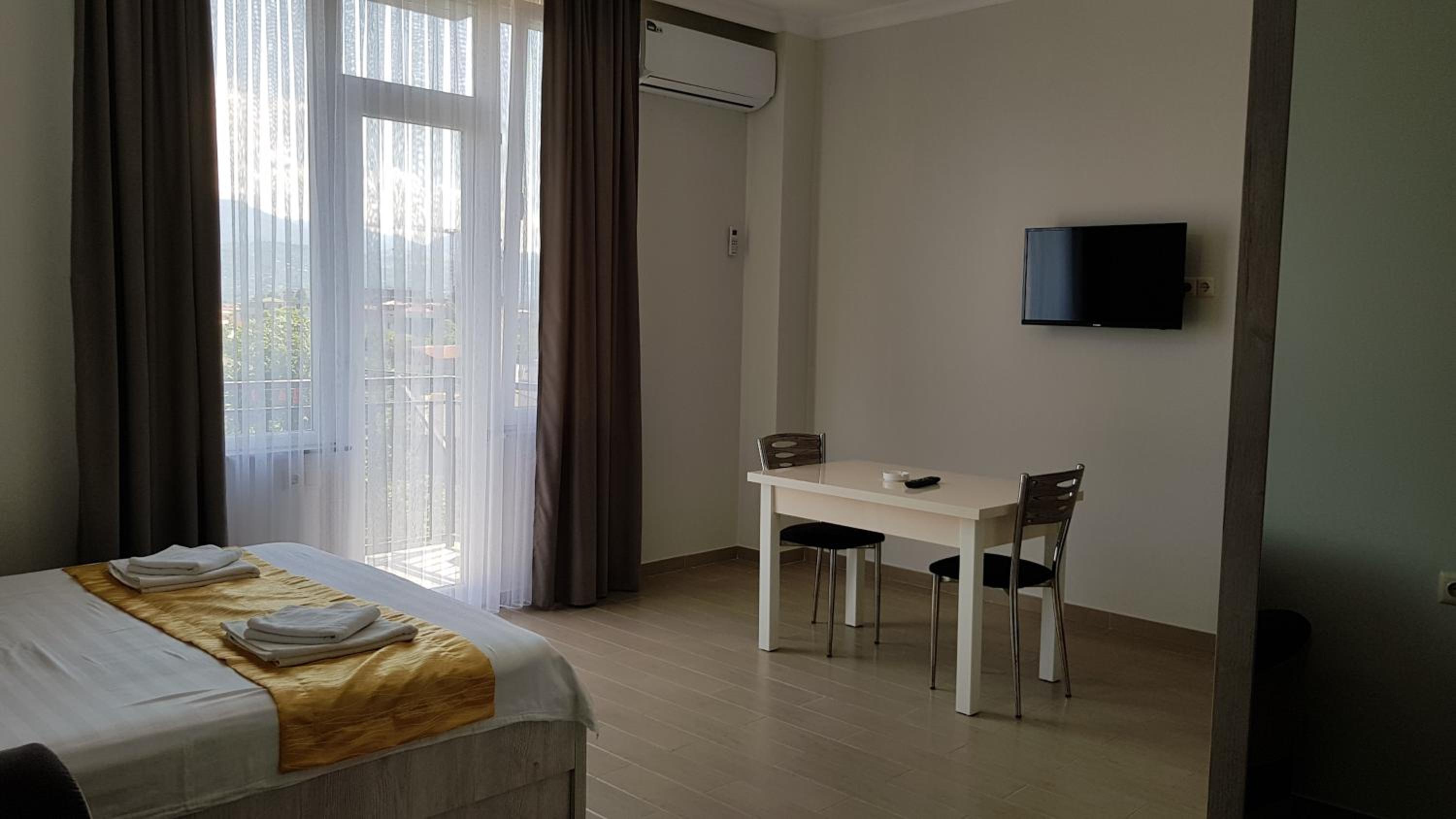 Апартаменты с балконом, очень чисто. тихое место. Есть рестораны поблизости.