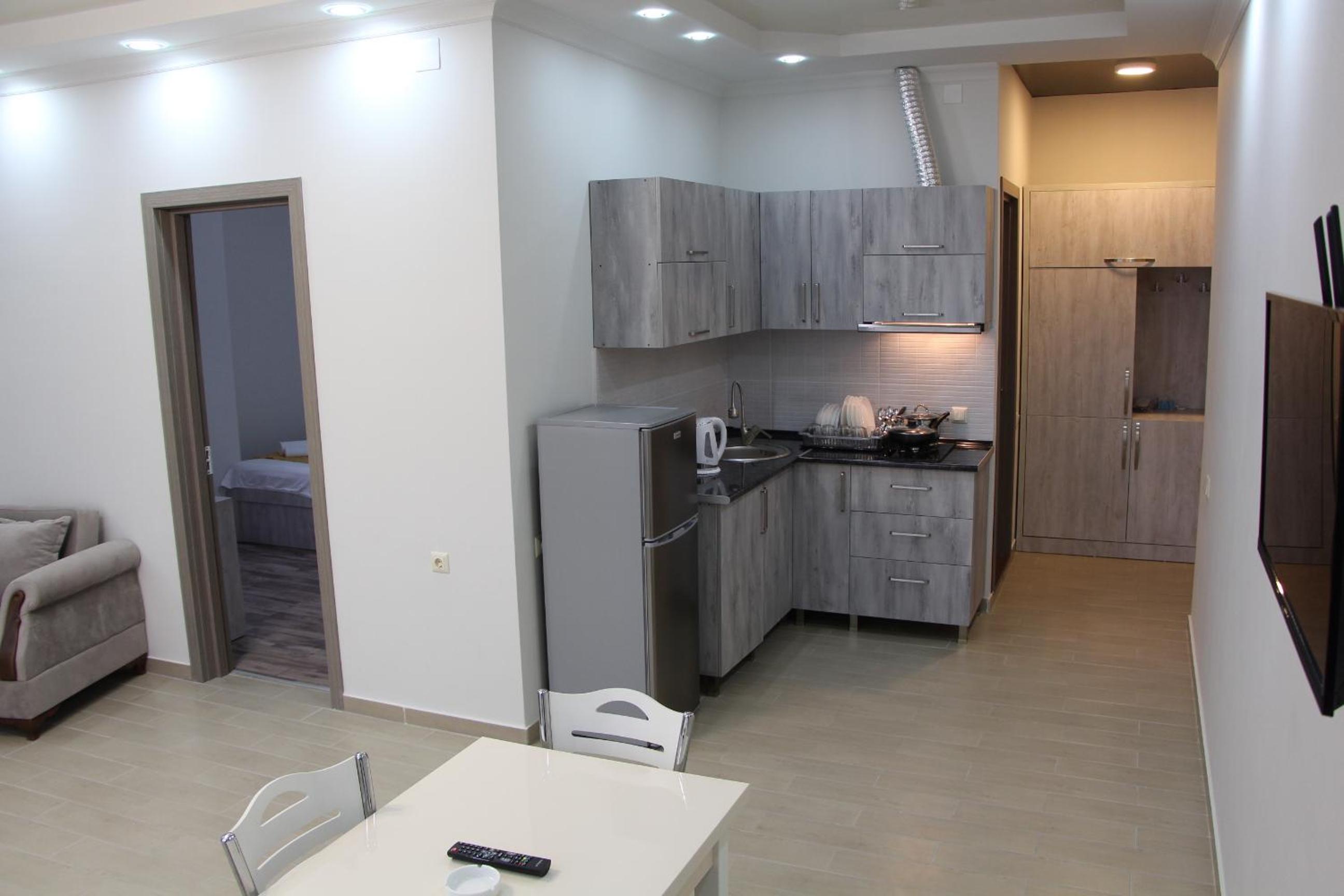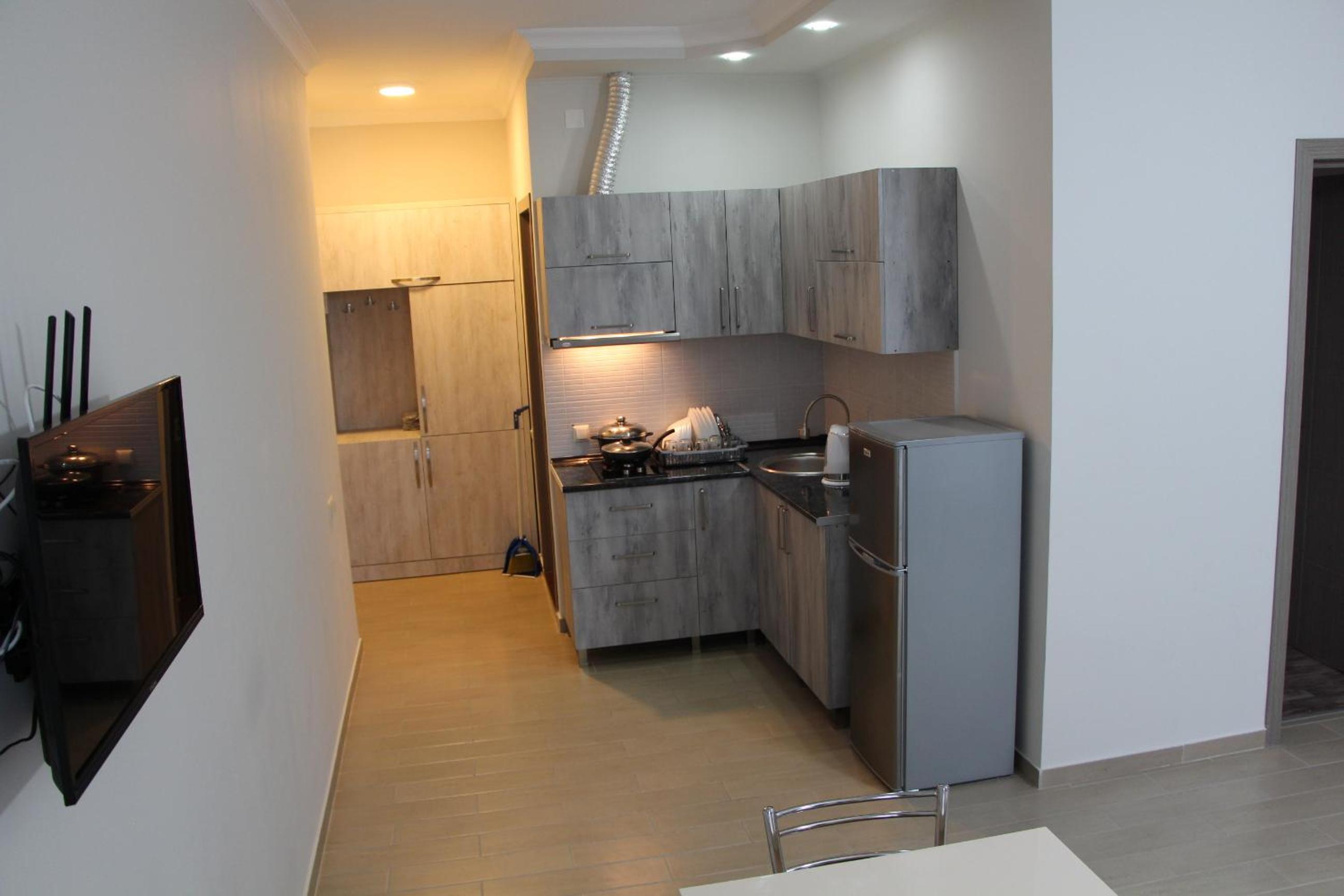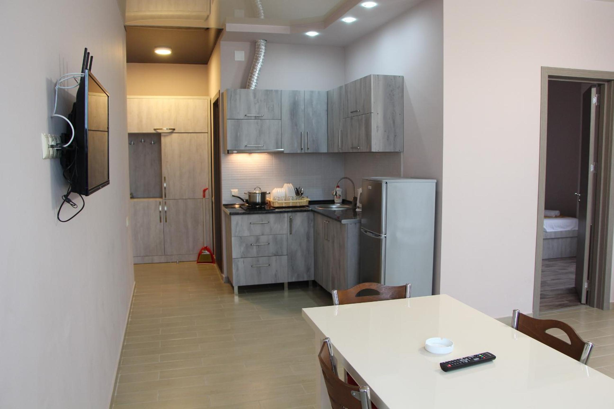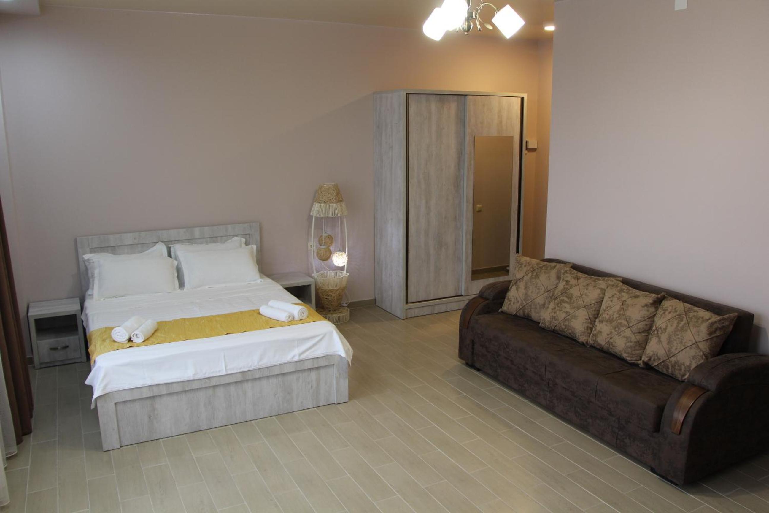 Апартаменты чистые, достаточно уютные, хорошо расположены в плане инфраструктуры, во дворе есть фонтанчик с питьевой водой, большая парковка. Есть рабочий стол и отличный вайфай, что очень удобно для тех, кто путешествует не в отпуске