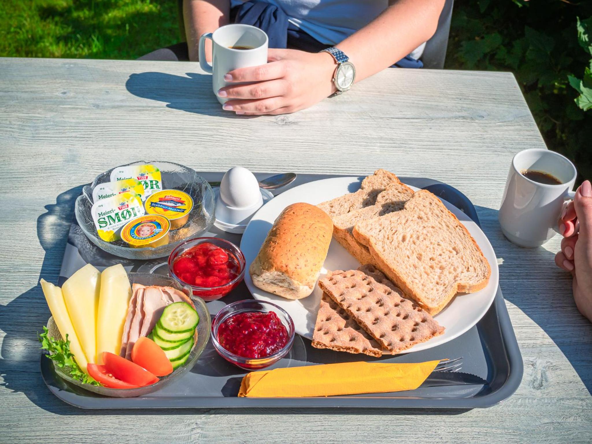 mens vi pakkede ud, anrettede hun hvad hun synes vi skulle have til morgenmad, med beskeden om at der mælk, juice, youghurt på anden sal. Dette satte hun i køleskbet på værelset om aftenen.