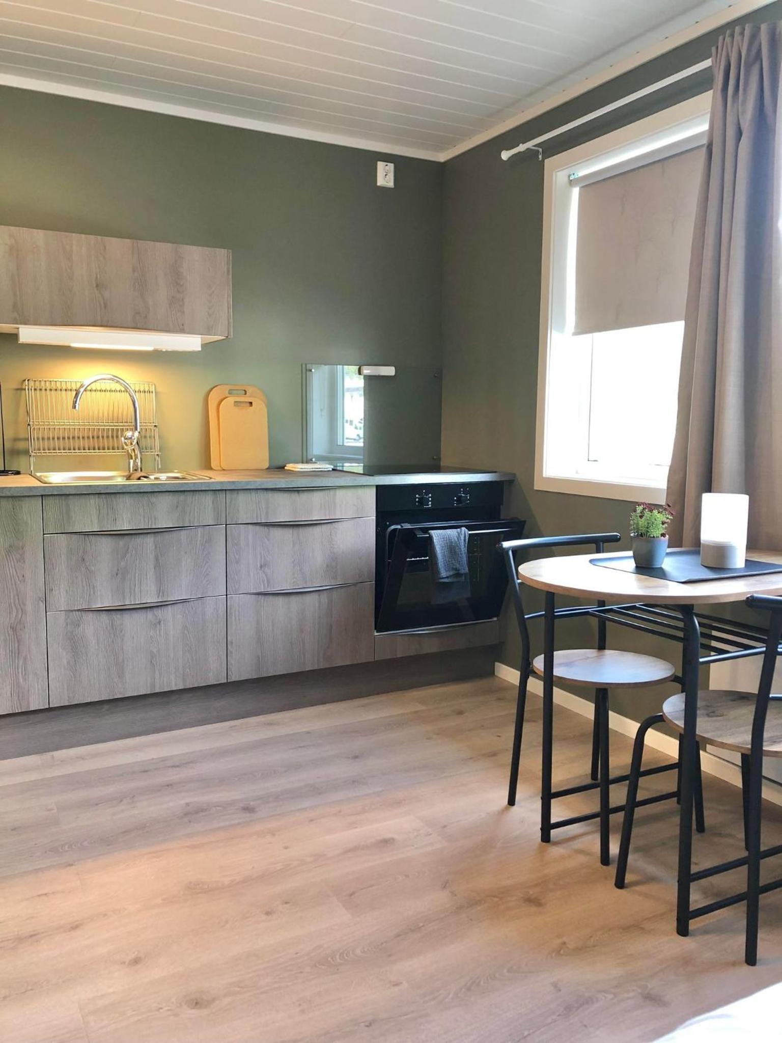 Överraskande utmärkt litet hotell. Läget verkligen fint på landsbygden i ett campingområde. Man kunde både tanka och ladda bilen. Fanns tillgång till fullt utrustad kök med allt du behöver för att laga och förvara mat. Möjlighet att tvätta kläder. Äventyrspark i direkt anslutning med tex höghöjdsbana och zipline. Mycket utomhusaktiviteter som inte kostar extra tex spel, klätterställning, slackline m.m.