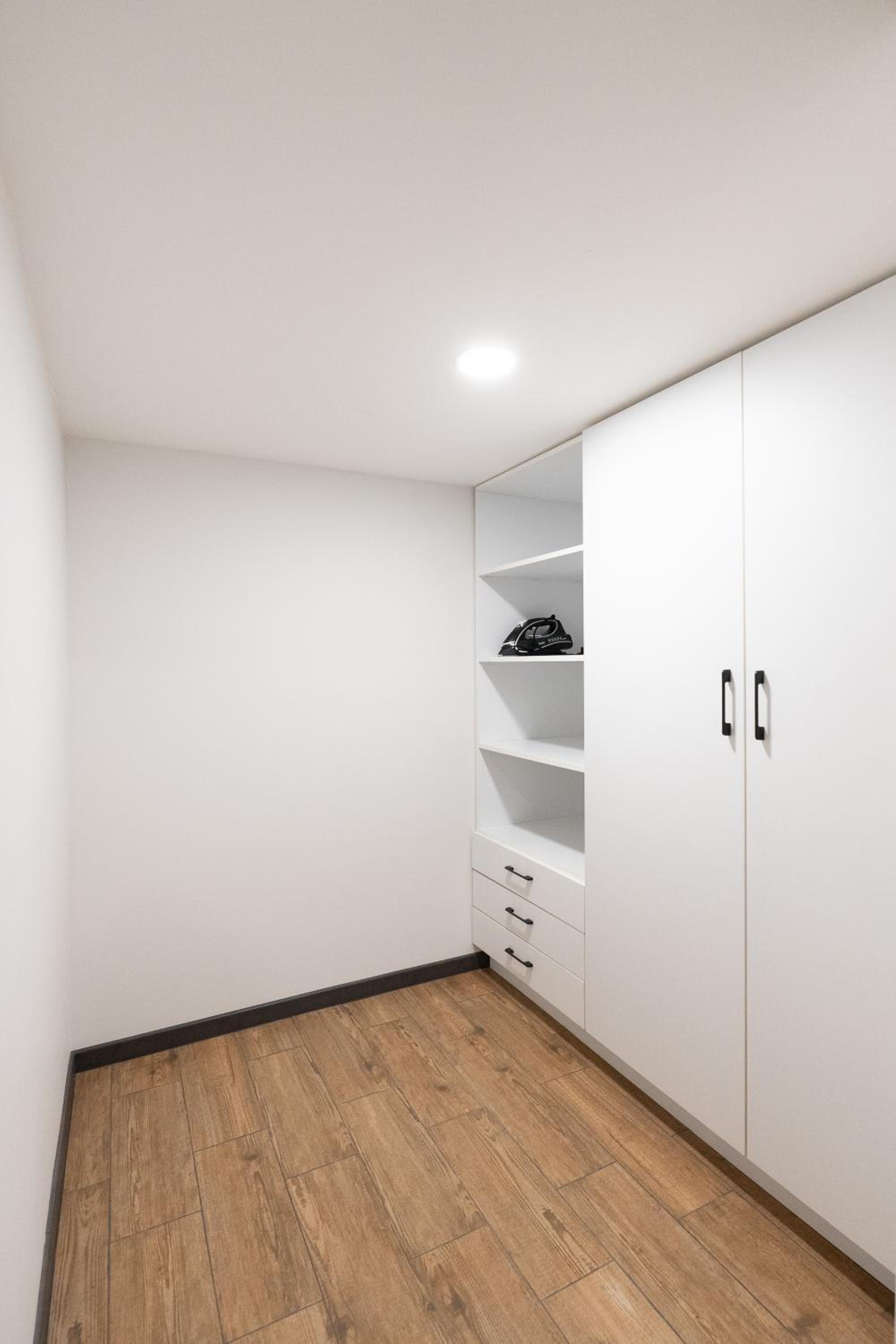 The wardrobe is barely enough for one person, so I had to store my clean clothes in the kitchen drawer, fortunately, it was new and clean.
