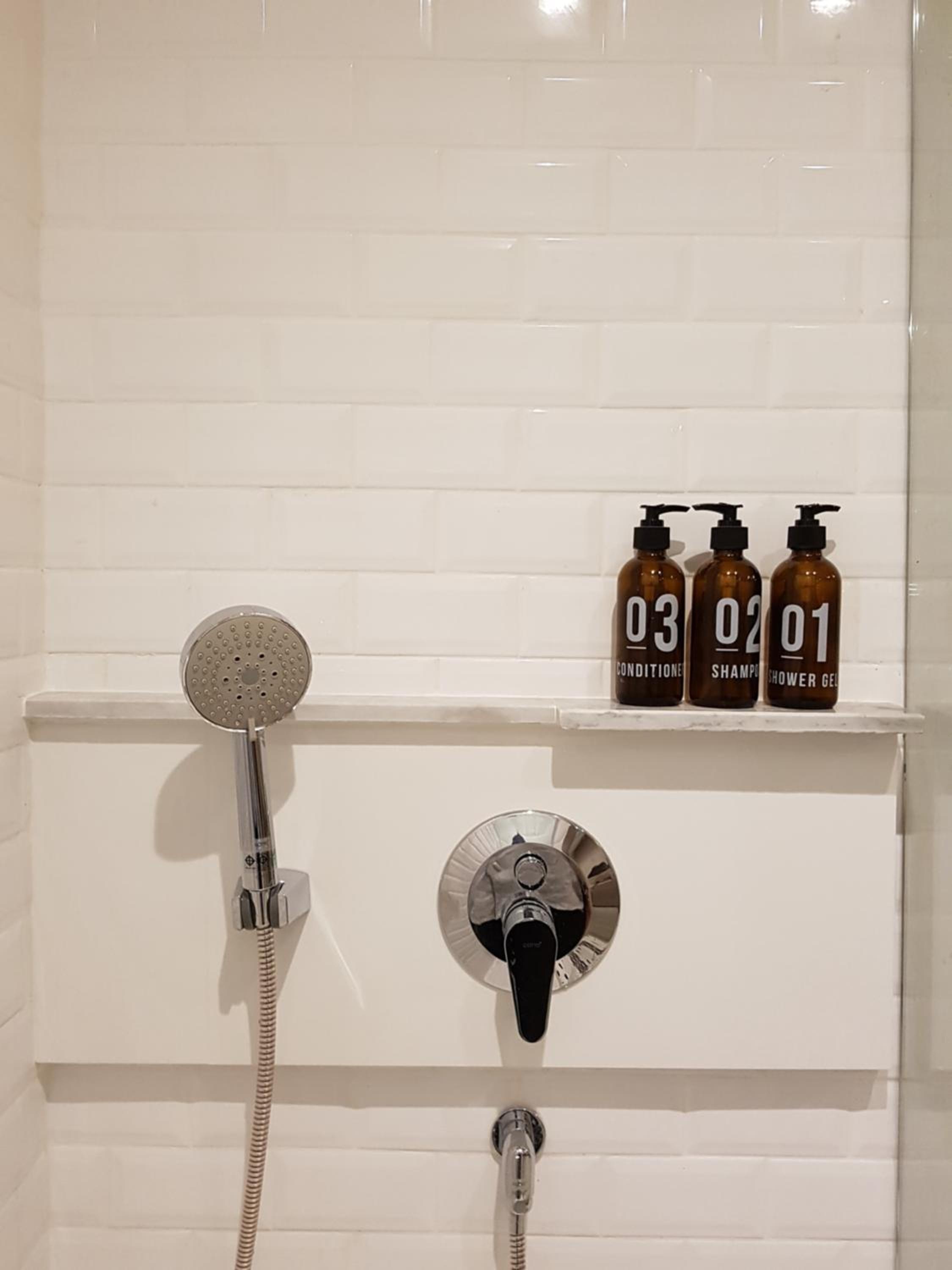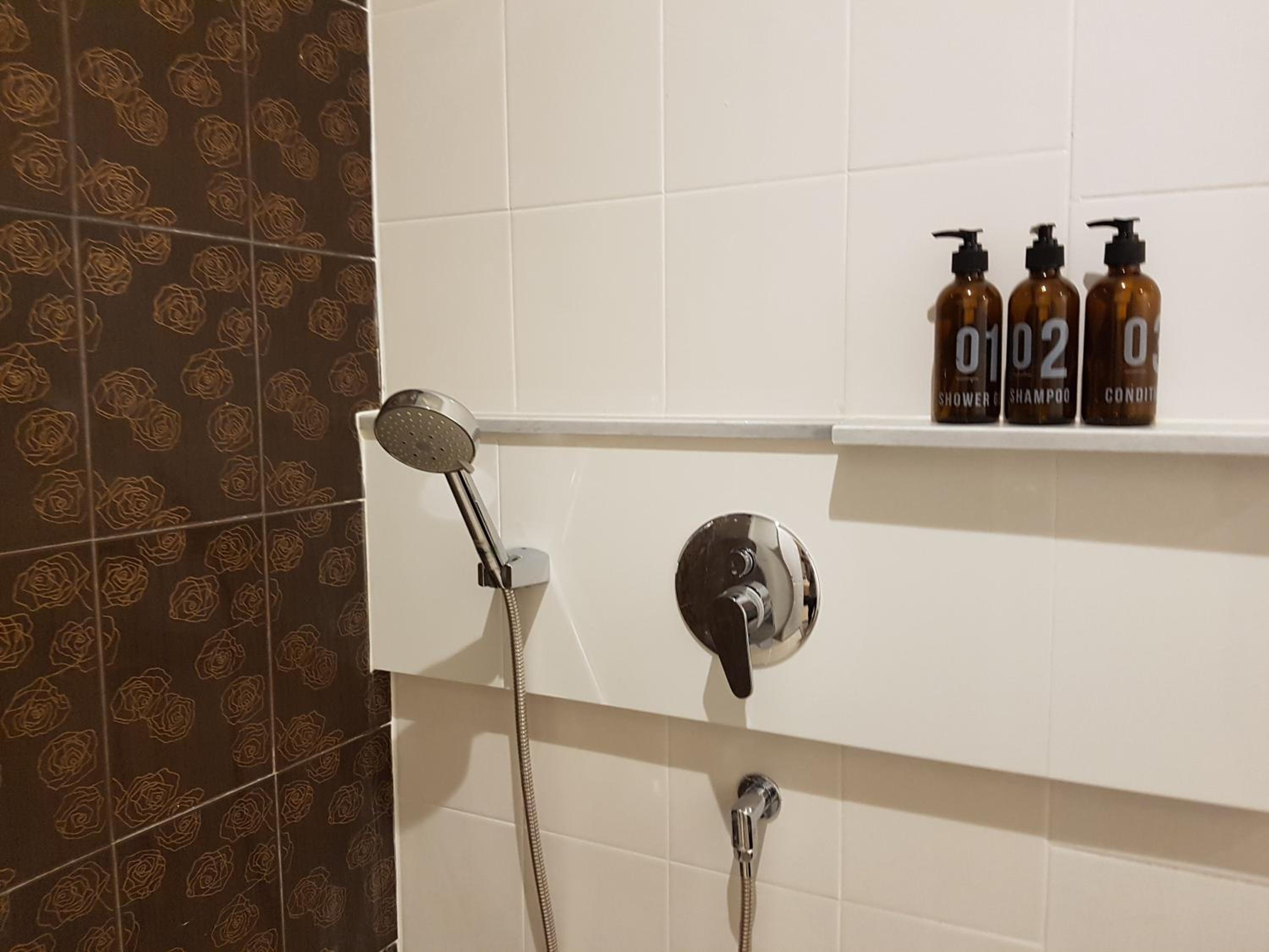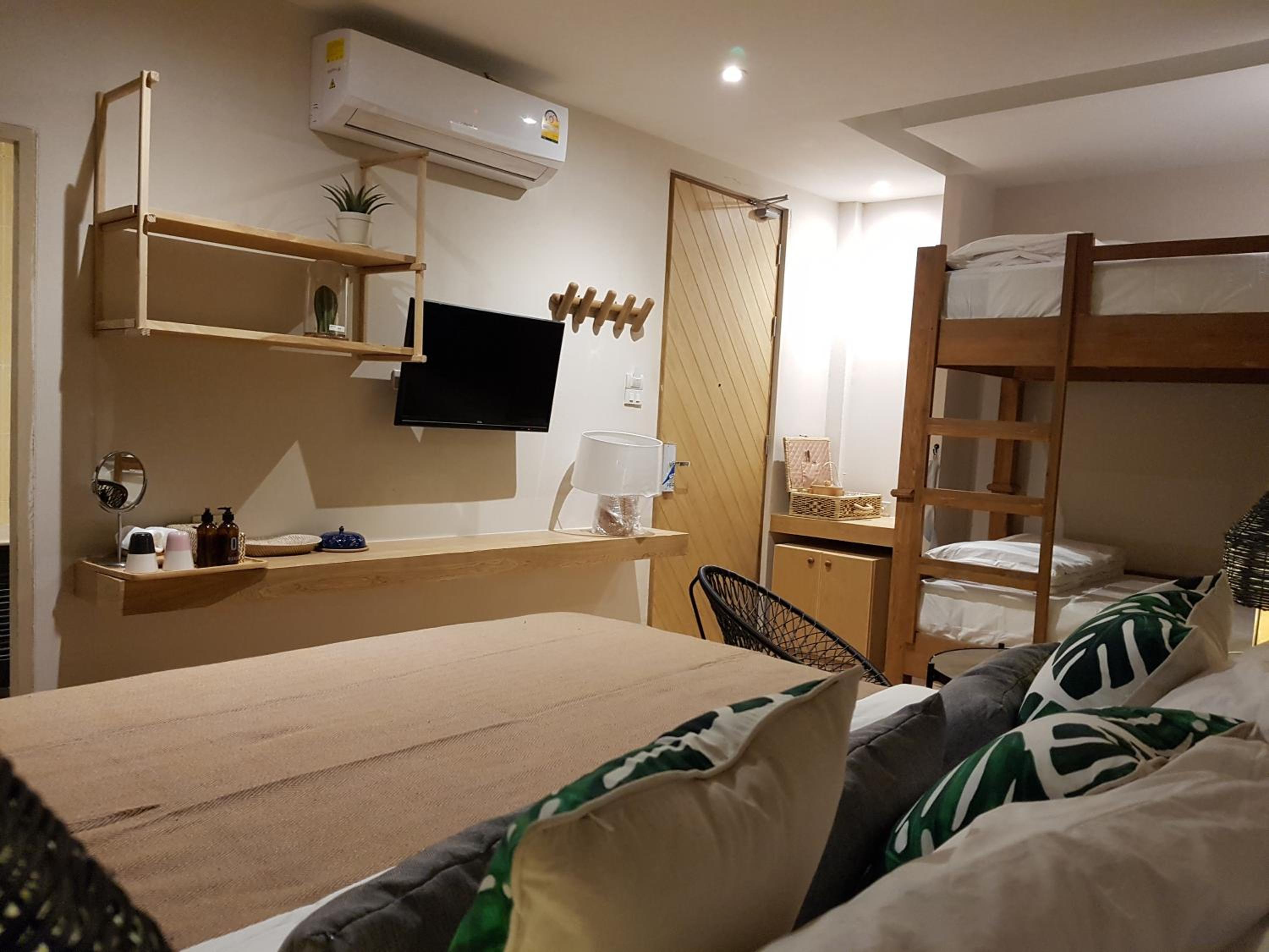 Convenient Amenities: Enjoy modern conveniences such as cable TV, a fridge stocked with complimentary bottled water, and a private bathroom with essential toiletries in every air-conditioned room.