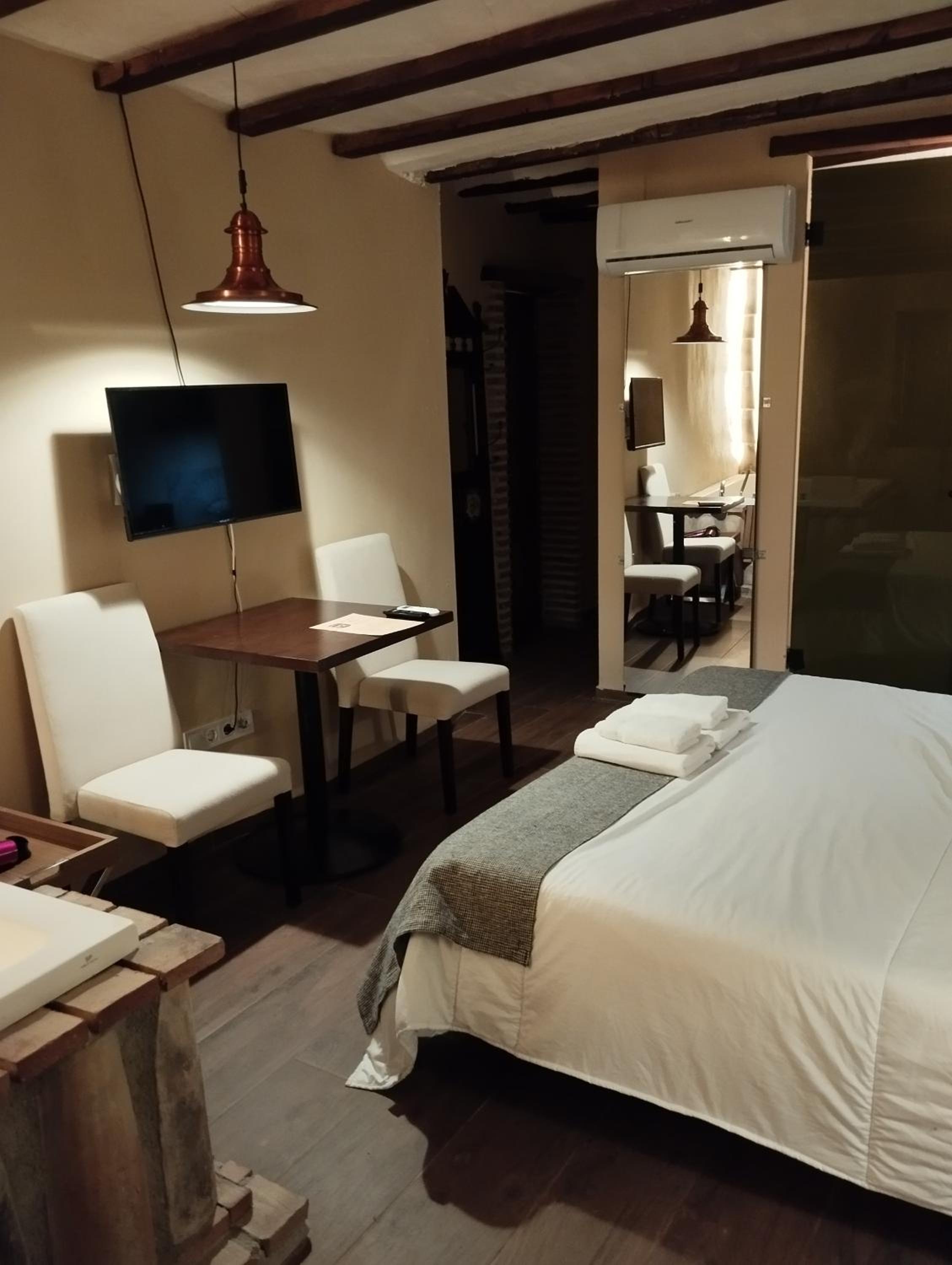 La ubicación ideal, pueblo tranquilo pero con lo necesario cerca, nevó en todas las inmediaciones y pudimos pasear con tranquilidad, el jacuzzi perfecto y la conexión a Internet también, el baño nuevo, se agradece. La atención de Jesús fue perfecta.