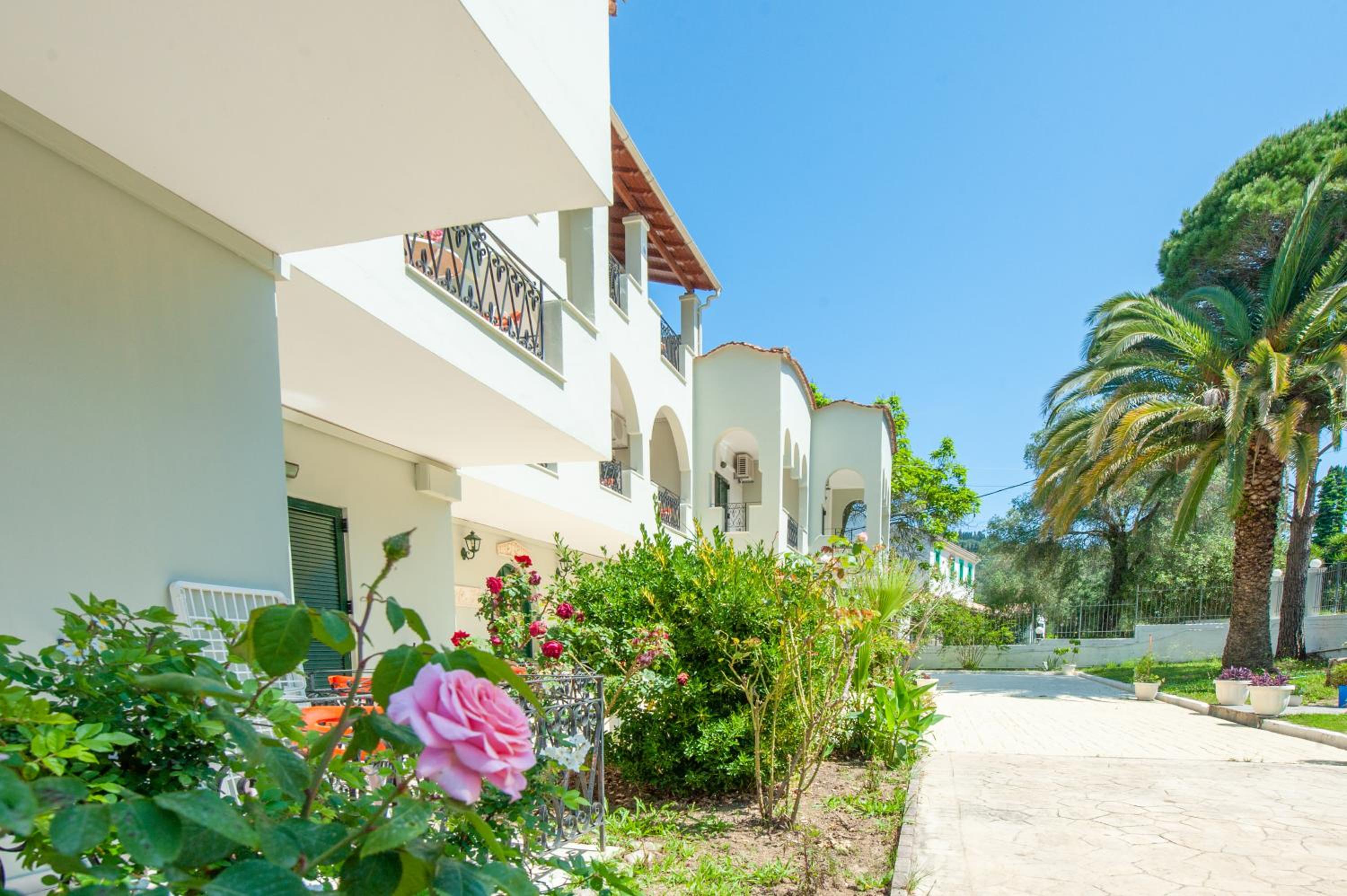 Vassilis Paradise Garden Aparthotel, nestled in Agios Georgios Pagon, offers a perfect blend of comfort and convenience. Enjoy garden views and stay connected with free WiFi in our family rooms.