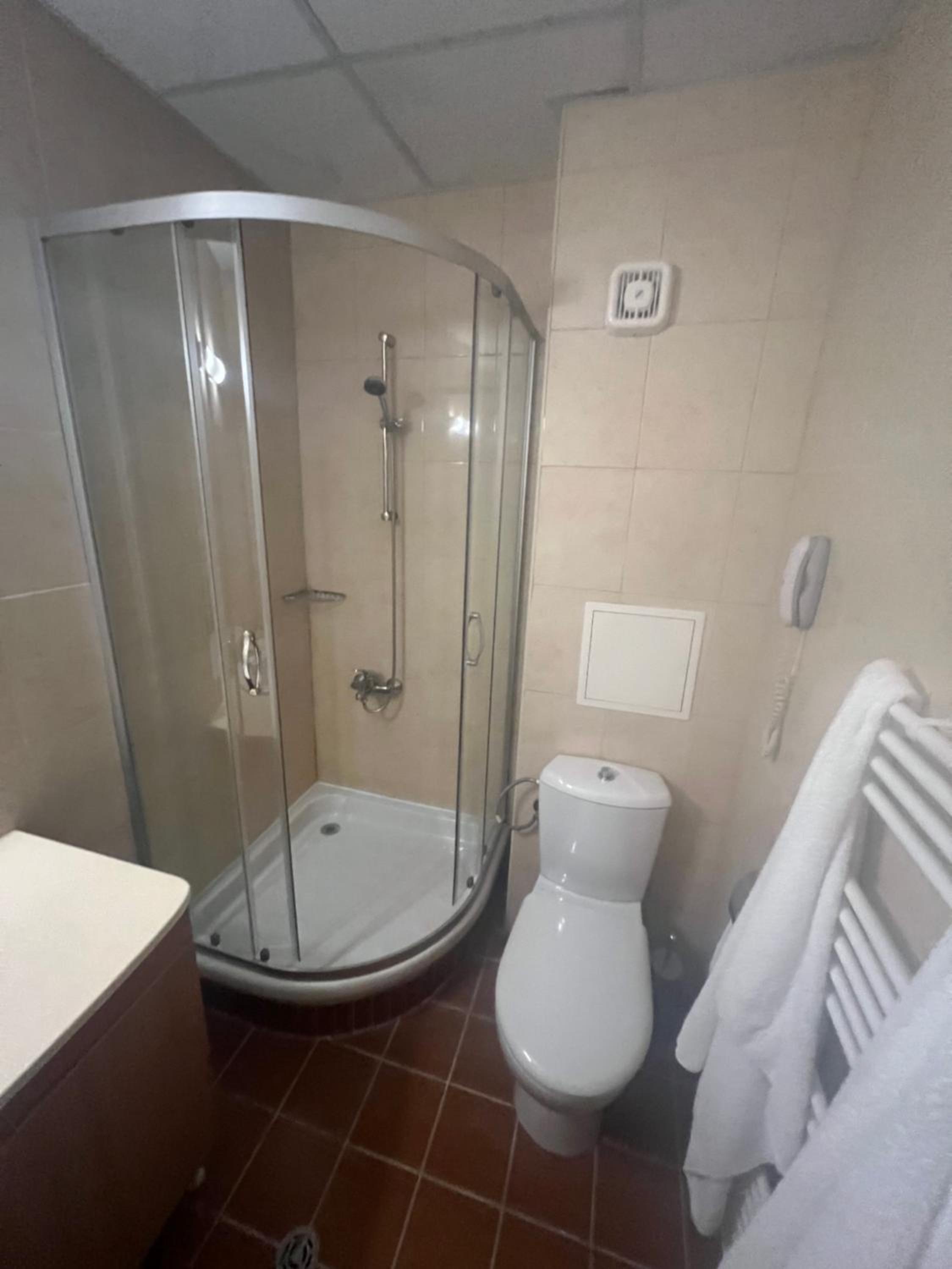 As a cherry on the cake, one of the shower glass doors was missing (see picture), combined with the drain issue, every shower posed a flooding risk to the whole bathroom.
