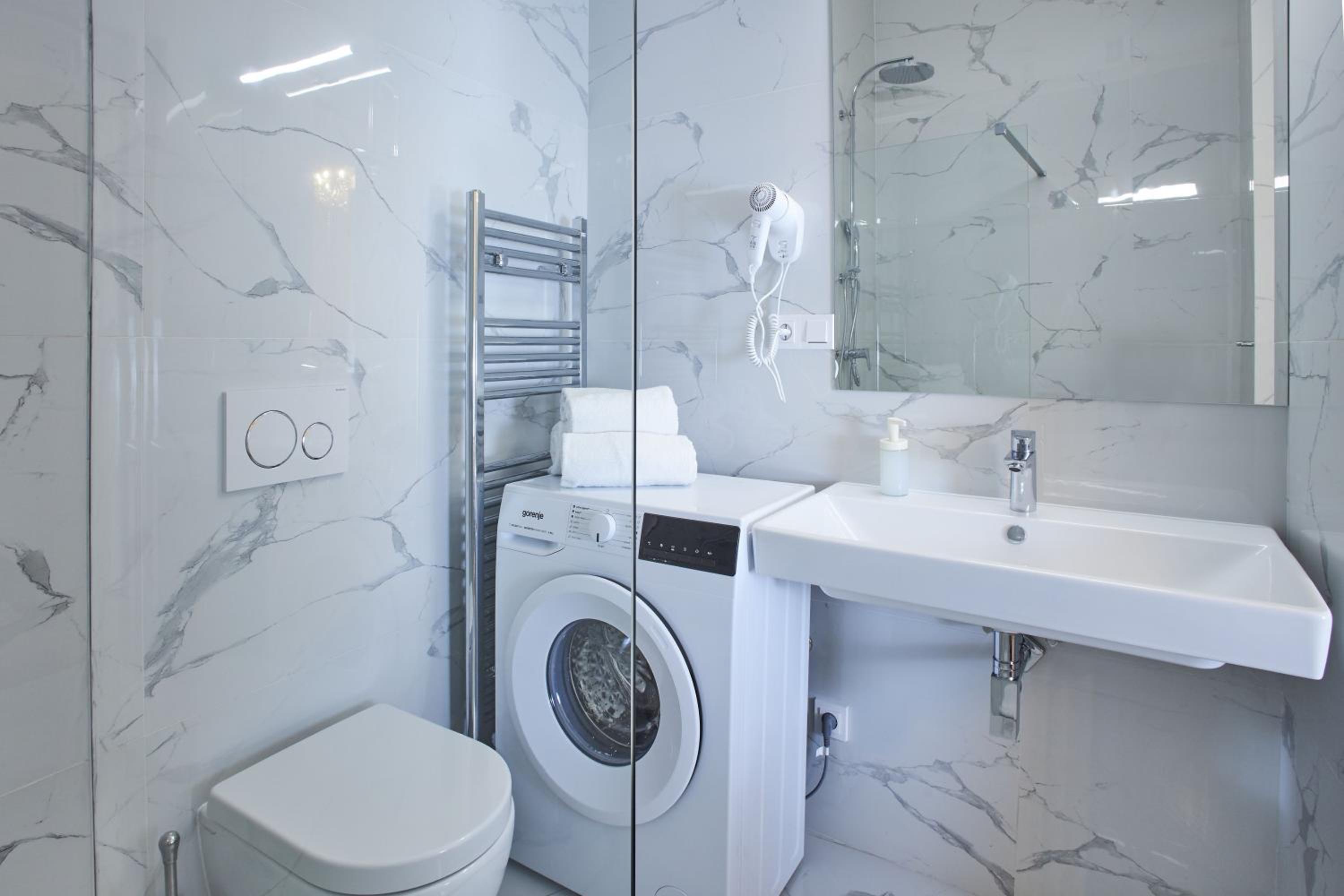 Great location. The apartment is very spacious, clean and comfortable. Good showers, comfortable beds, good heating. We will definitely book again on our next visit.