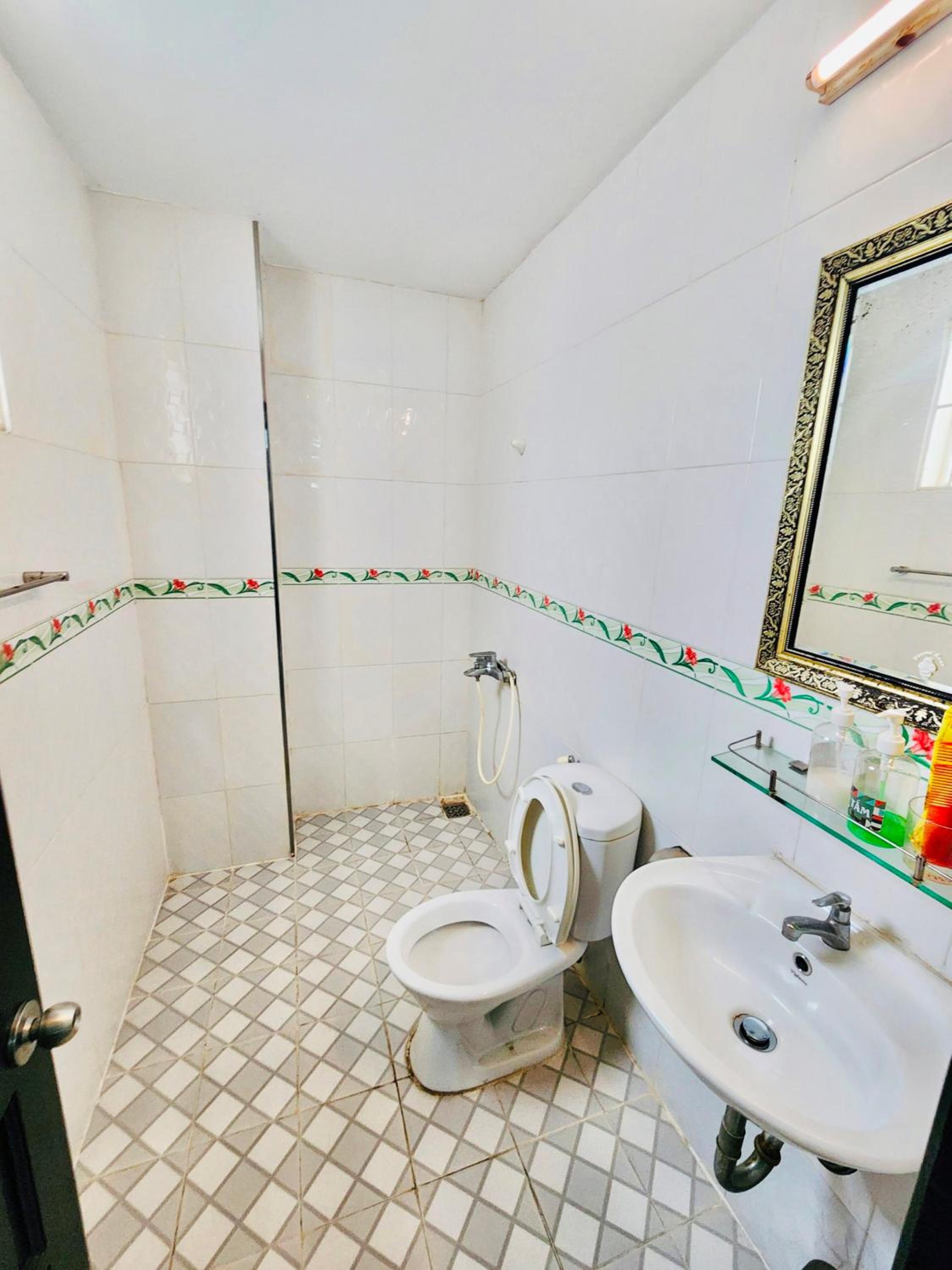 Nhà vệ sinh không có nước , thiếu dụng cụ vệ sinh