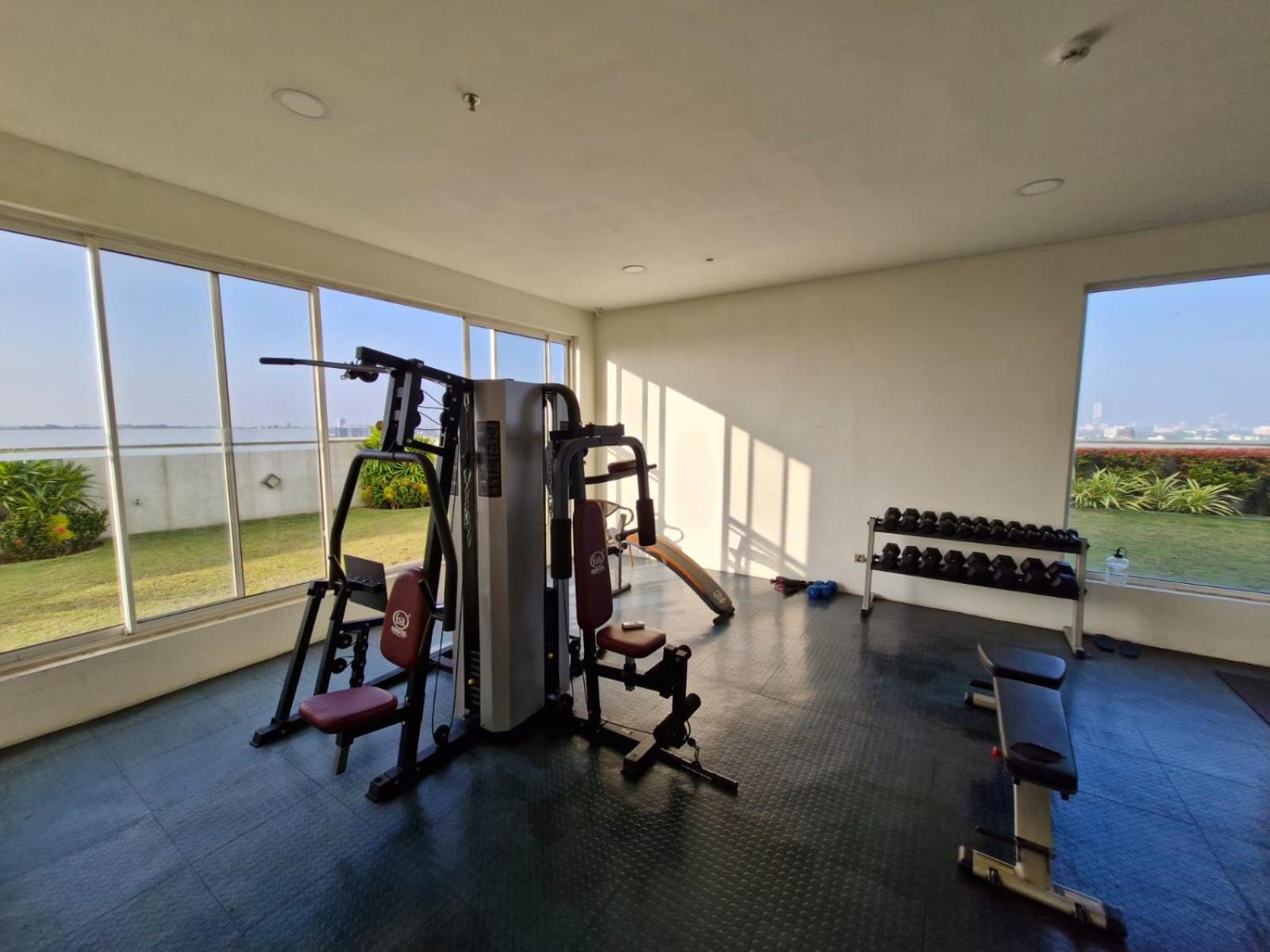 The gym and the pool on the terrace is a perfect way to relax.