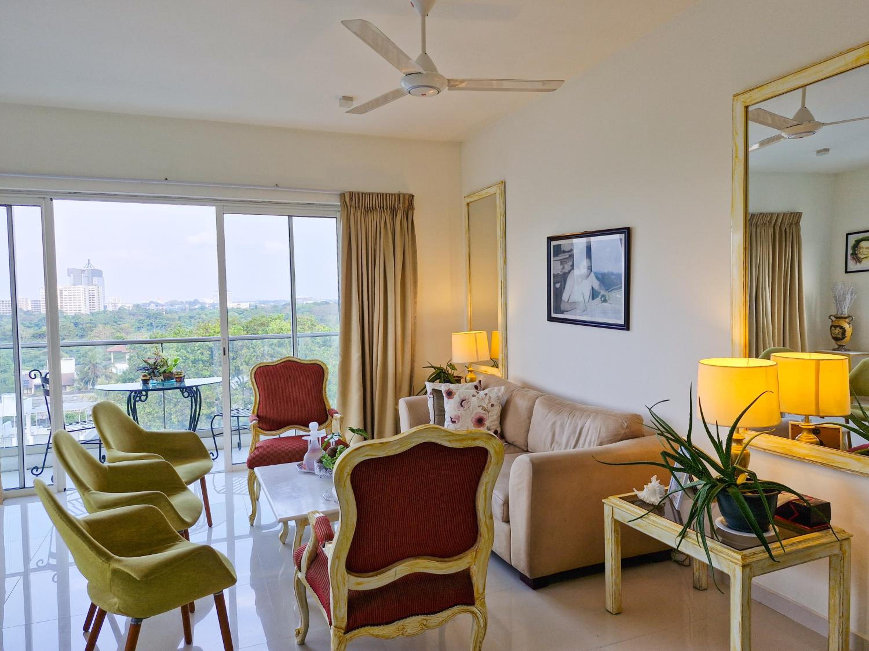 This is a wonderful homestay. You get your private room with bathroom and balcony. Kitchen and living room is shared with the owners which are very friendly and helpful. All is with nice furniture and very clean. The apartment is at the 4th floor of 11 and on the rooftop you can enjoy a pool and gym and wonderful view all over Colombo. Highly recommended.