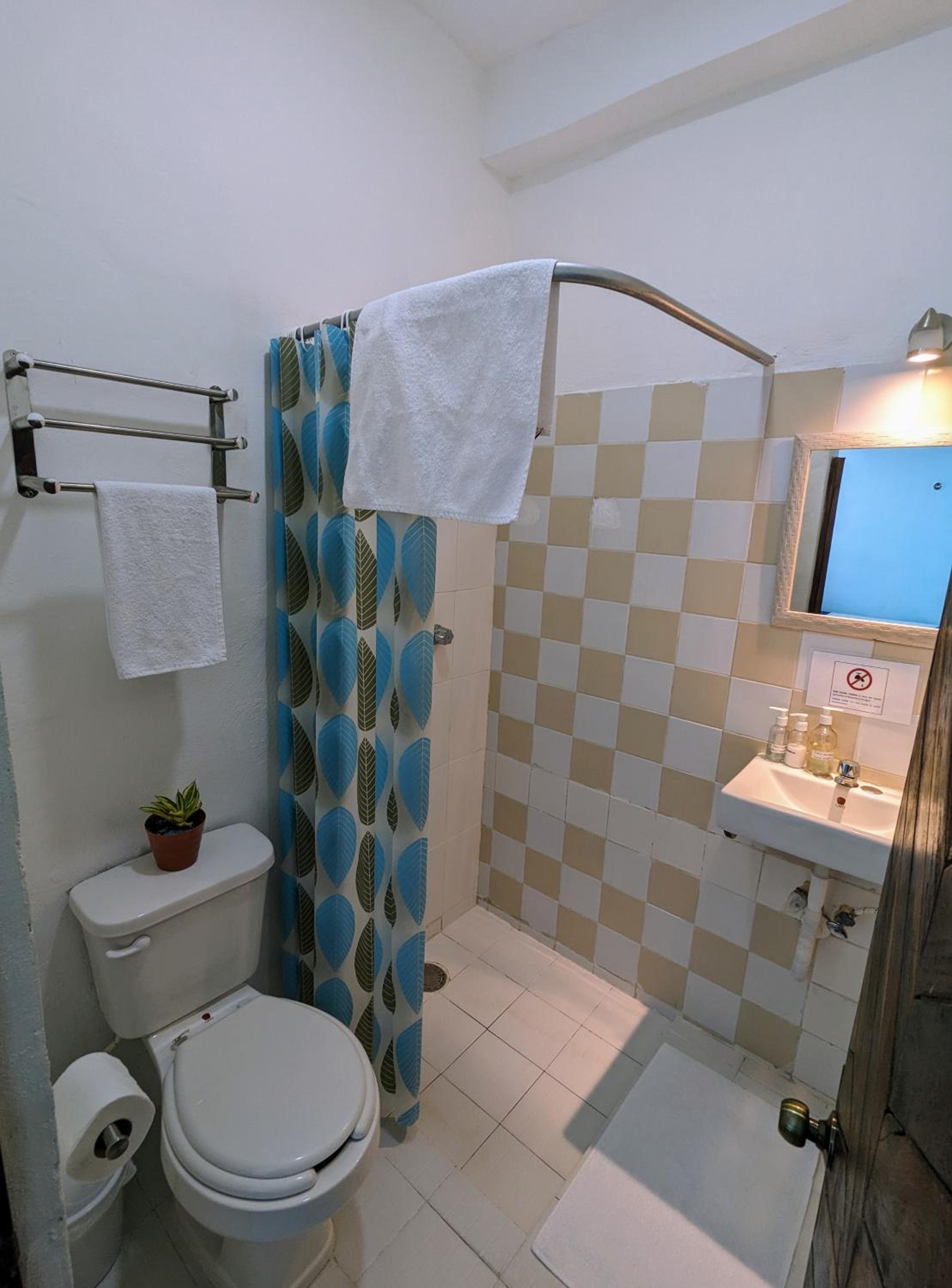 We booked a double (twin) room with a private bathroom. We got a twin bedroom with a bathroom that we had to go outside for - it was a tiny toilet and shower that were really hard to use and a sink outside these - all were accessible from a kind of hall way and in reality anyone could use them. This wasn't what we thought we booked - we thought there was a bathroom in the room. If we'd known we just wouldn't have booked it, so hence my scores are lower than they'd otherwise be. Perhaps this is our mistake but I don't think it was clear when we booked, or from the photos. Given the door to our bedroom was really noisy this was quite inconvenient for middle of the night bathroom trips! Also the shower was pretty bad and there were no hooks or places to put your clothes except on the toilet. Rooms 1 and 4 seemed to have this set up. Other rooms possibly had their own bathrooms and would have been good. We also found not having blankets (sheet only) difficult as we sleep at dfferent temperatures. We asked about both of these things but received no reply (this is an air bnb with lock boxes and no reception) so thought the communication could have been better.