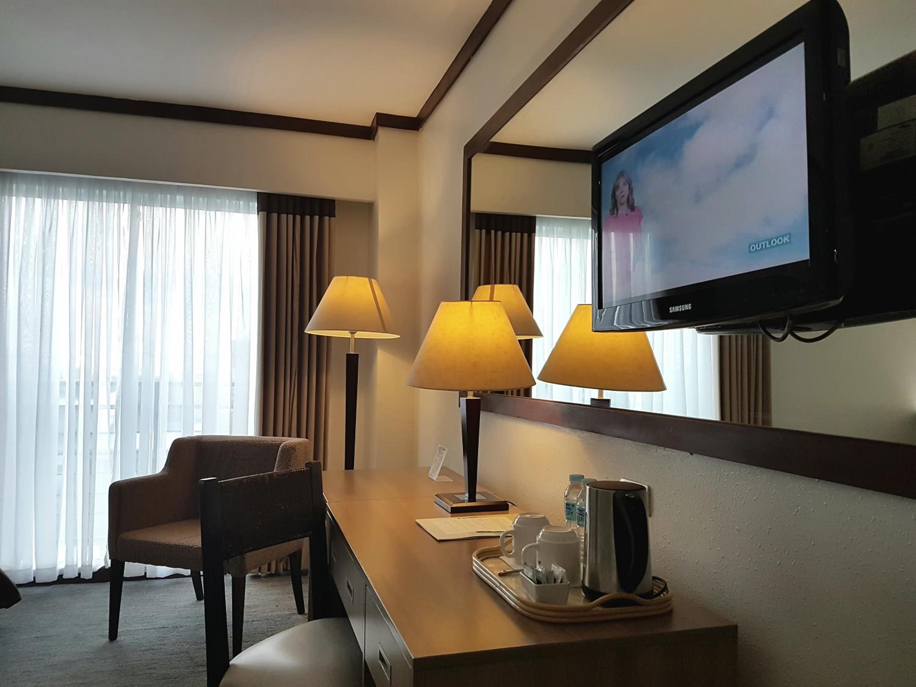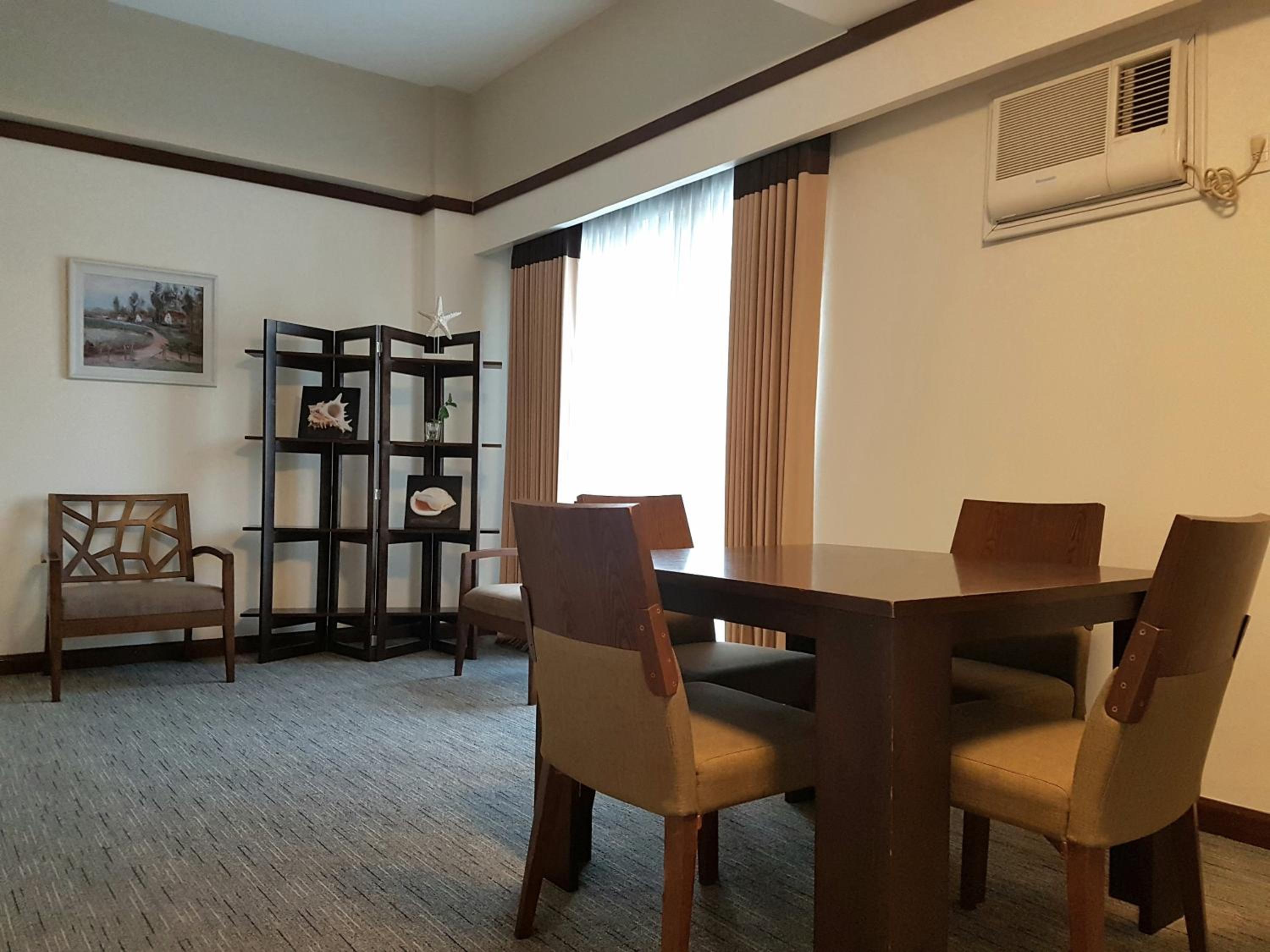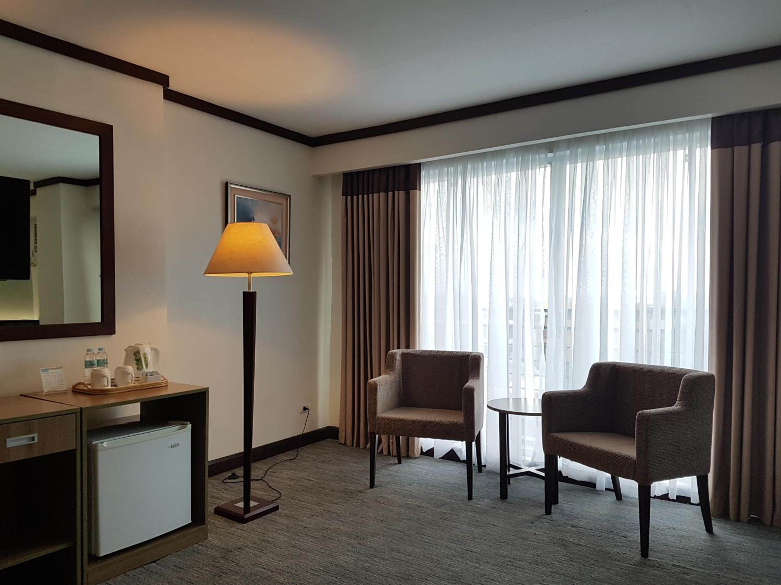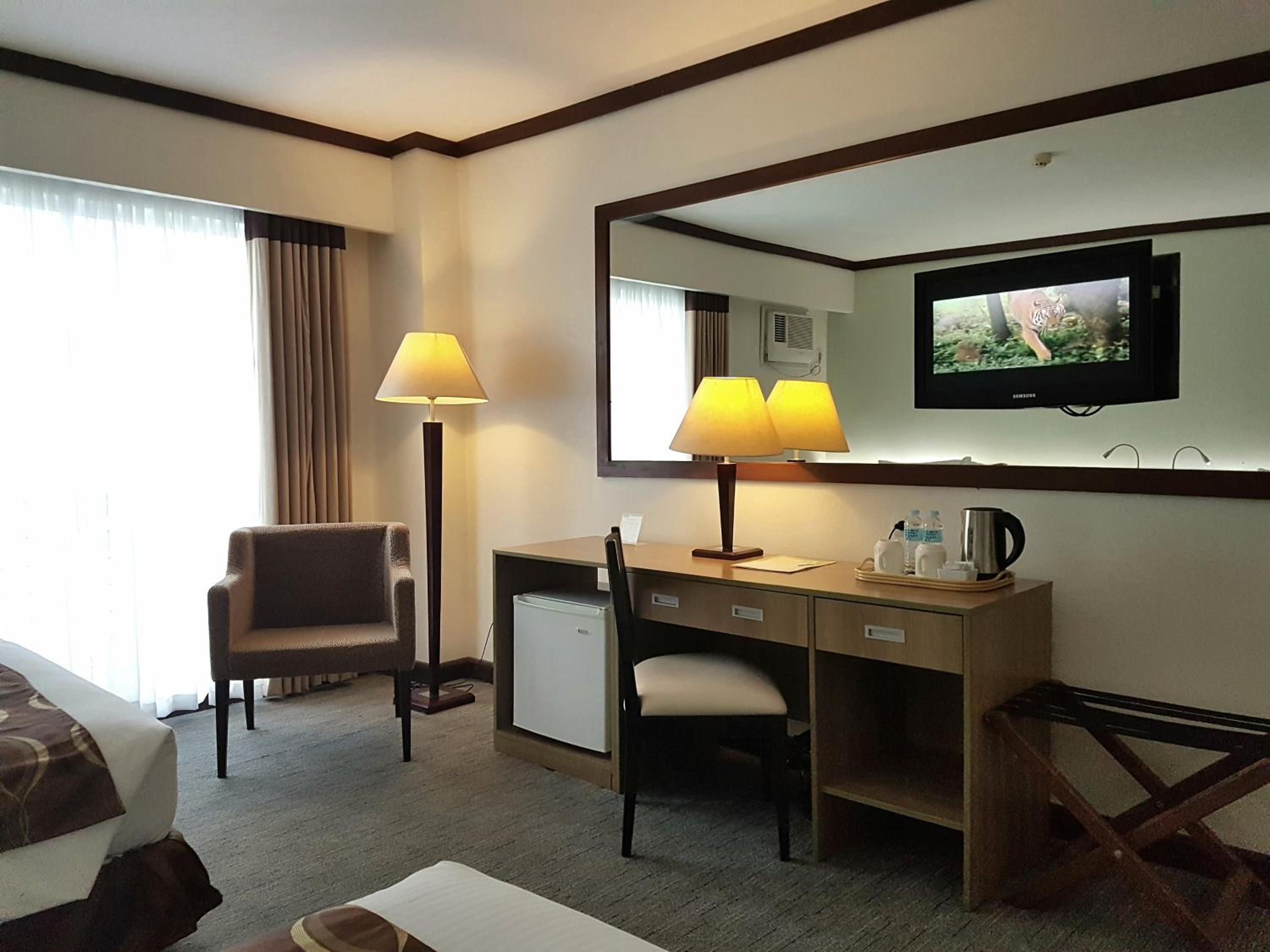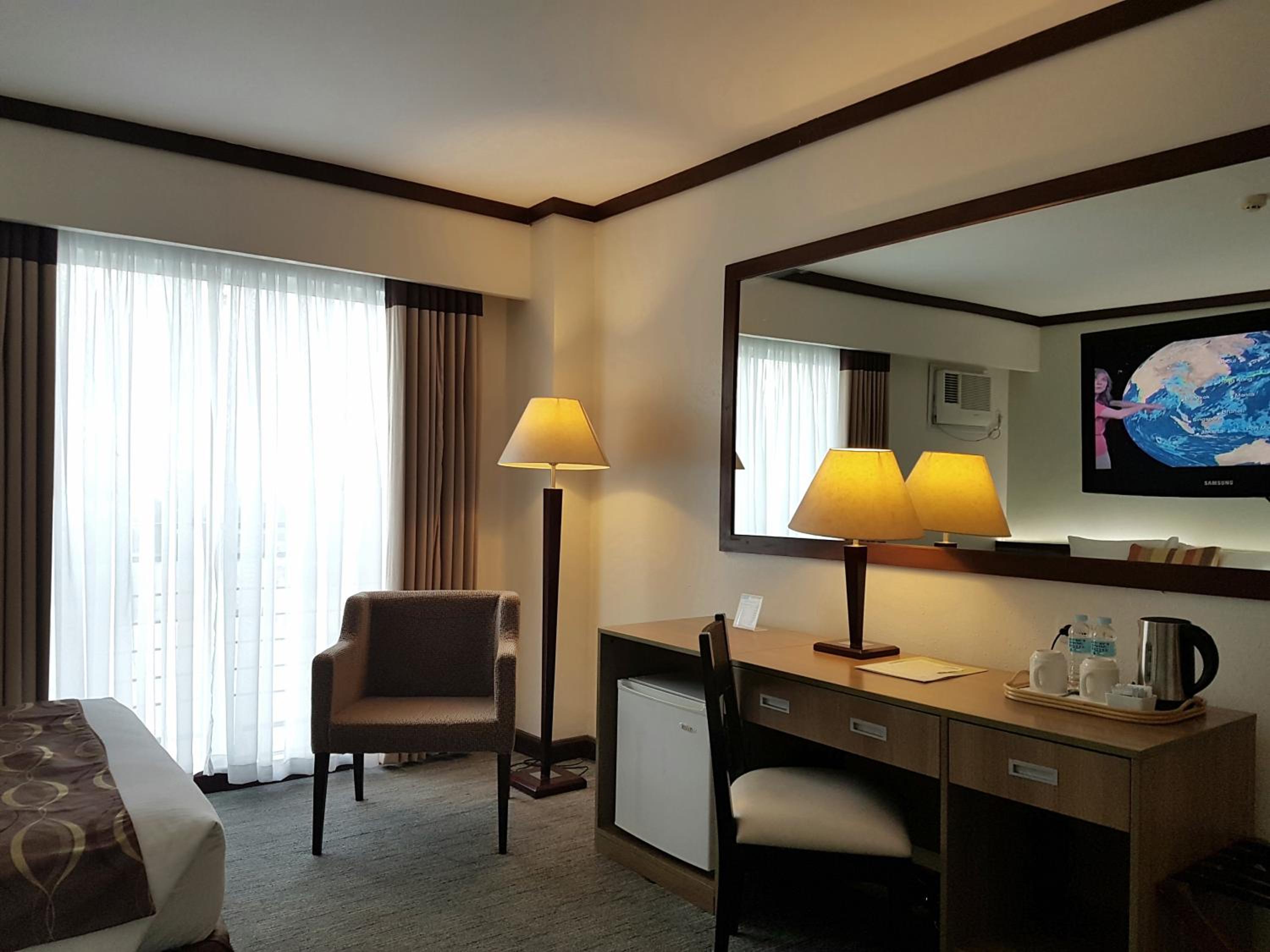 The hotel is old, we stayed for 5 nights 2 rooms presidential suite and twin deluxe room they never once replaced the beddings during the 5 nights we were there, the carpet is filthy the main bathroom of the presidential suite leaked outside in the hallway the toilet were blocked and not replacing the hand towel and face washer when they removed the used one. Breakfast was mediocre only served Filipino food. I will never stay at this hotel again.